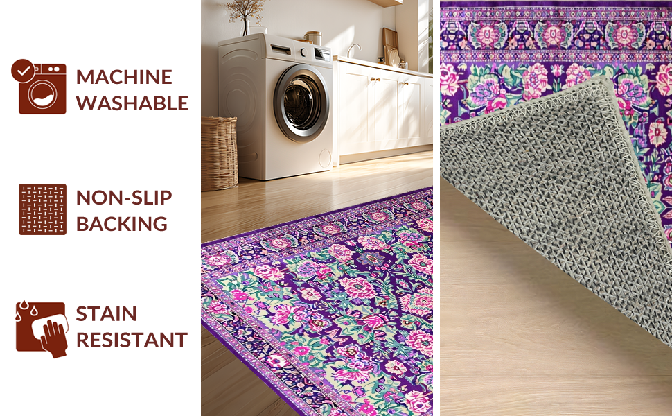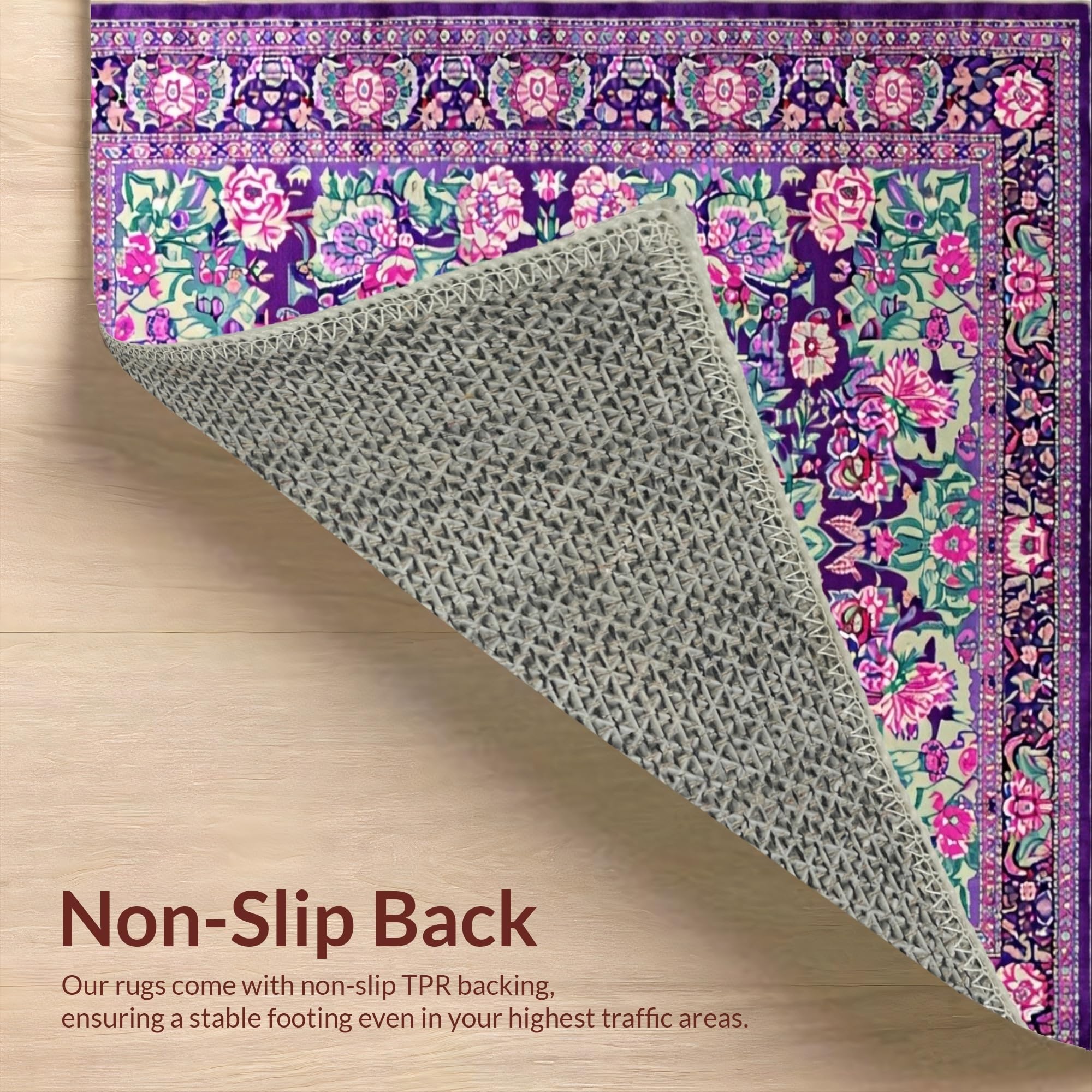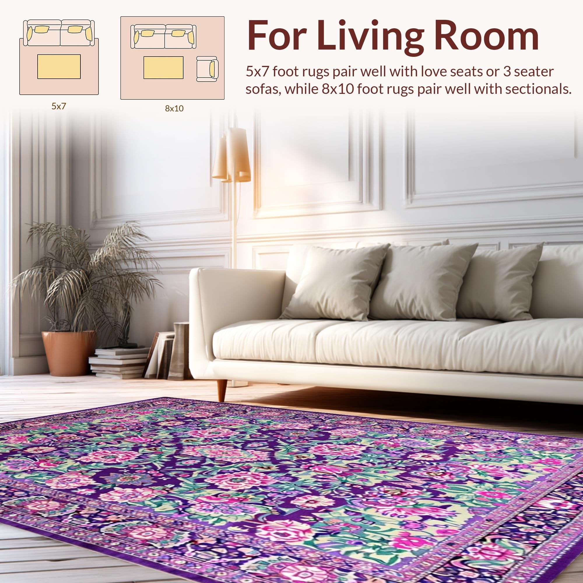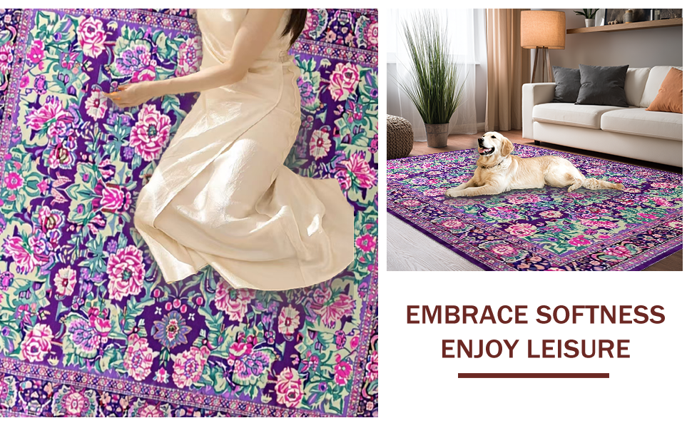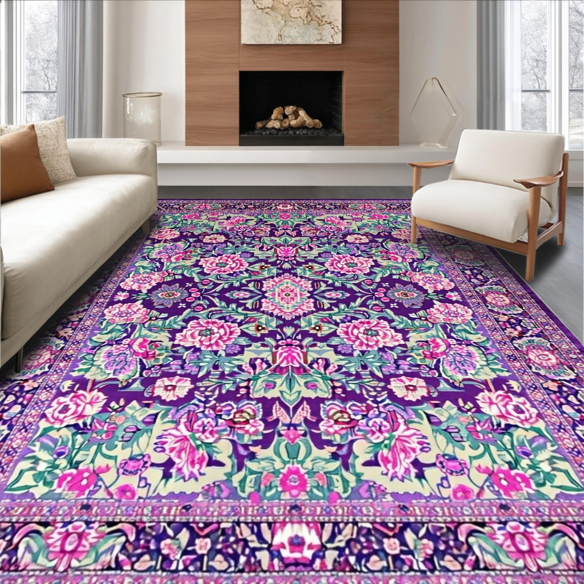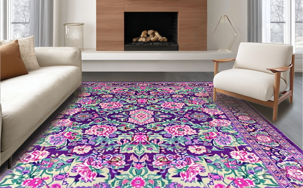 Ultra Soft Area Rug, Non Slip, Stain Resistant, Washable Area Rugs for Living Room, Bedroom, Whimsical Purple Floral Tapestry(Purple) Overview: