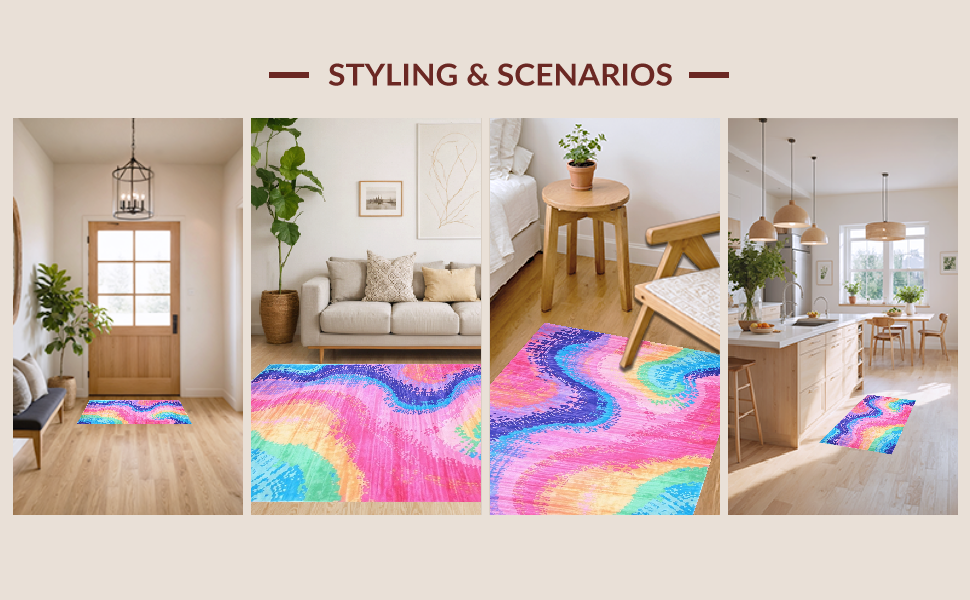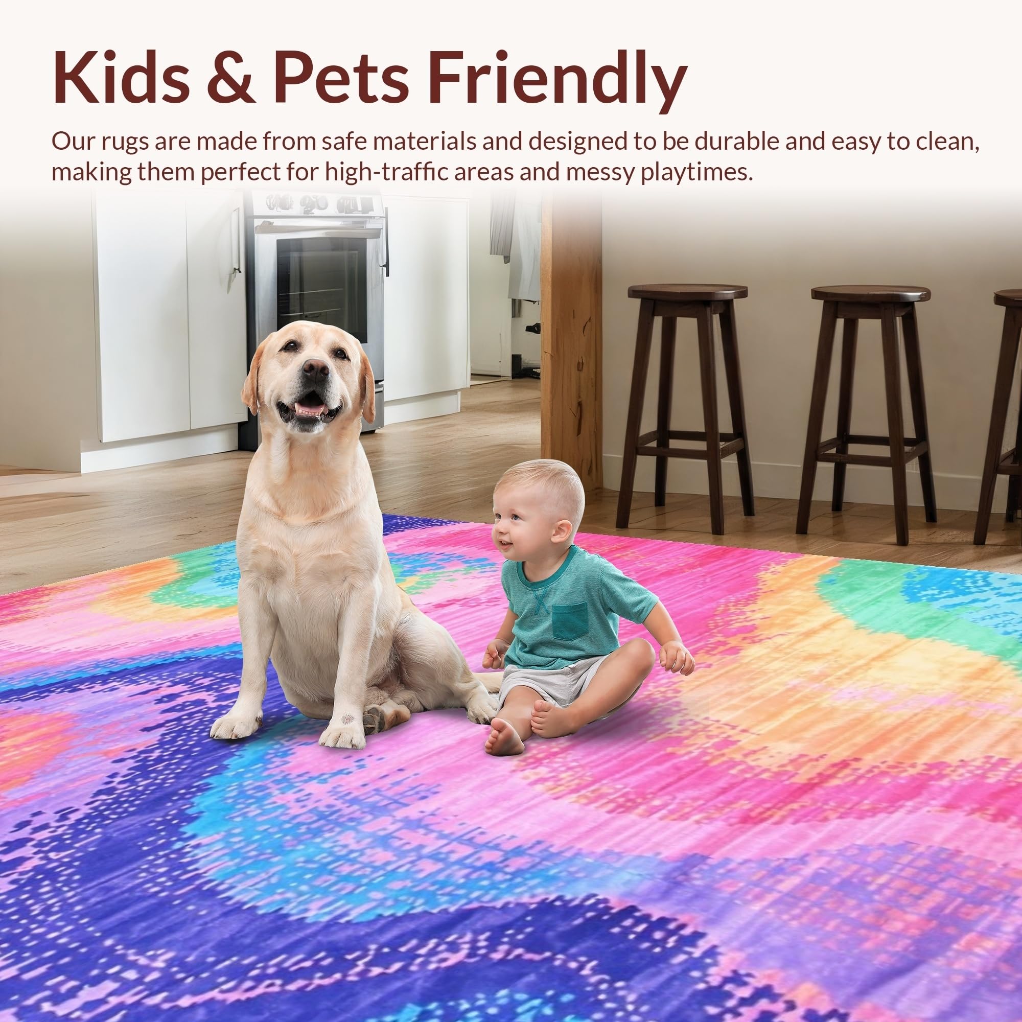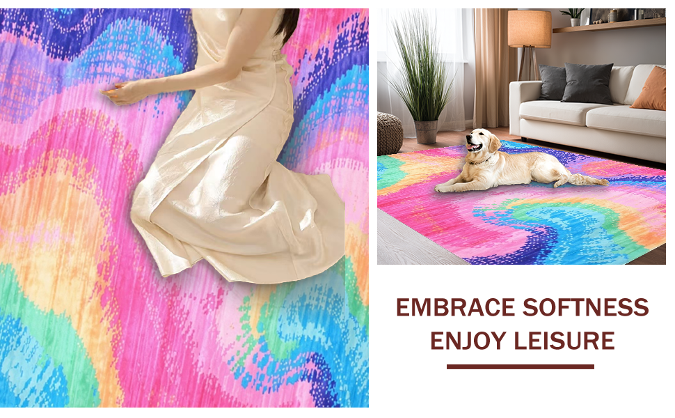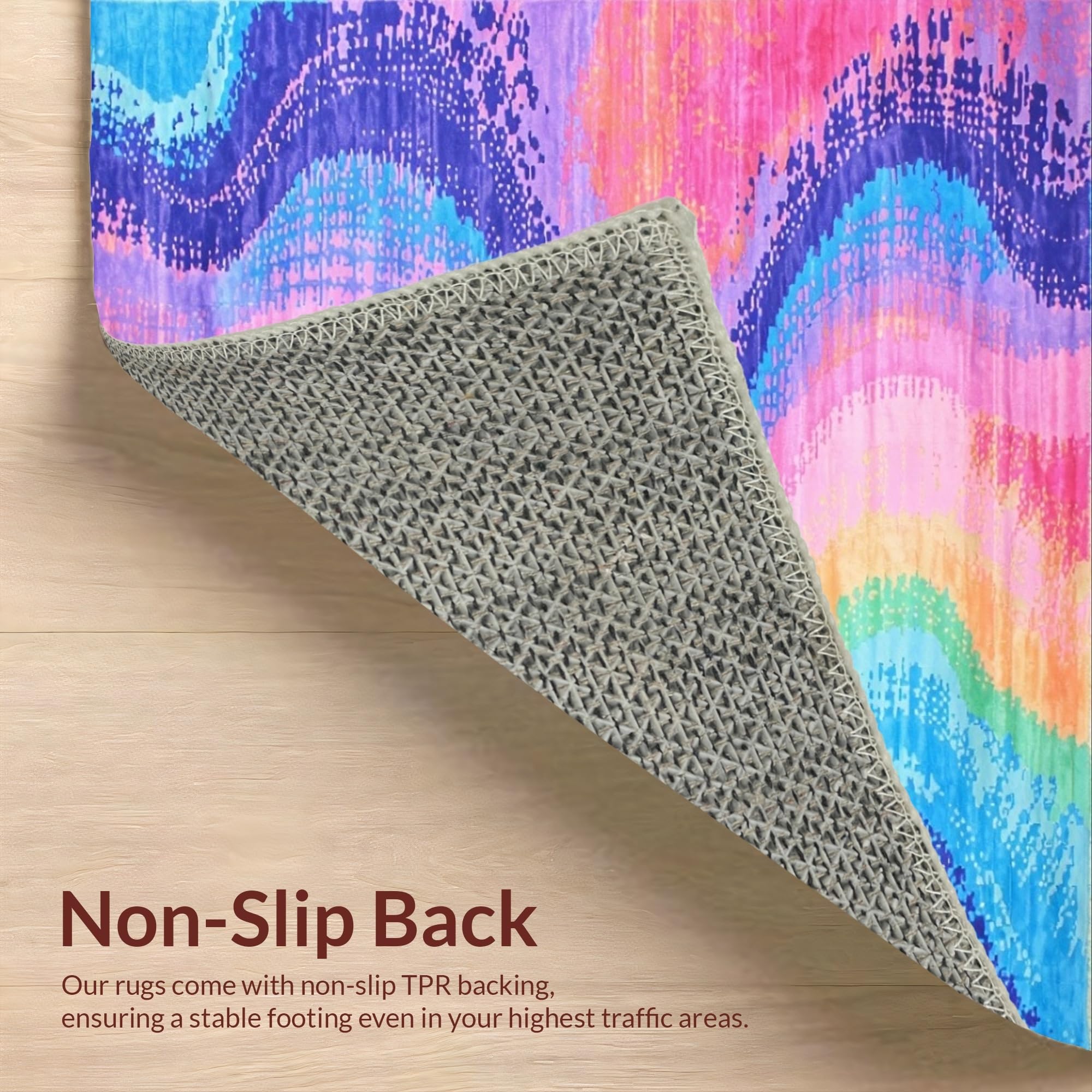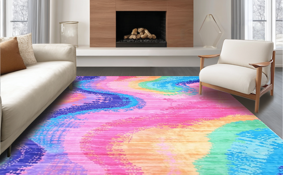 Ultra Soft Area Rug, Non Slip, Stain Resistant, Washable Area Rugs for Living Room, Bedroom, Whimsical Rainbow Ombre Design(Pink) Overview:
