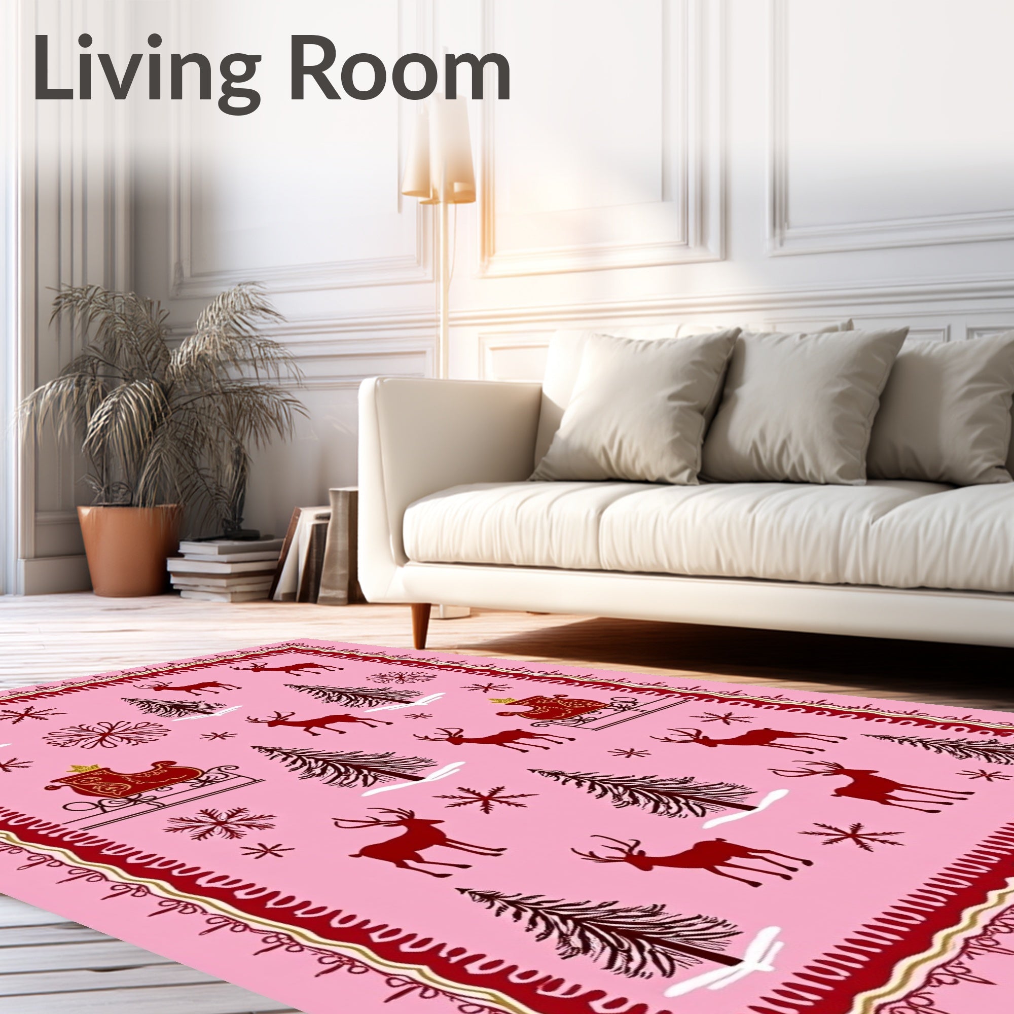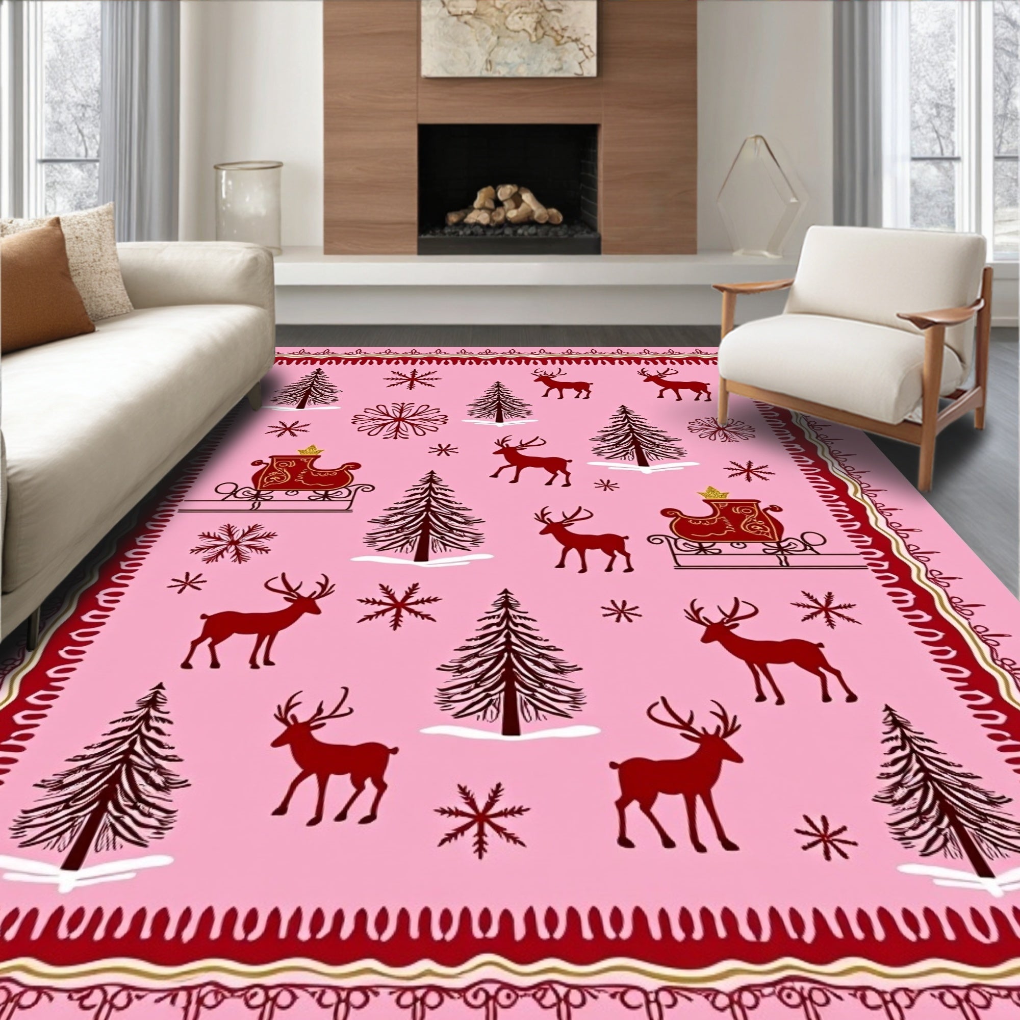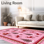 Ultra Soft Area Rug, Non Slip, Stain Resistant, Washable Area Rugs for Living Room, Bedroom, Whimsical Reindeer Sleigh Ride Arctic Adventure Holiday Fantasy(Pink) Overview: