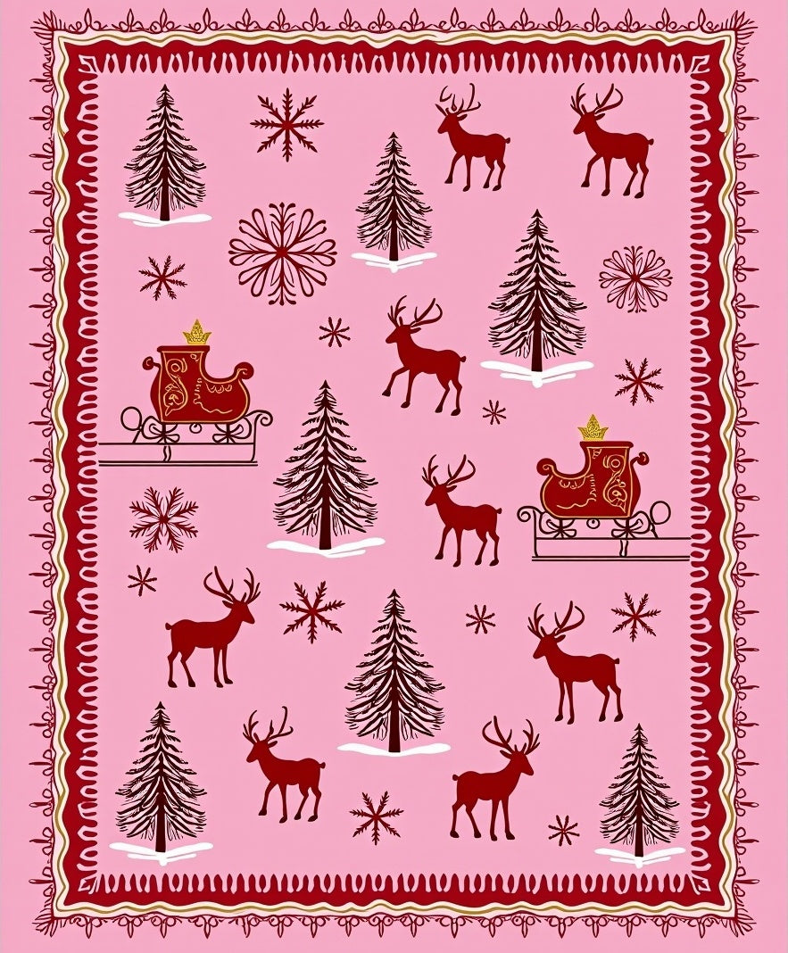 Whimsical Reindeer Sleigh Ride Arctic Adventure Holiday Fantasy(Pink)