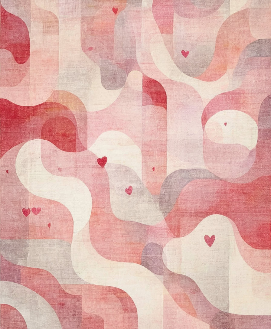 Whimsical Ribbon Swirl with Artistic Bow Motif and Playful Heart(Pink)