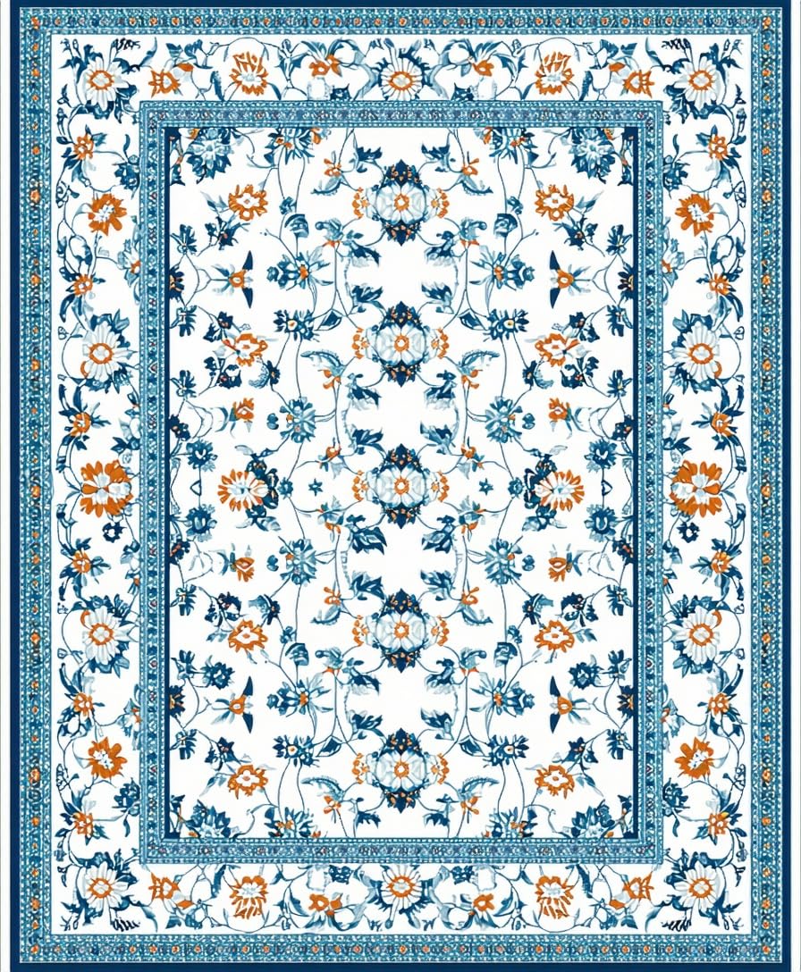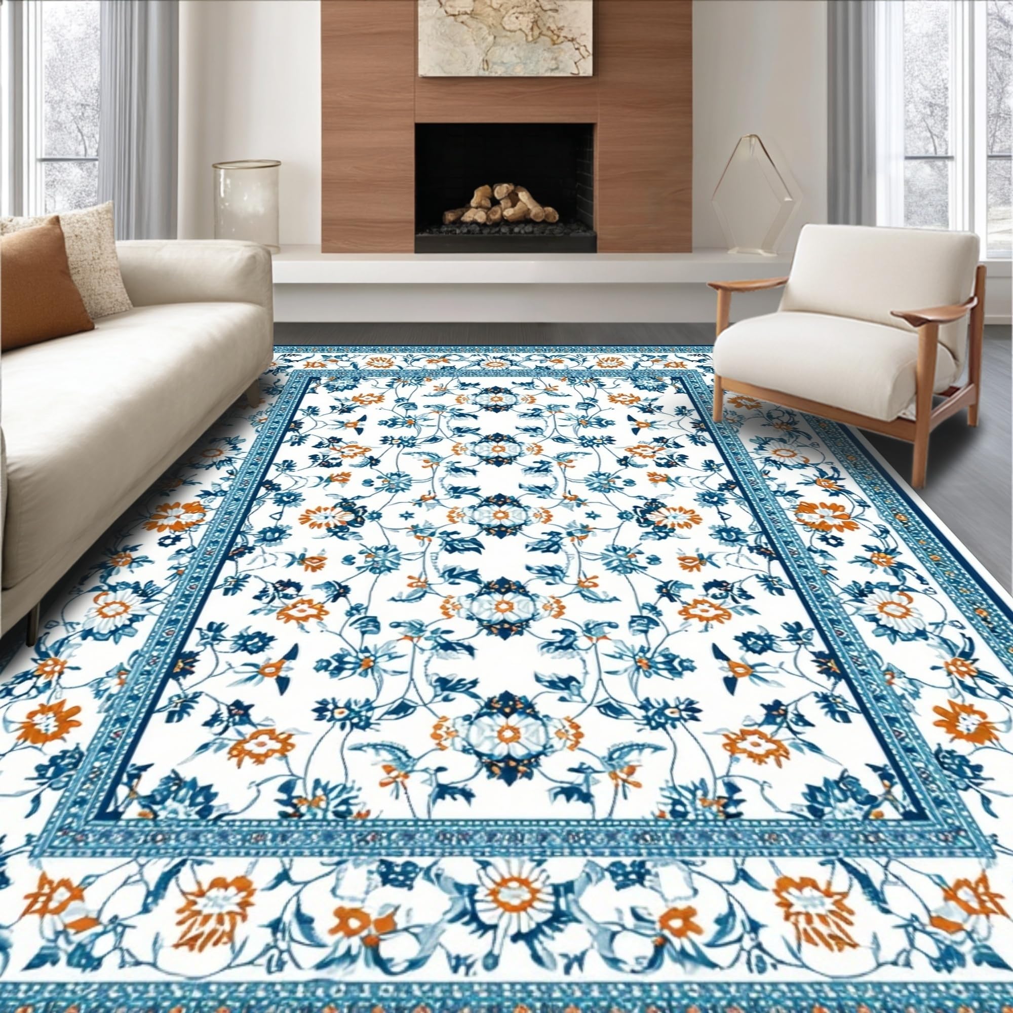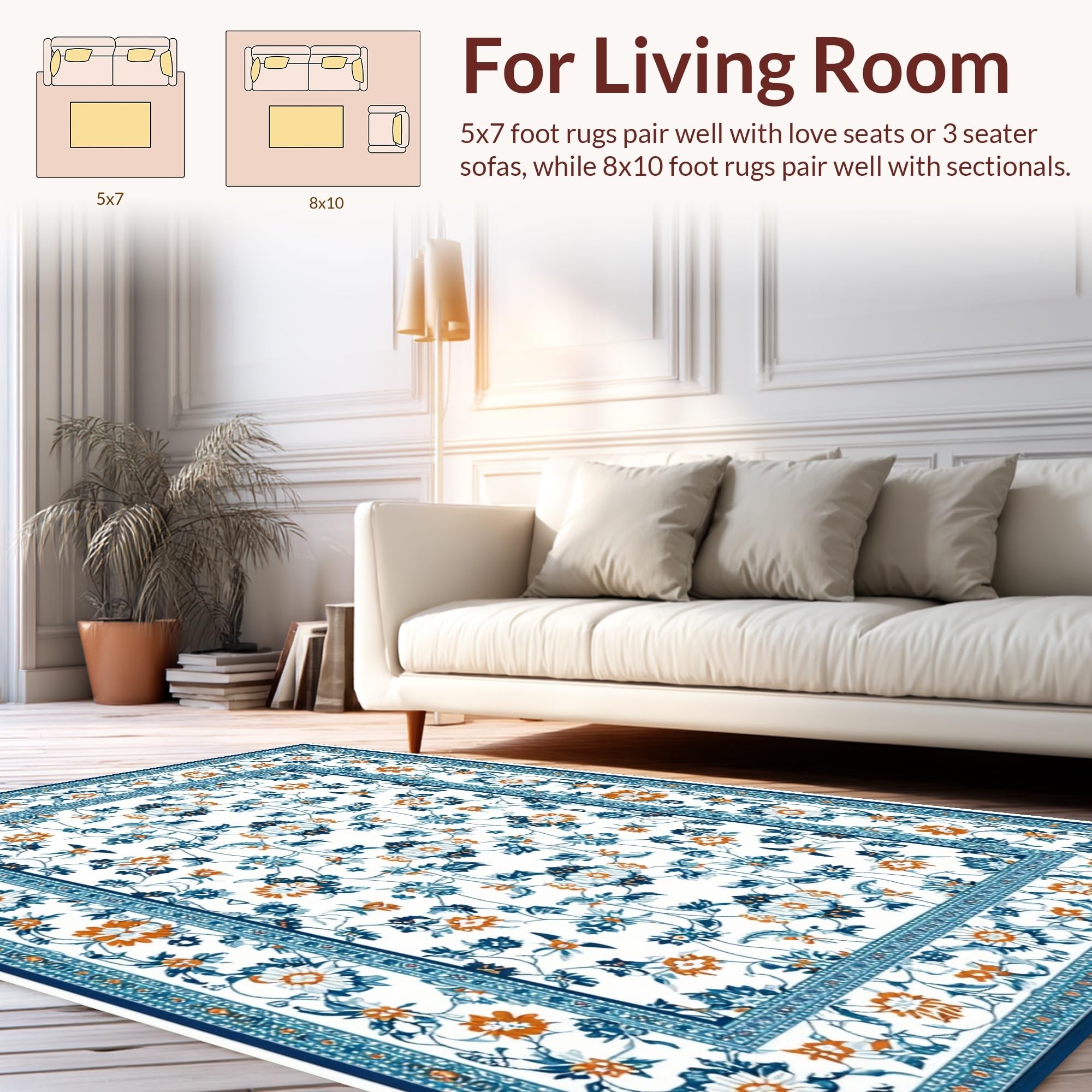 Ultra Soft Area Rug, Non Slip, Stain Resistant, Washable Area Rugs for Living Room, Bedroom, Whimsical Round Flower Design(Blue) Overview: