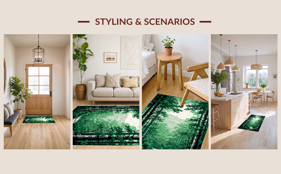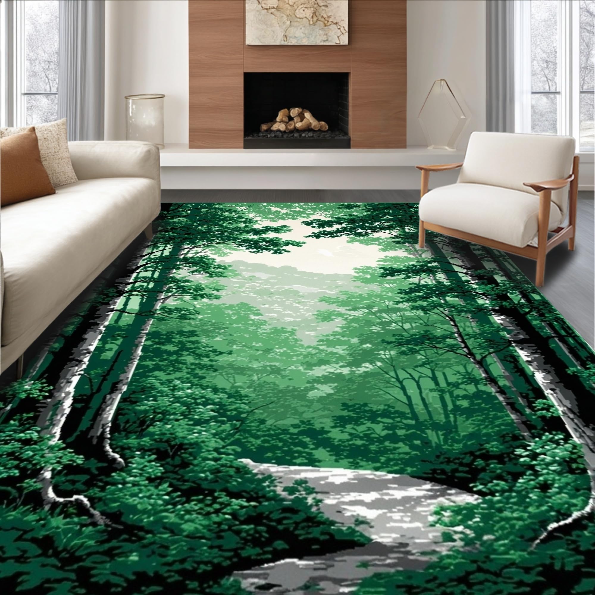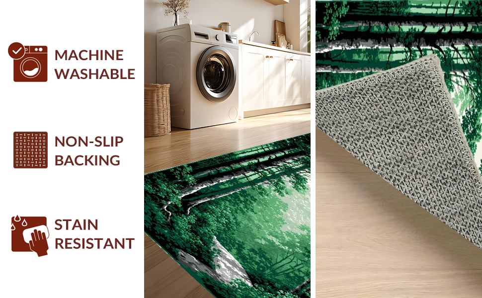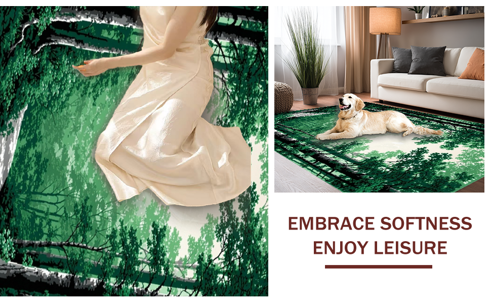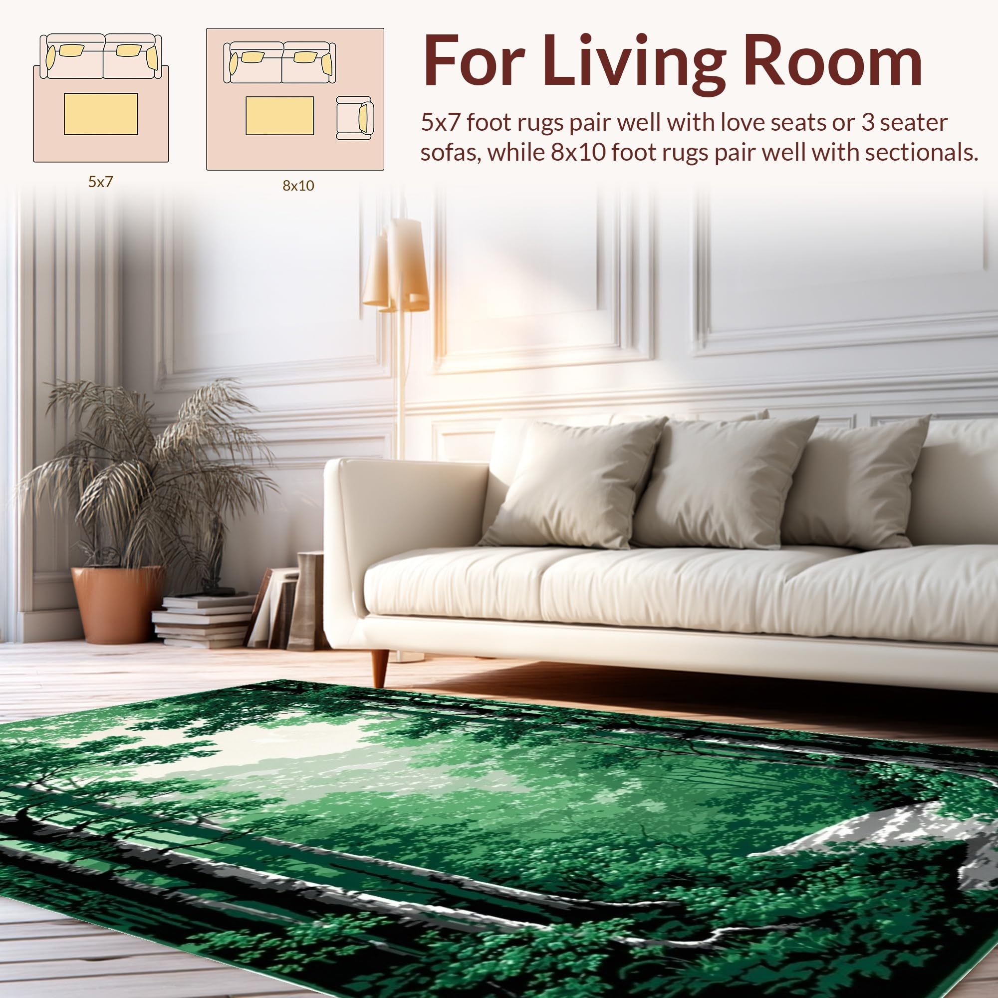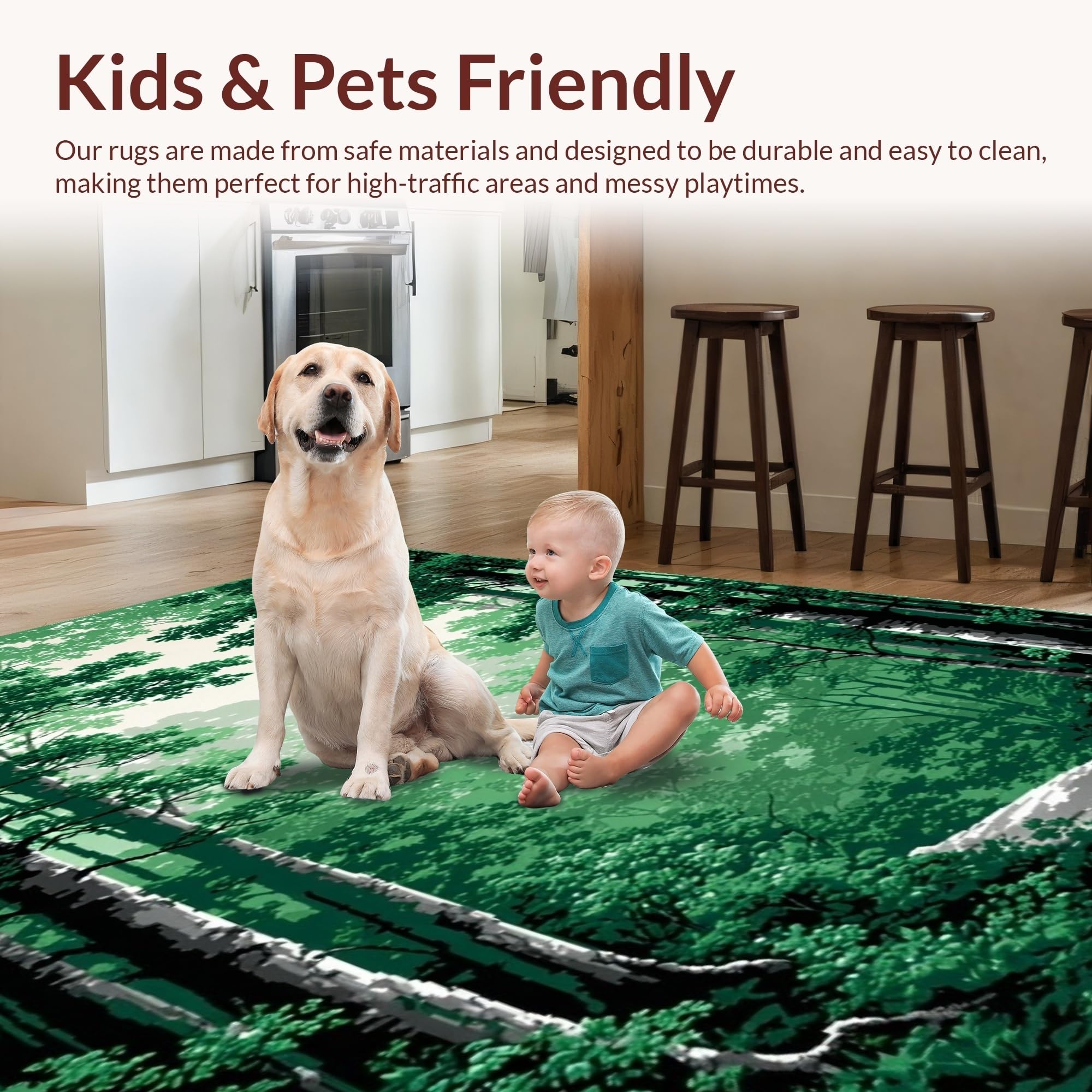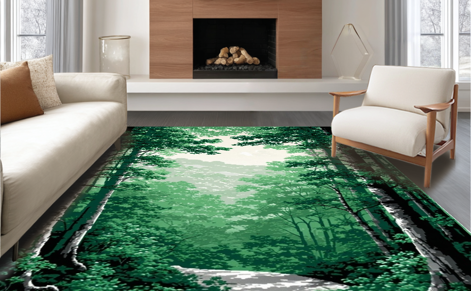 Ultra Soft Area Rug, Non Slip, Stain Resistant, Washable Area Rugs for Living Room, Bedroom, Whimsical Rustic Tree Pattern(Green) Overview: