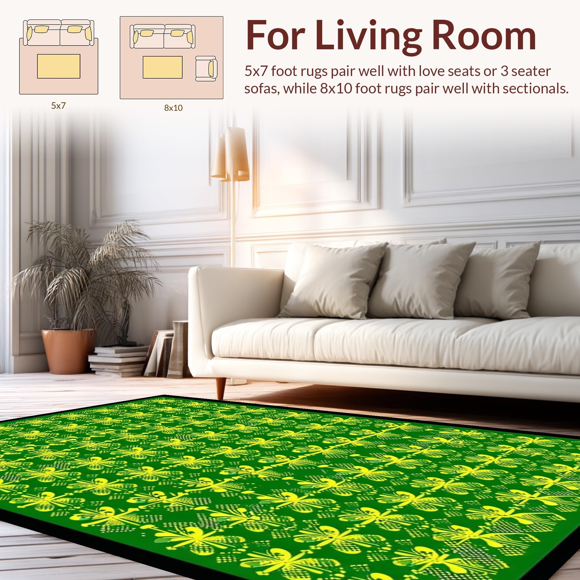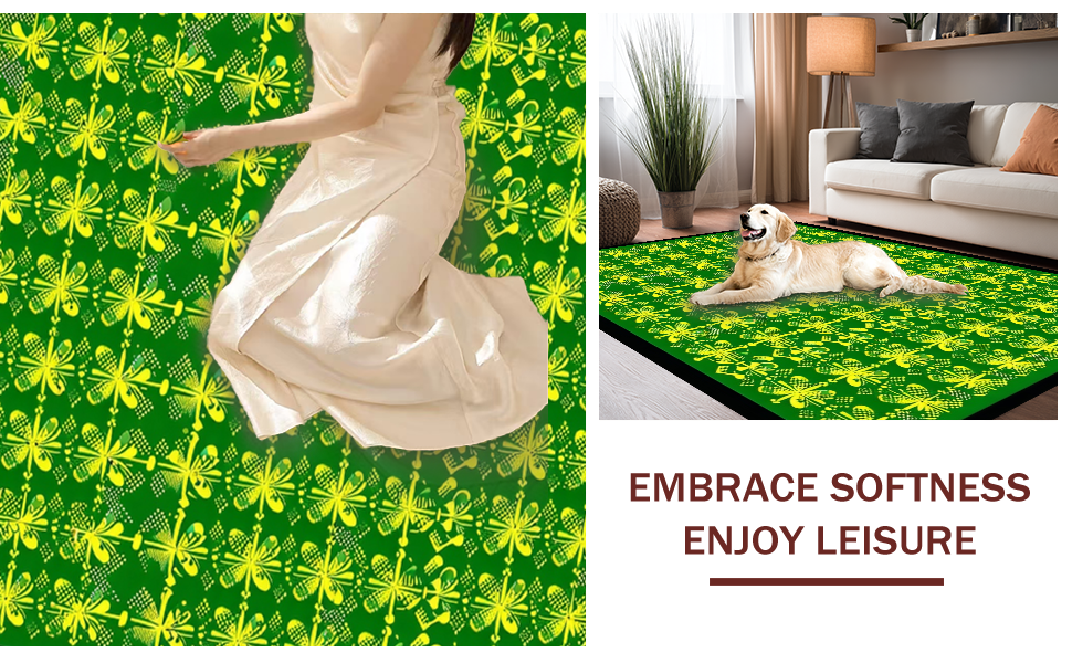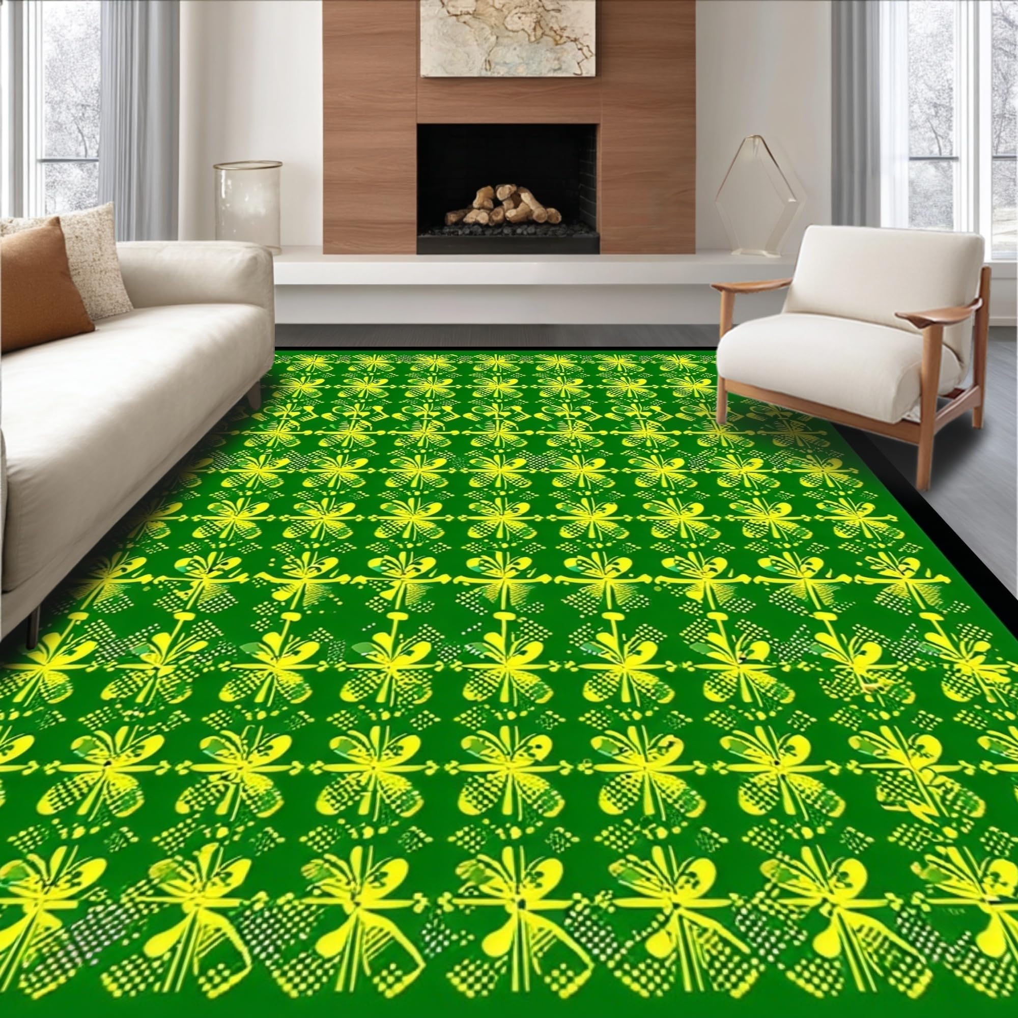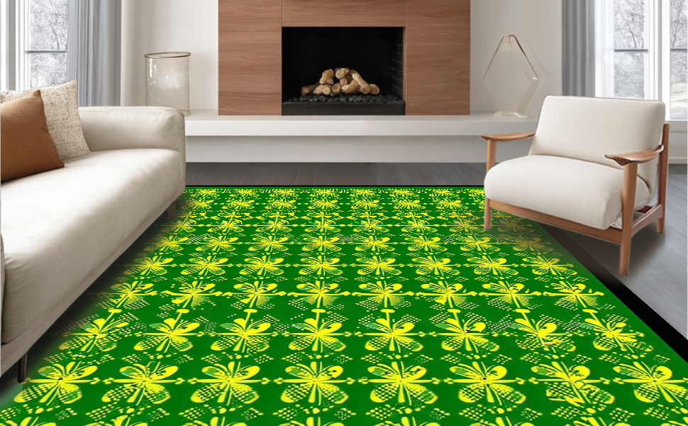 Ultra Soft Area Rug, Non Slip, Stain Resistant, Washable Area Rugs for Living Room, Bedroom, Whimsical Shamrock Visual Theme(Green) Overview: