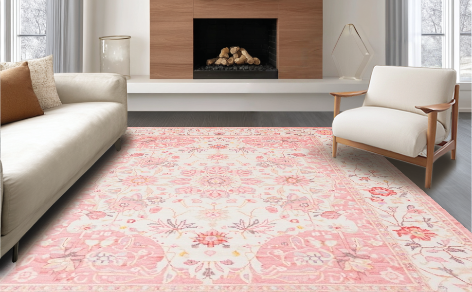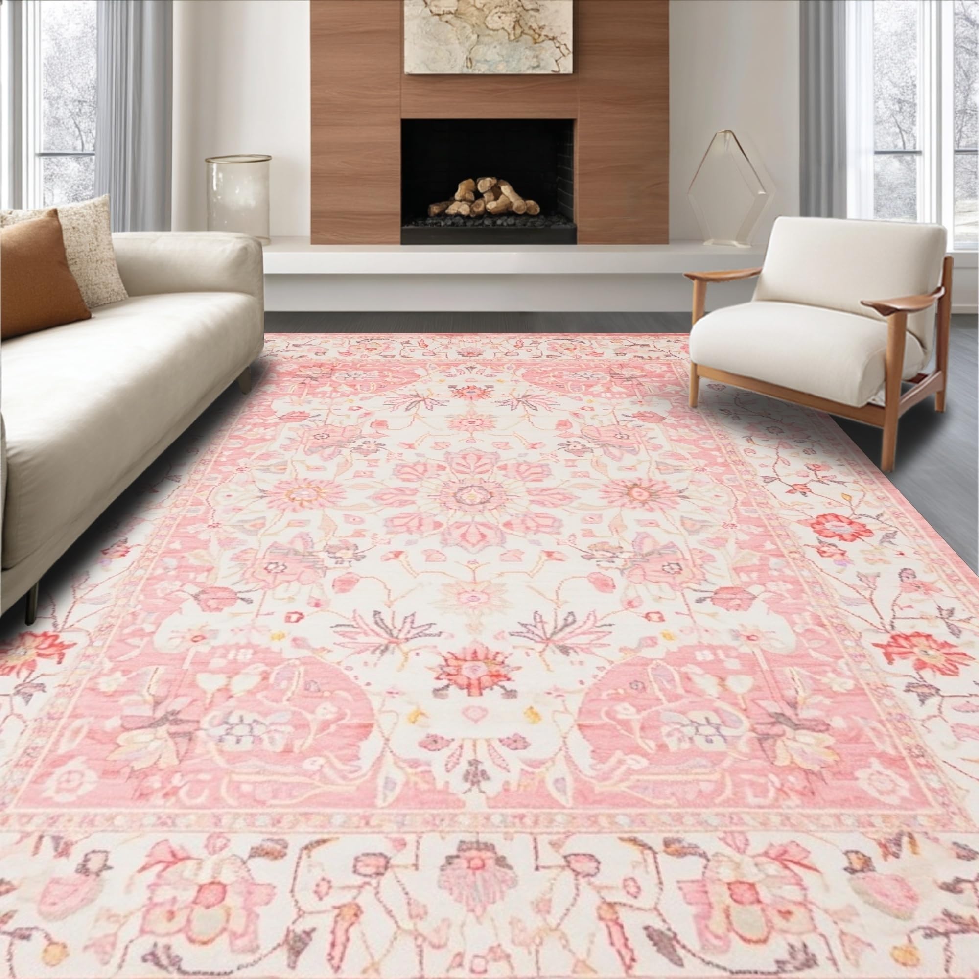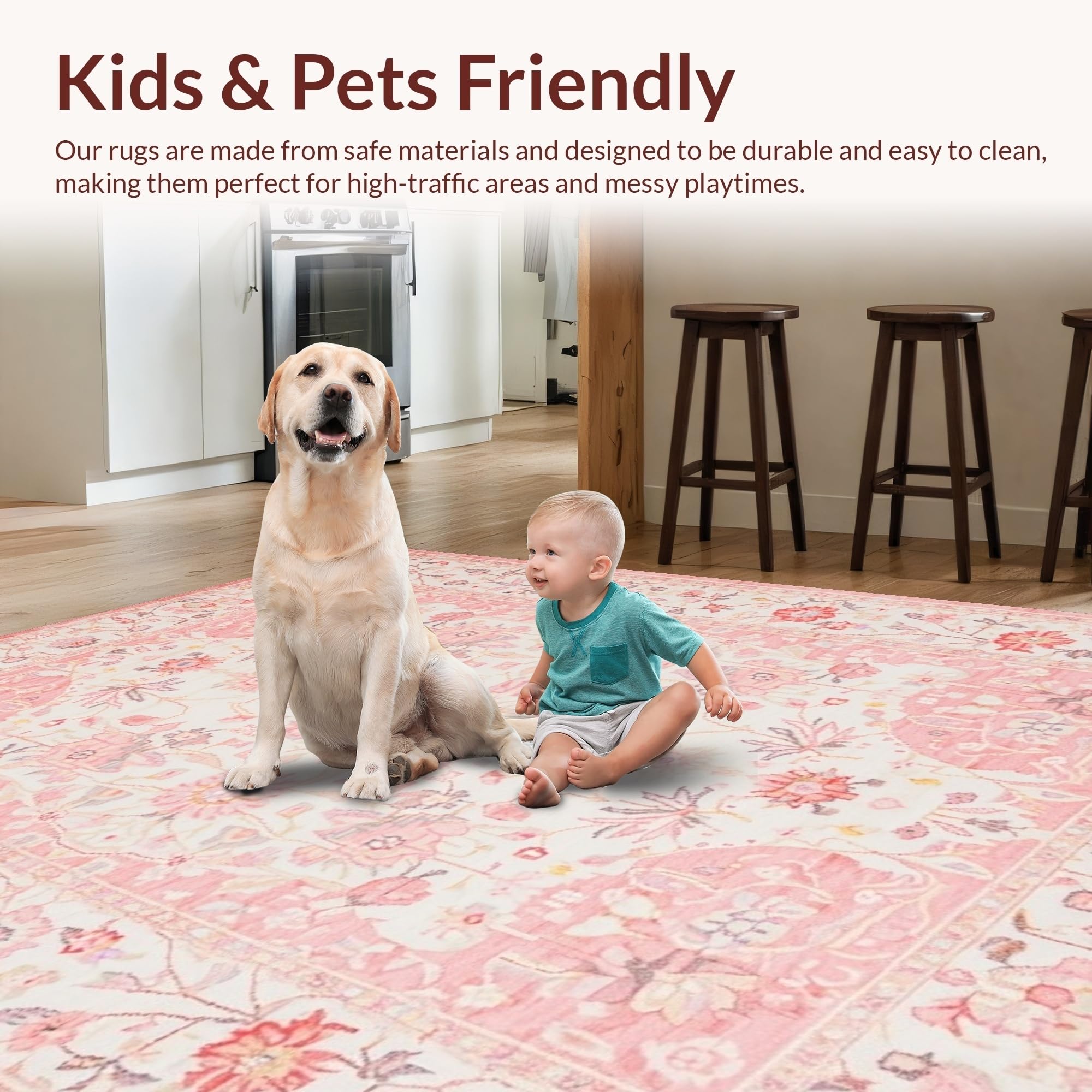 Ultra Soft Area Rug, Non Slip, Stain Resistant, Washable Area Rugs for Living Room, Bedroom, Whimsical Soft Pastel Pattern(Pink) Overview: