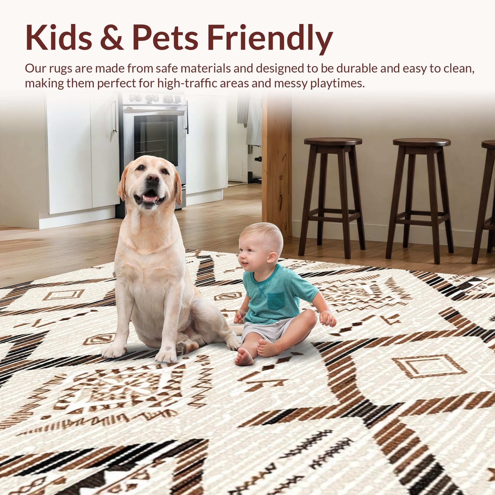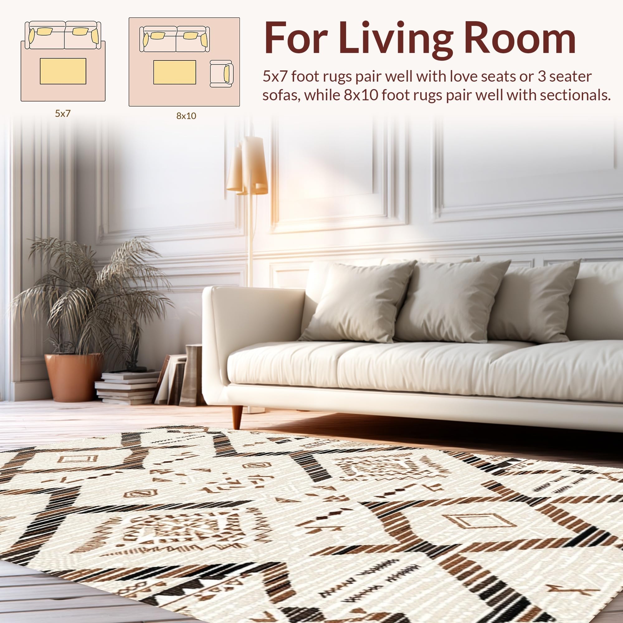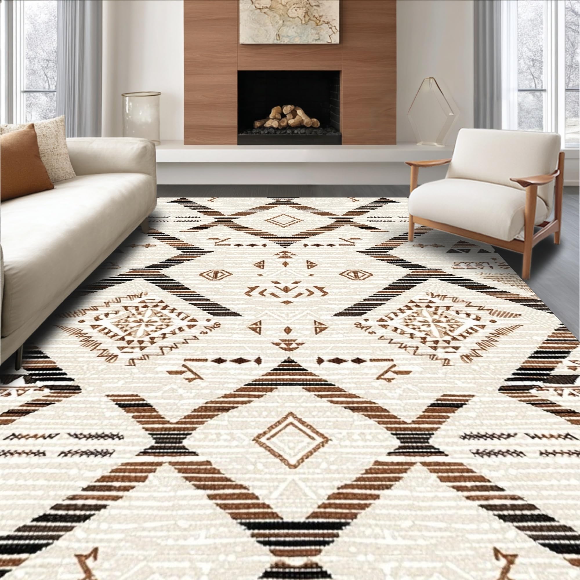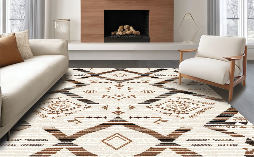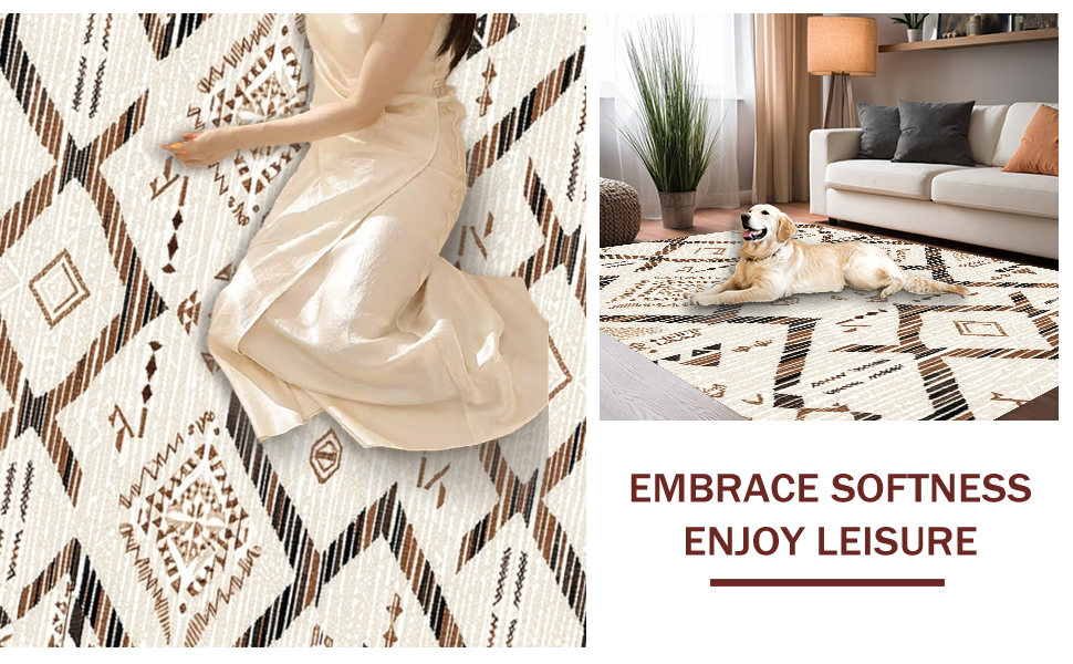 Ultra Soft Area Rug, Non Slip, Stain Resistant, Washable Area Rugs for Living Room, Bedroom, Whimsical Soft Shag Motif(Beige) Overview: