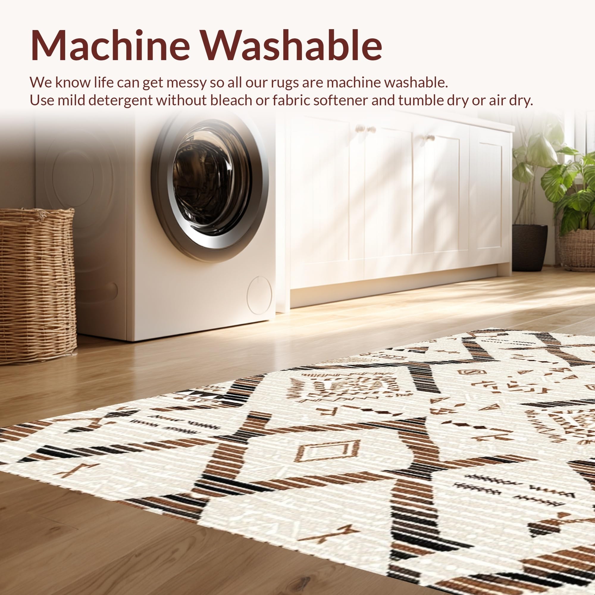 - Machine Washable: Our rugs can be easily thrown in the wash machine.