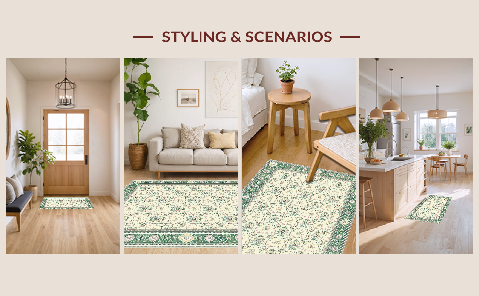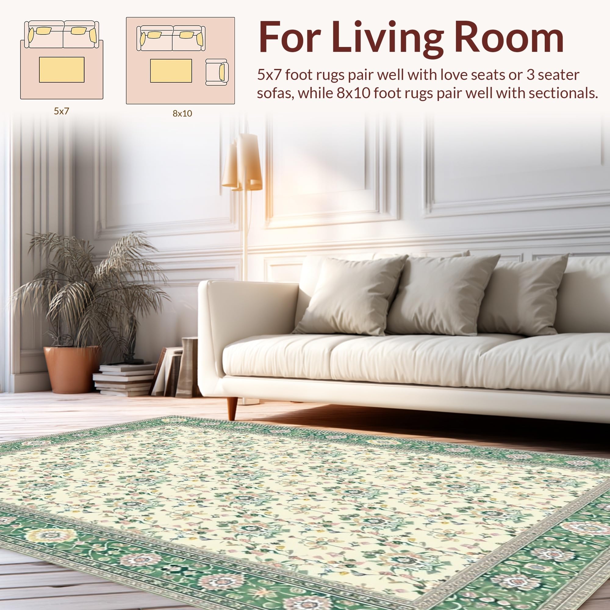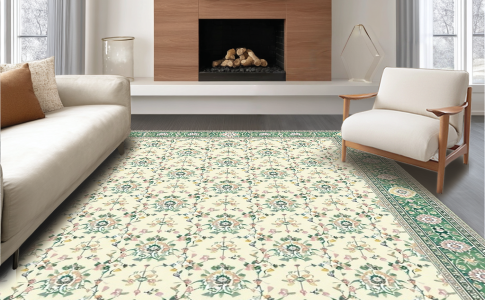 Ultra Soft Area Rug, Non Slip, Stain Resistant, Washable Area Rugs for Living Room, Bedroom, Whimsical Soft Toned Motif(Ivory) Overview: