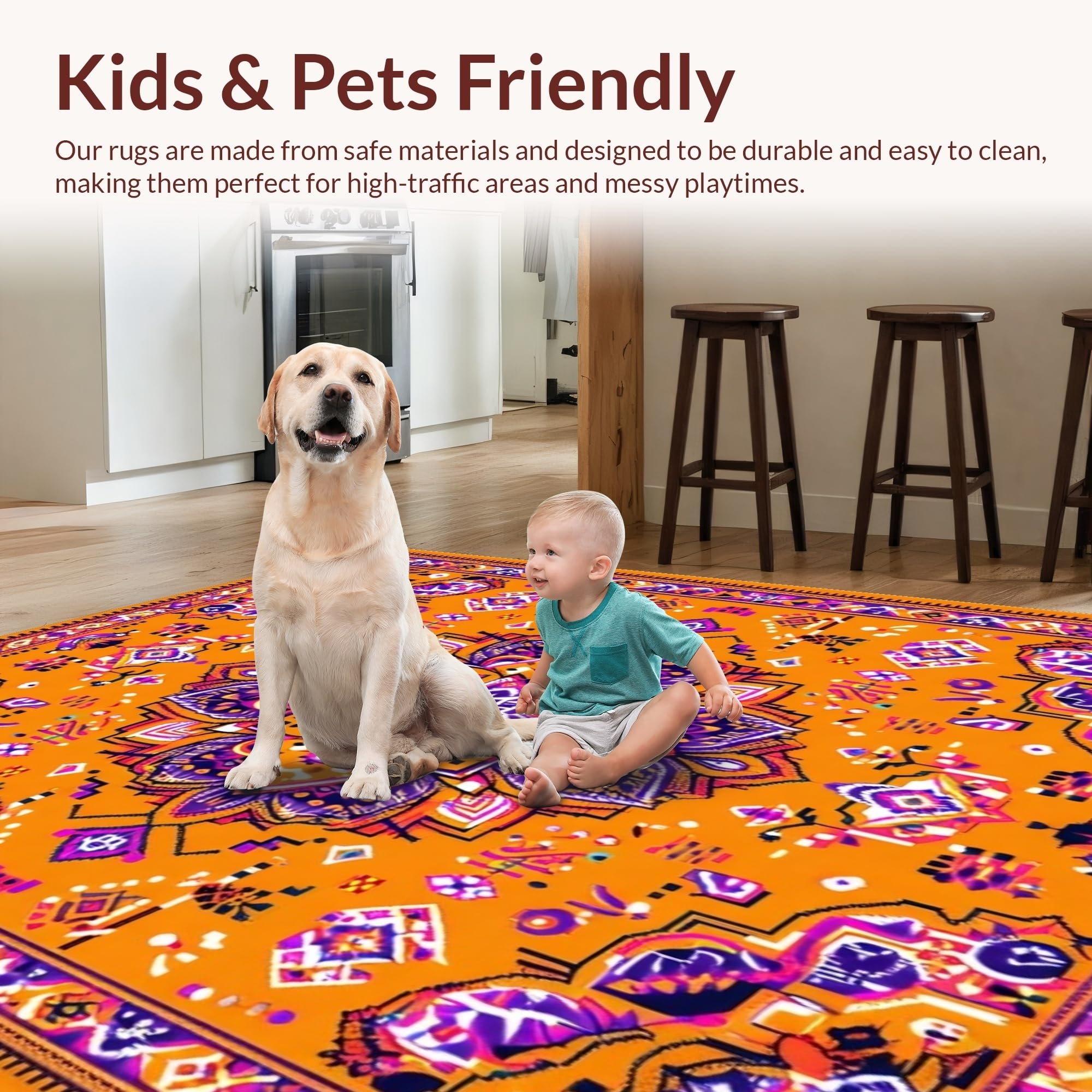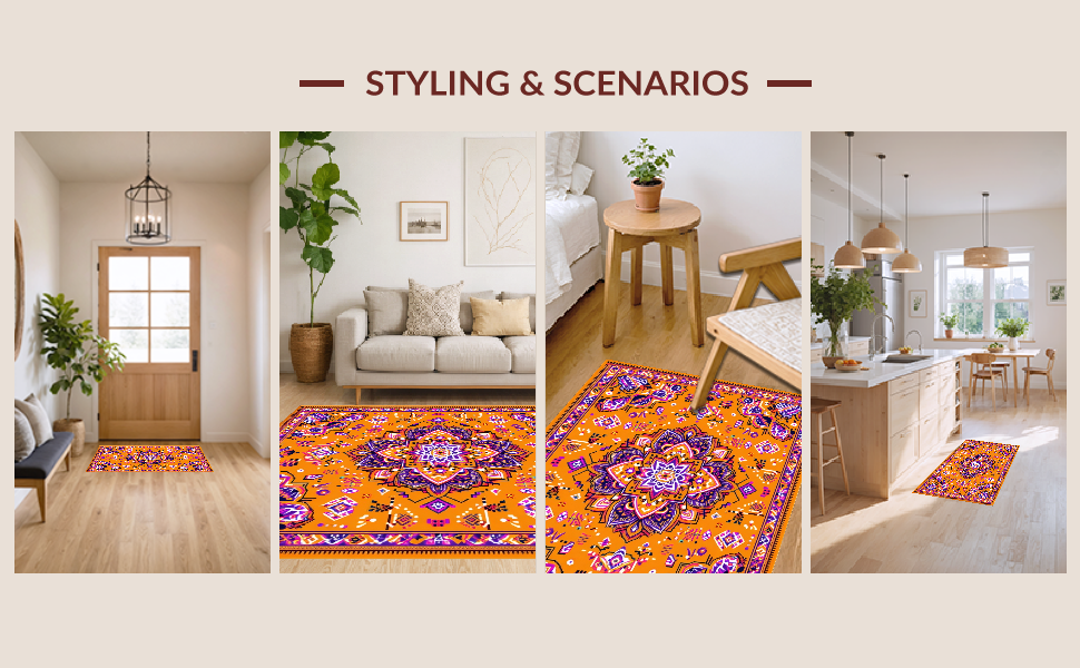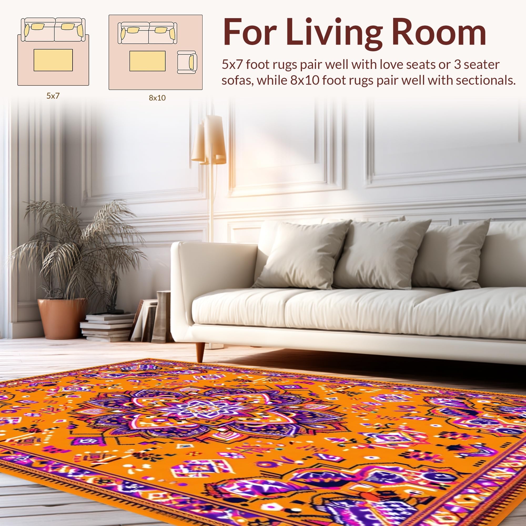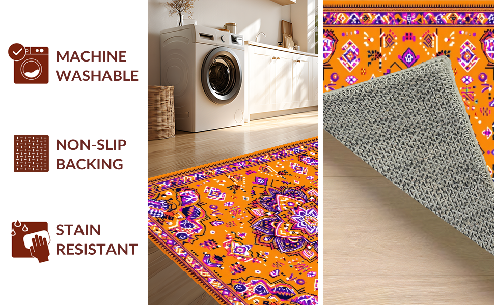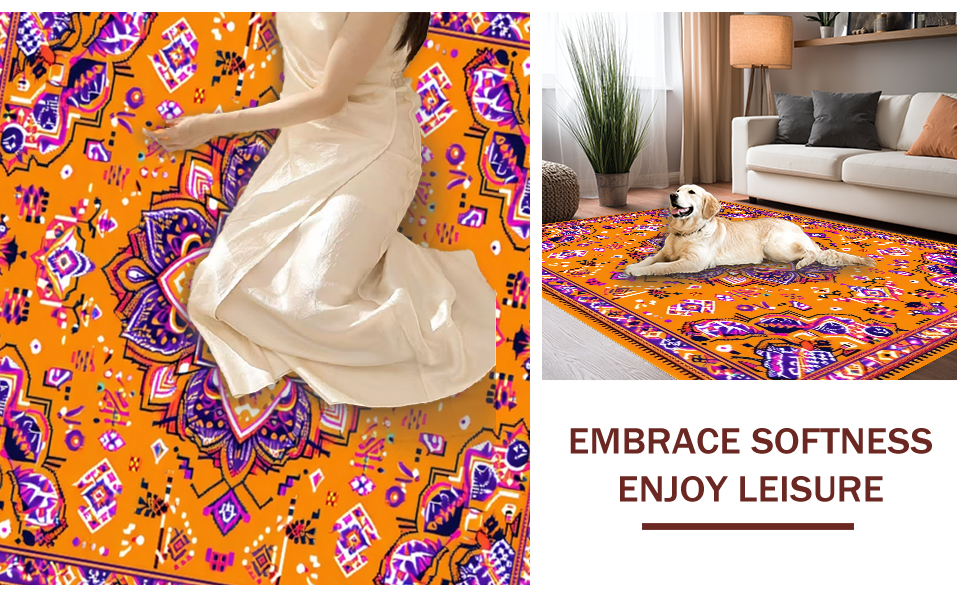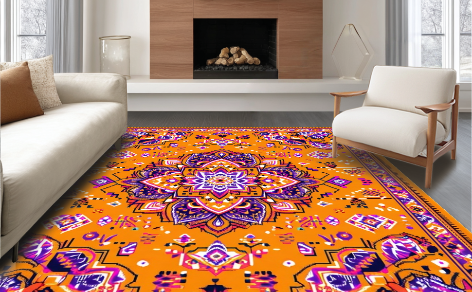 Ultra Soft Area Rug, Non Slip, Stain Resistant, Washable Area Rugs for Living Room, Bedroom, Whimsical Soft Tones Collection(Orange) Overview: