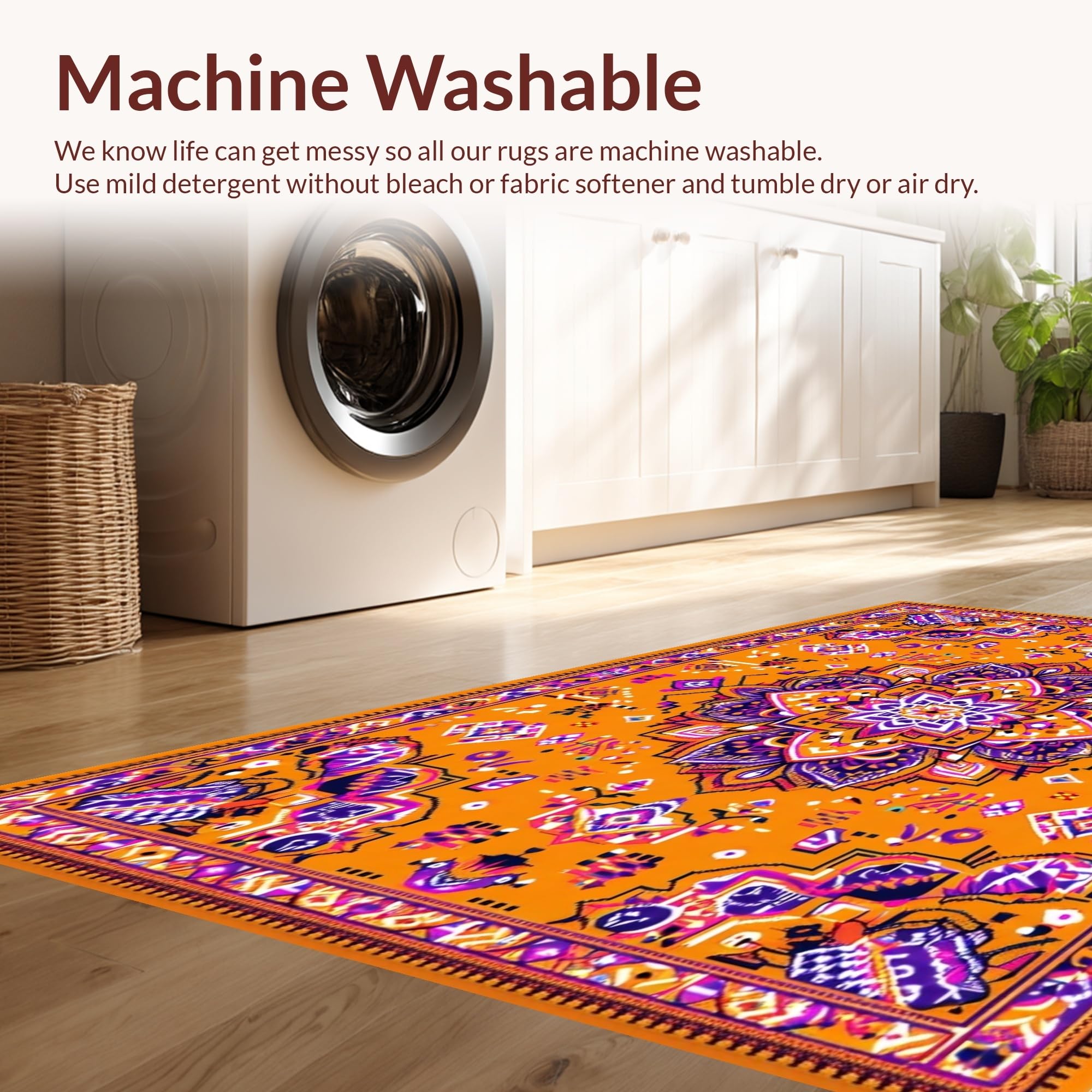 - Machine Washable: Our rugs can be easily thrown in the wash machine.