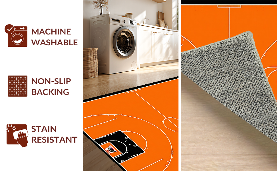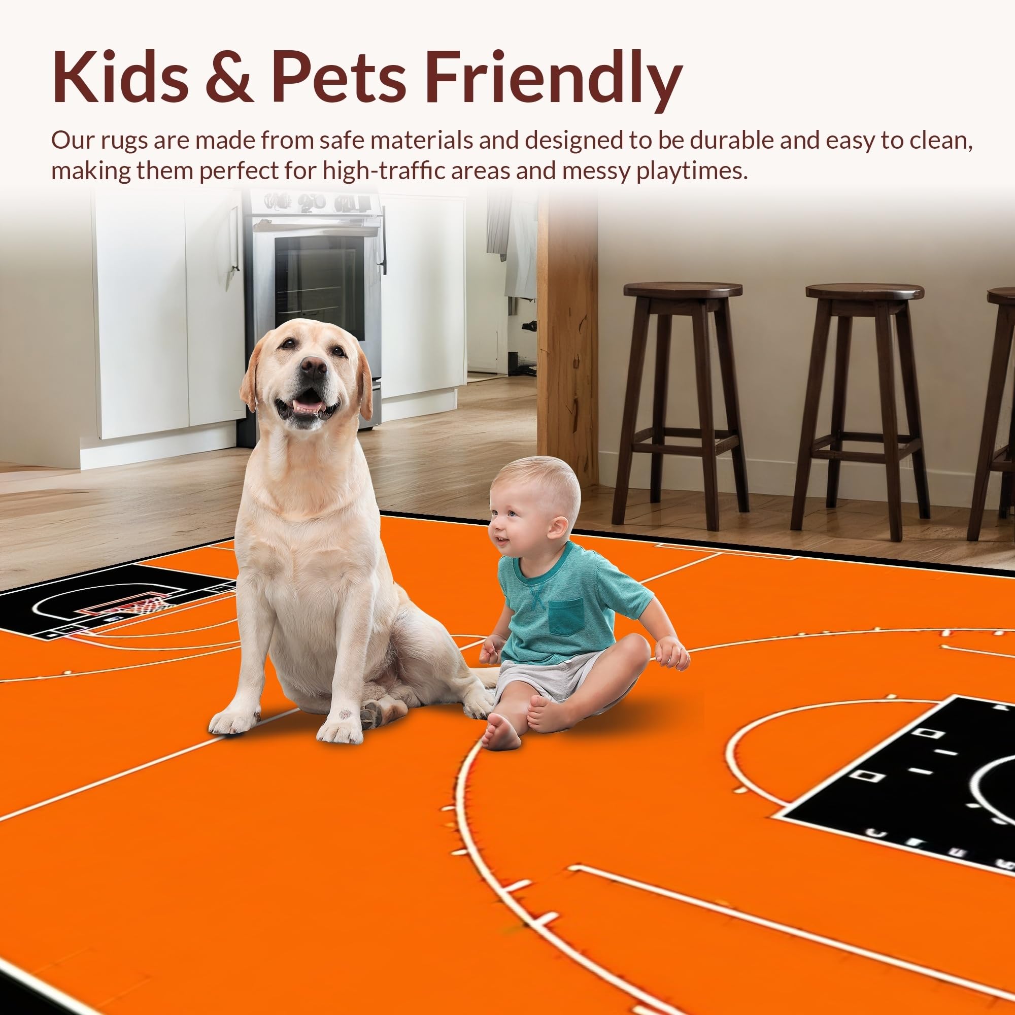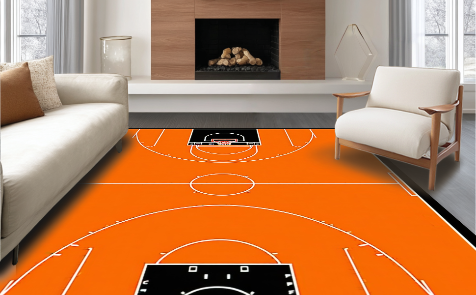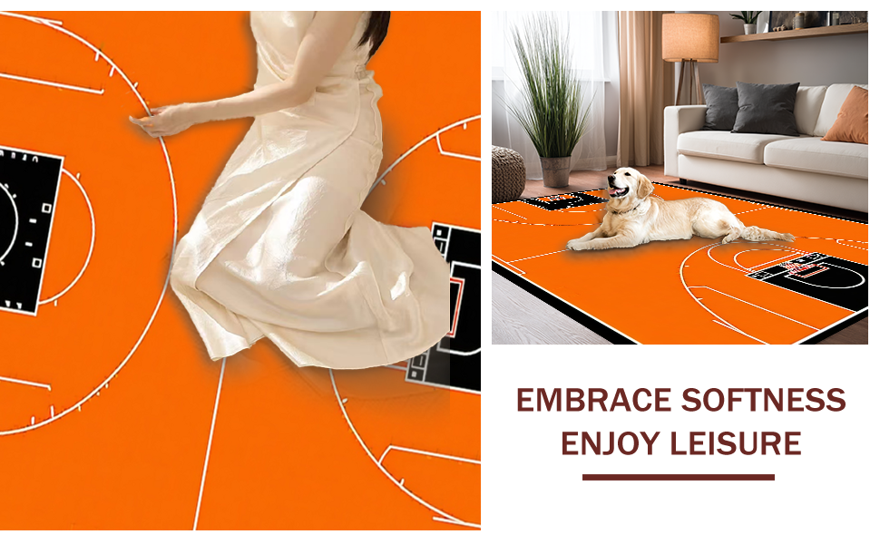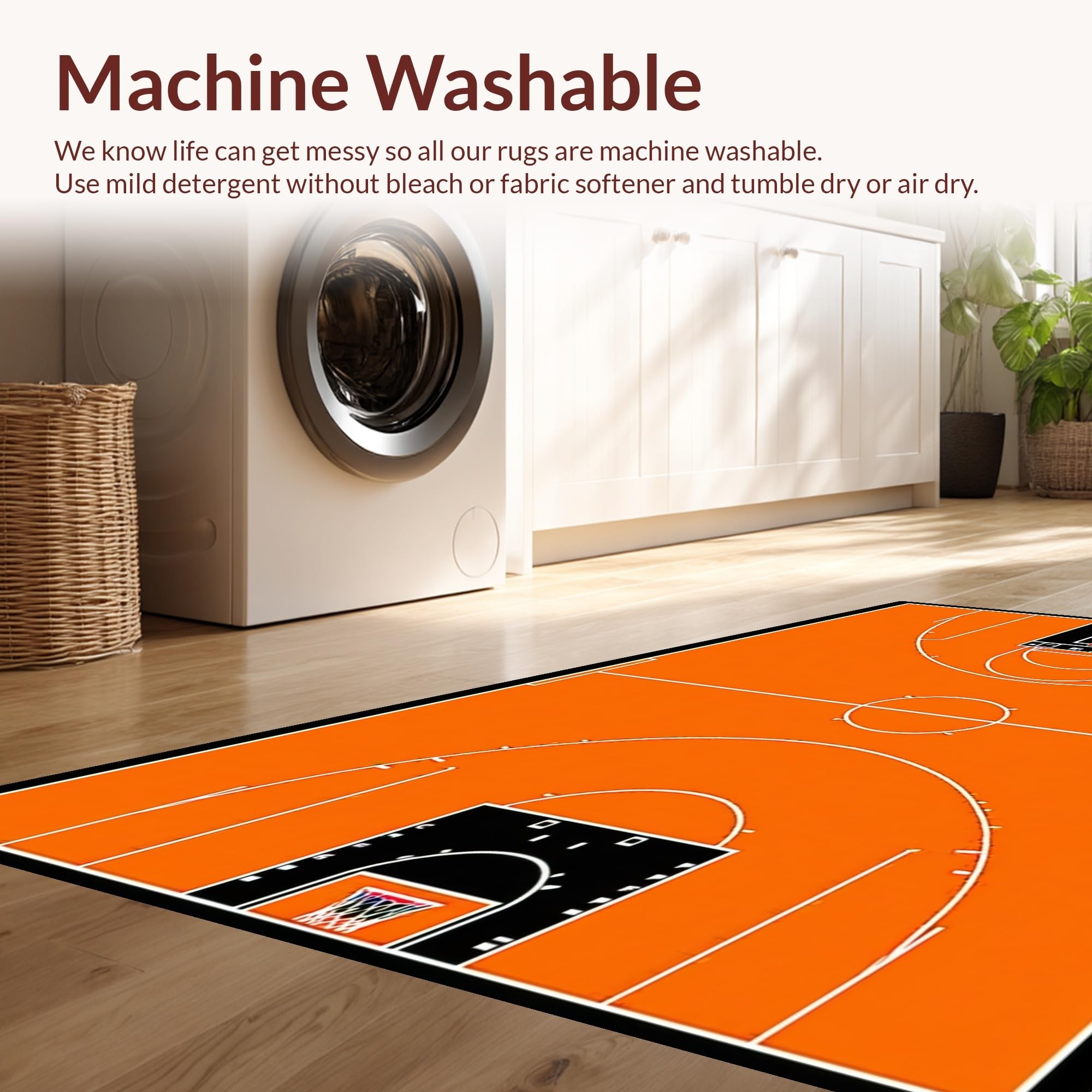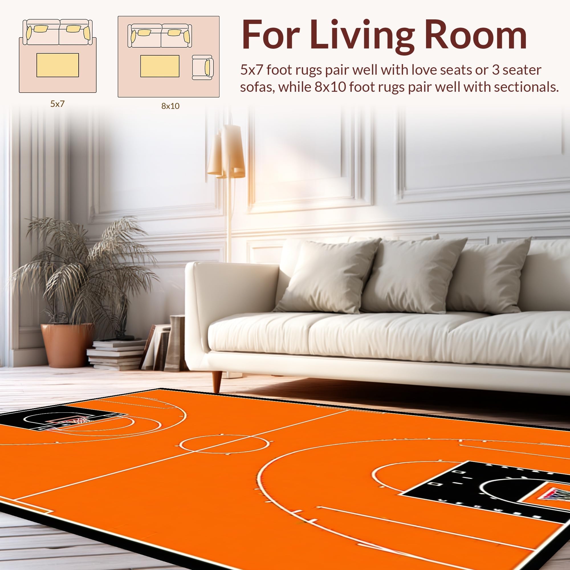 Ultra Soft Area Rug, Non Slip, Stain Resistant, Washable Area Rugs for Living Room, Bedroom, Whimsical Sports-Inspired Art Piece(Orange) Overview: