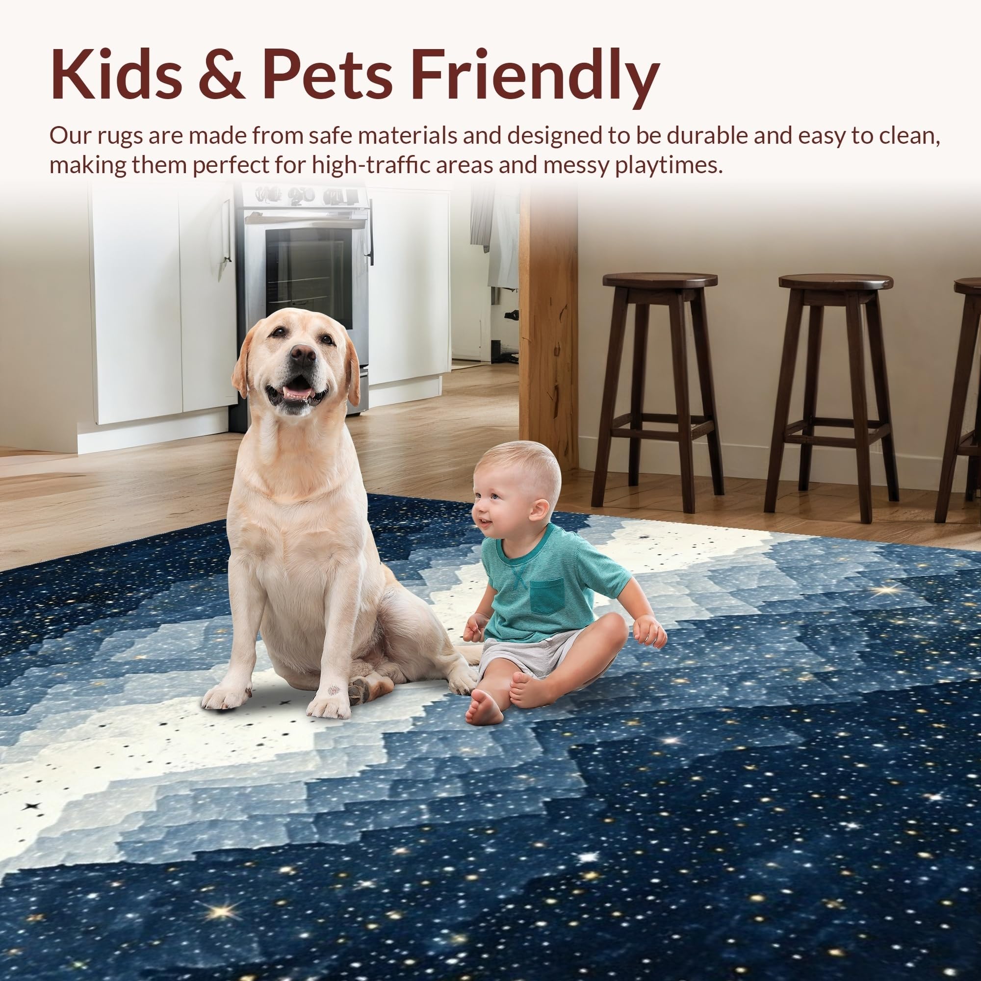 Ultra Soft Area Rug, Non Slip, Stain Resistant, Washable Area Rugs for Living Room, Bedroom, Whimsical Starry Night Aesthetic(Blue) Overview: