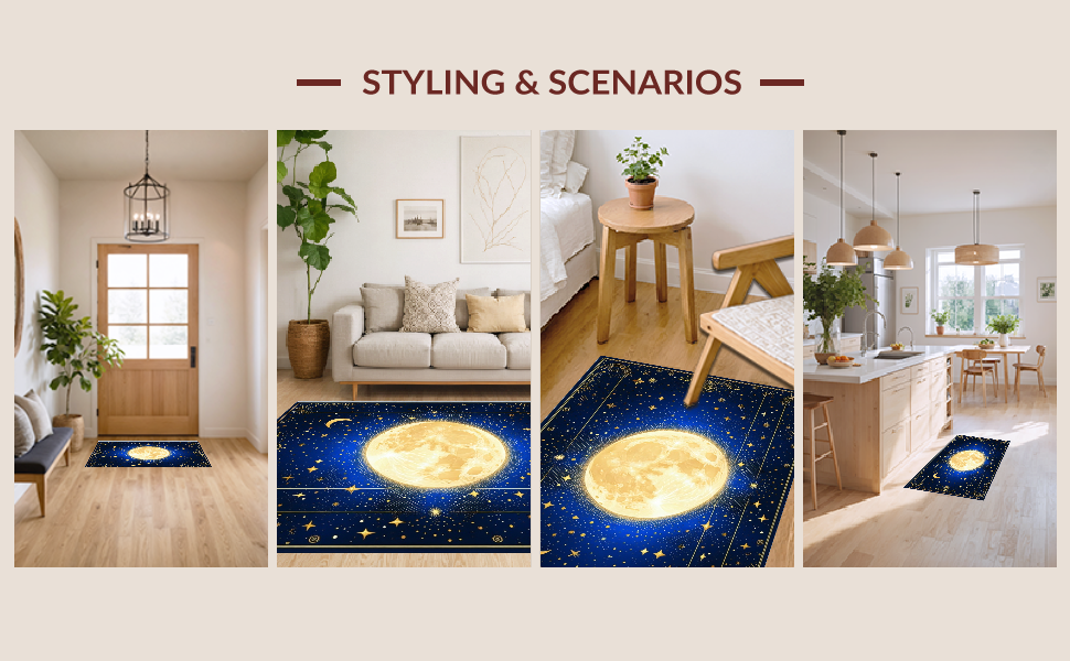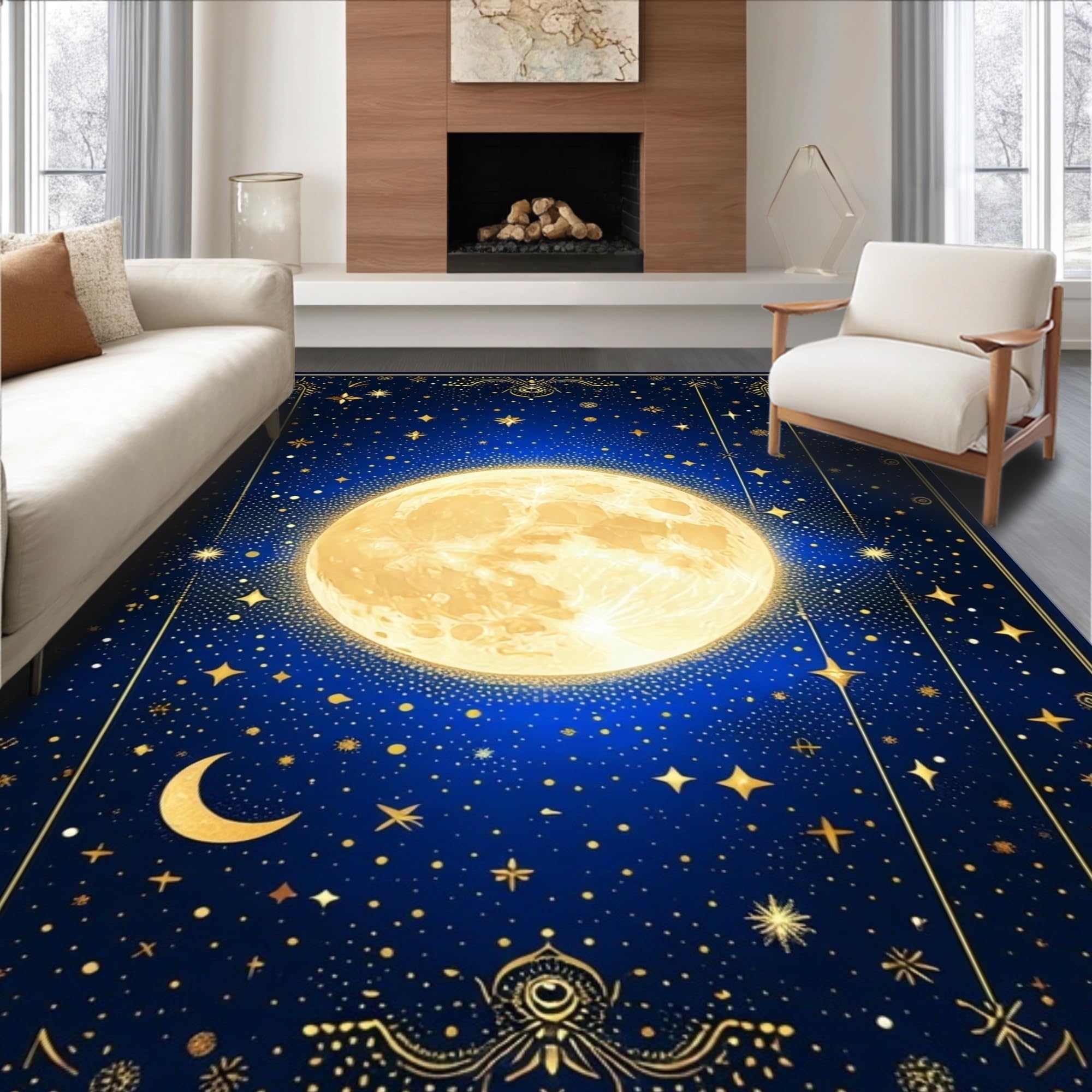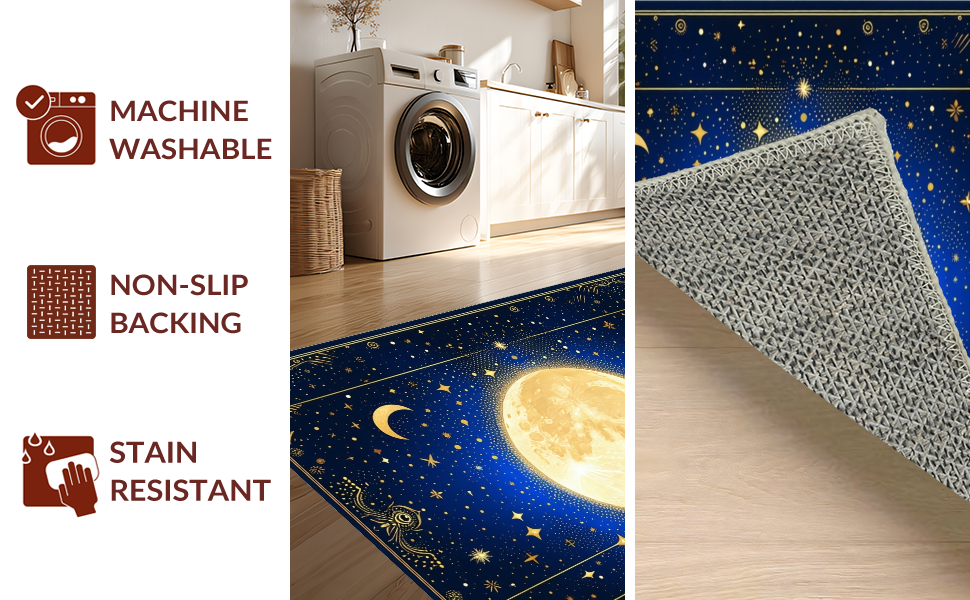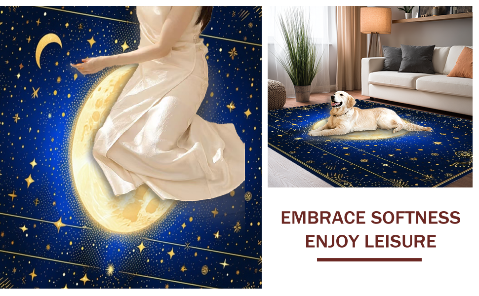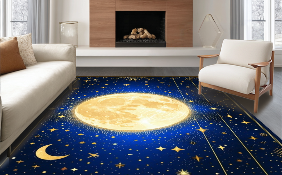 Ultra Soft Area Rug, Non Slip, Stain Resistant, Washable Area Rugs for Living Room, Bedroom, Whimsical Starry Night Motif(Blue) Overview: