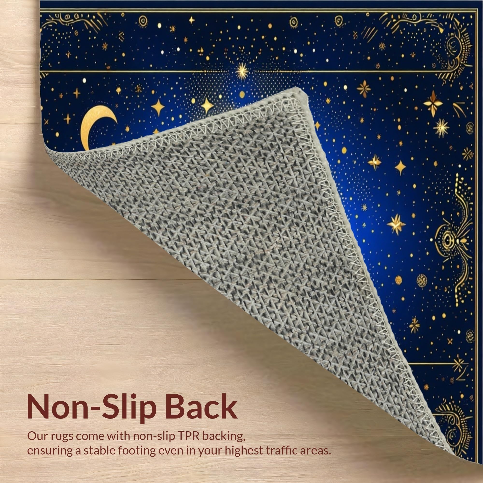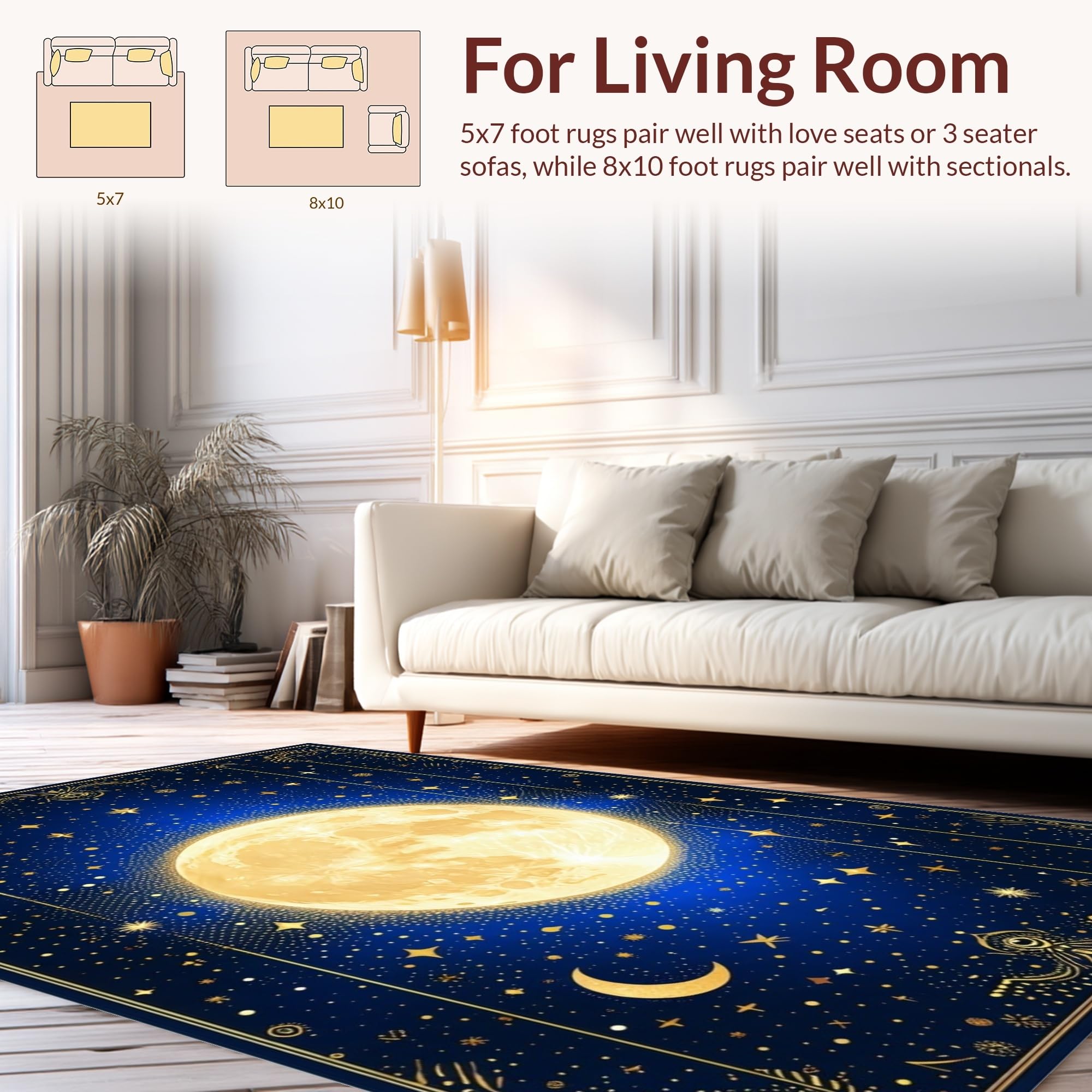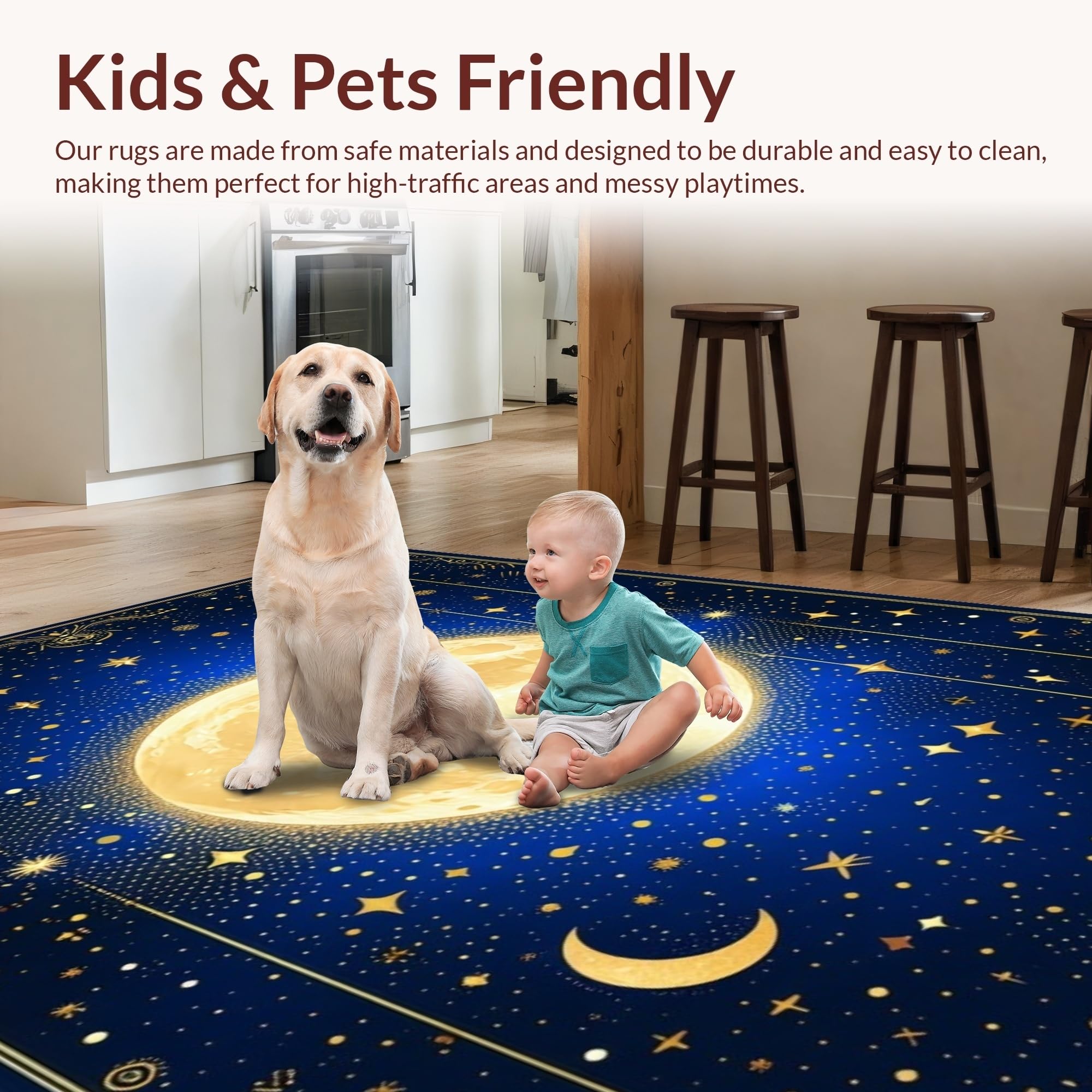 Ultra Soft Area Rug, Non Slip, Stain Resistant, Washable Area Rugs for Living Room, Bedroom, Whimsical Starry Night Motif(Blue) Overview: