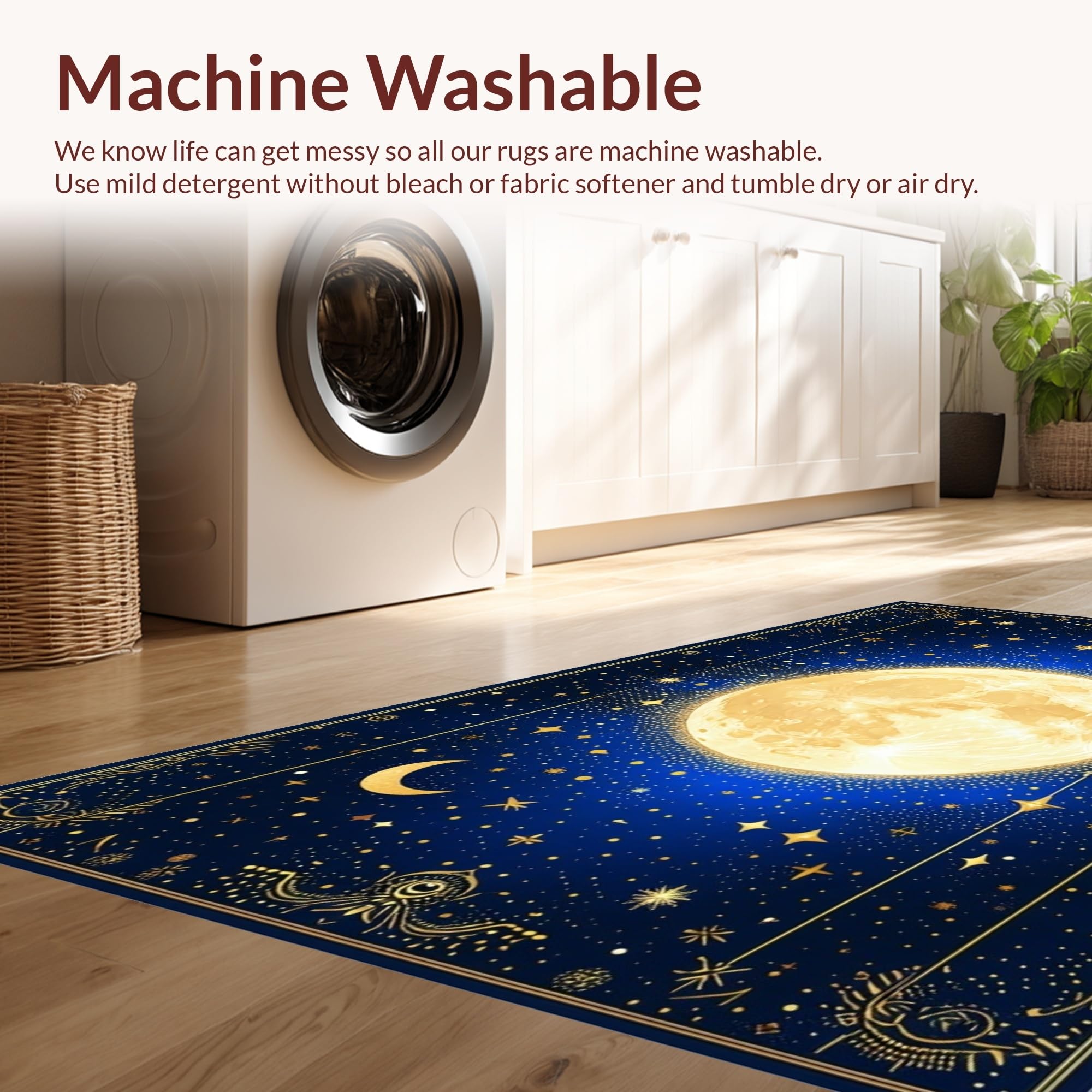 - Machine Washable: Our rugs can be easily thrown in the wash machine.