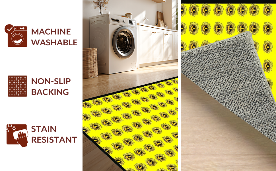 Ultra Soft Area Rug, Non Slip, Stain Resistant, Washable Area Rugs for Living Room, Bedroom, Whimsical Sunflower Tufted Style(Yellow) Overview:
