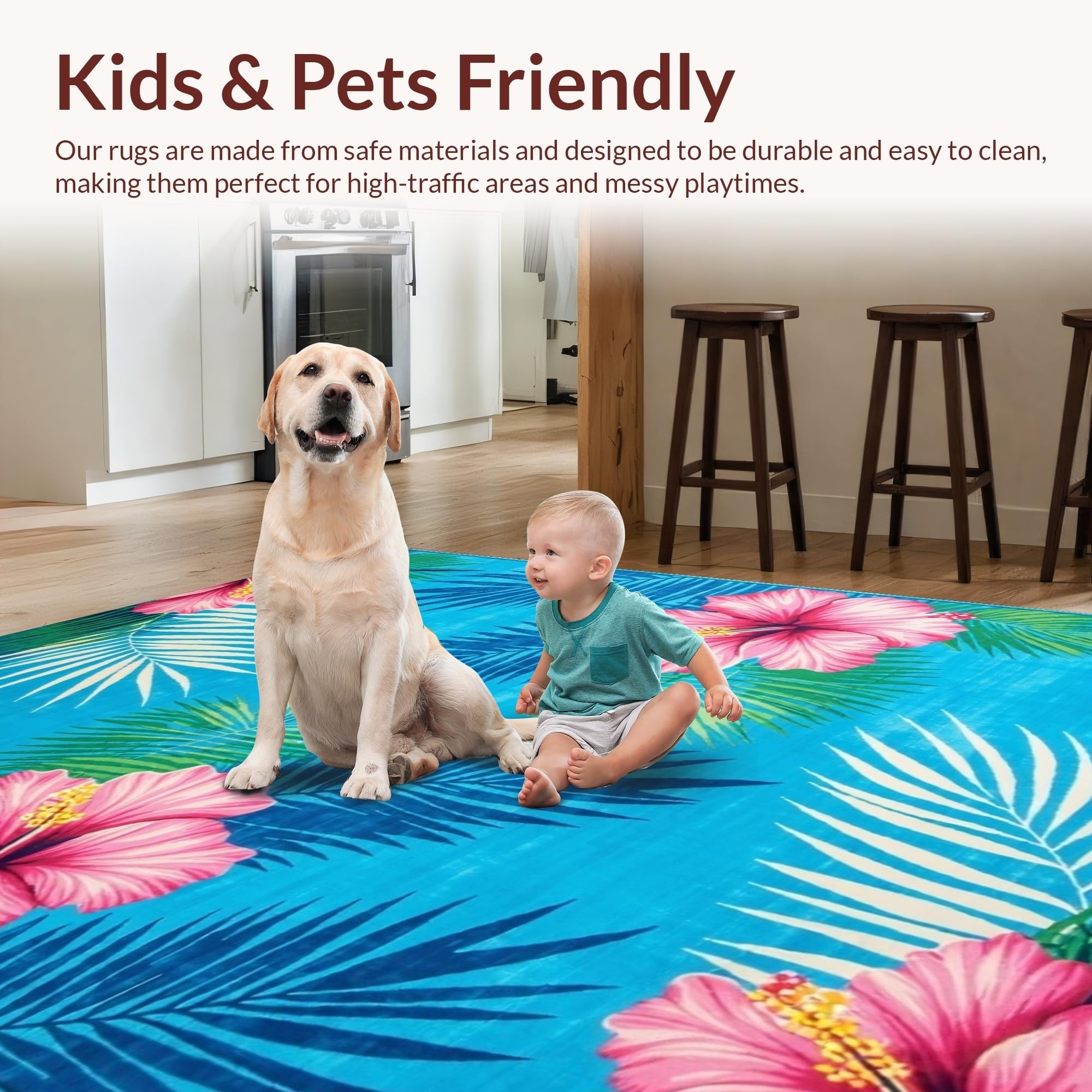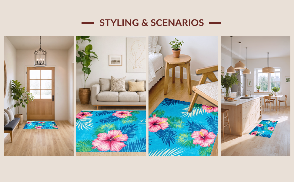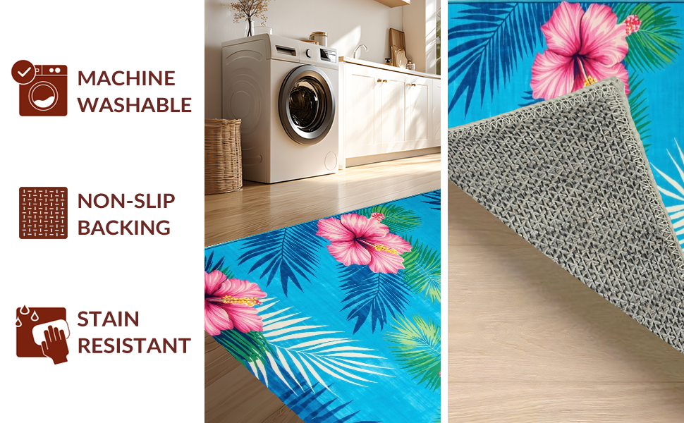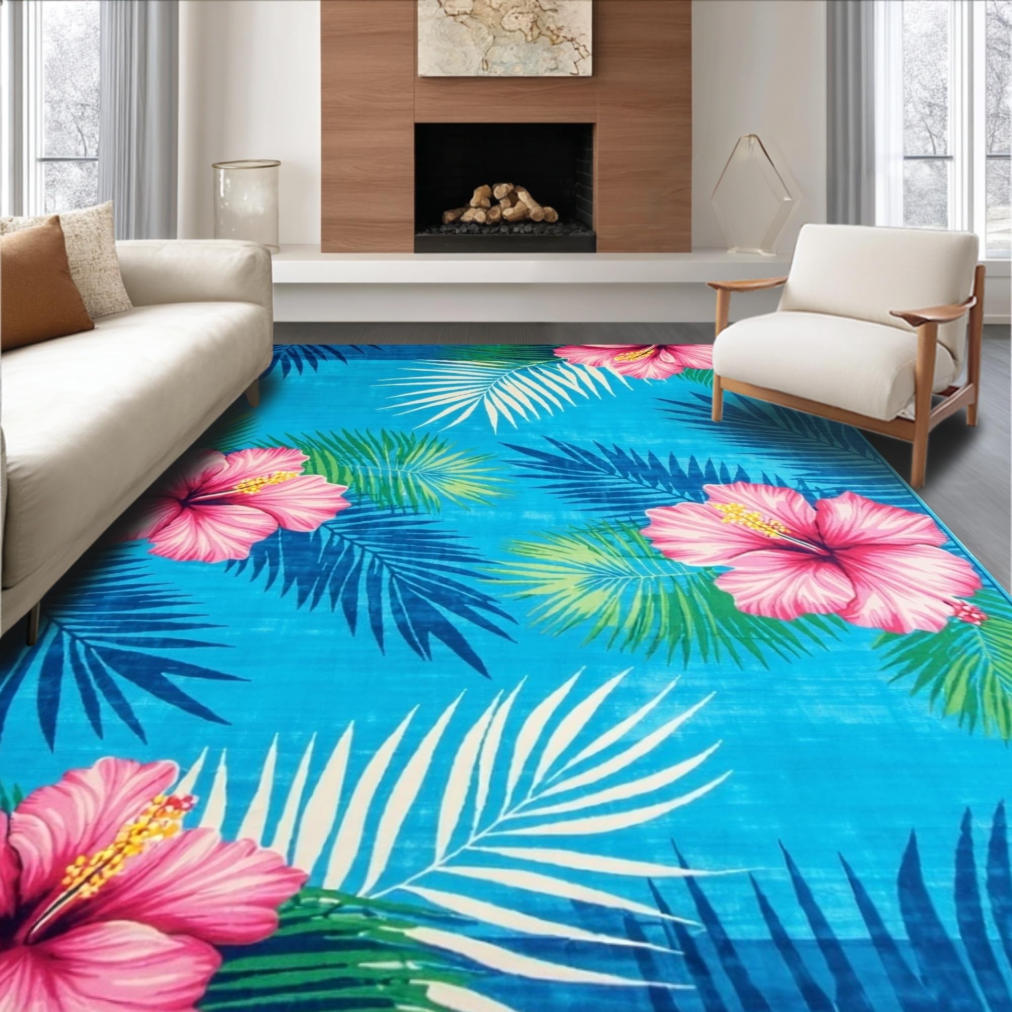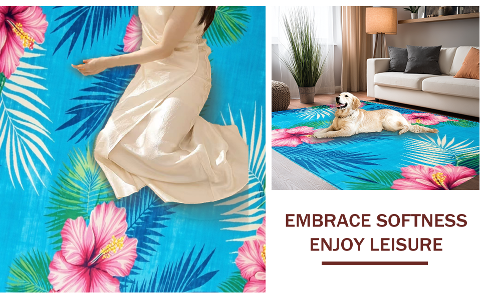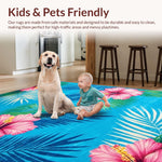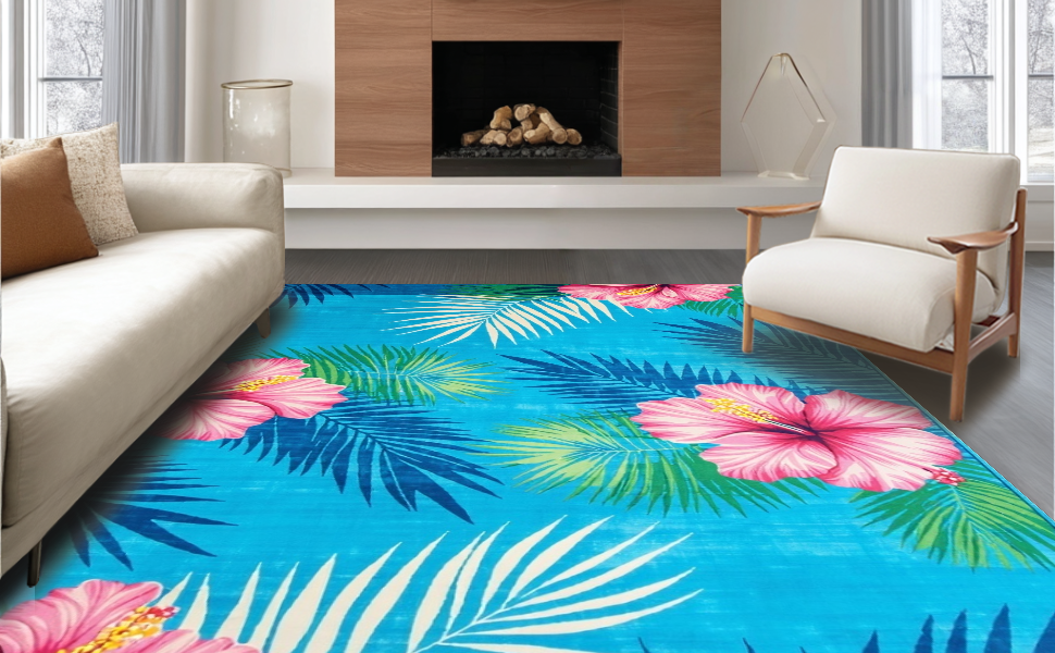Ultra Soft Area Rug, Non Slip, Stain Resistant, Washable Area Rugs for Living Room, Bedroom, Whimsical Tropical Garden Style(Blue) Overview: