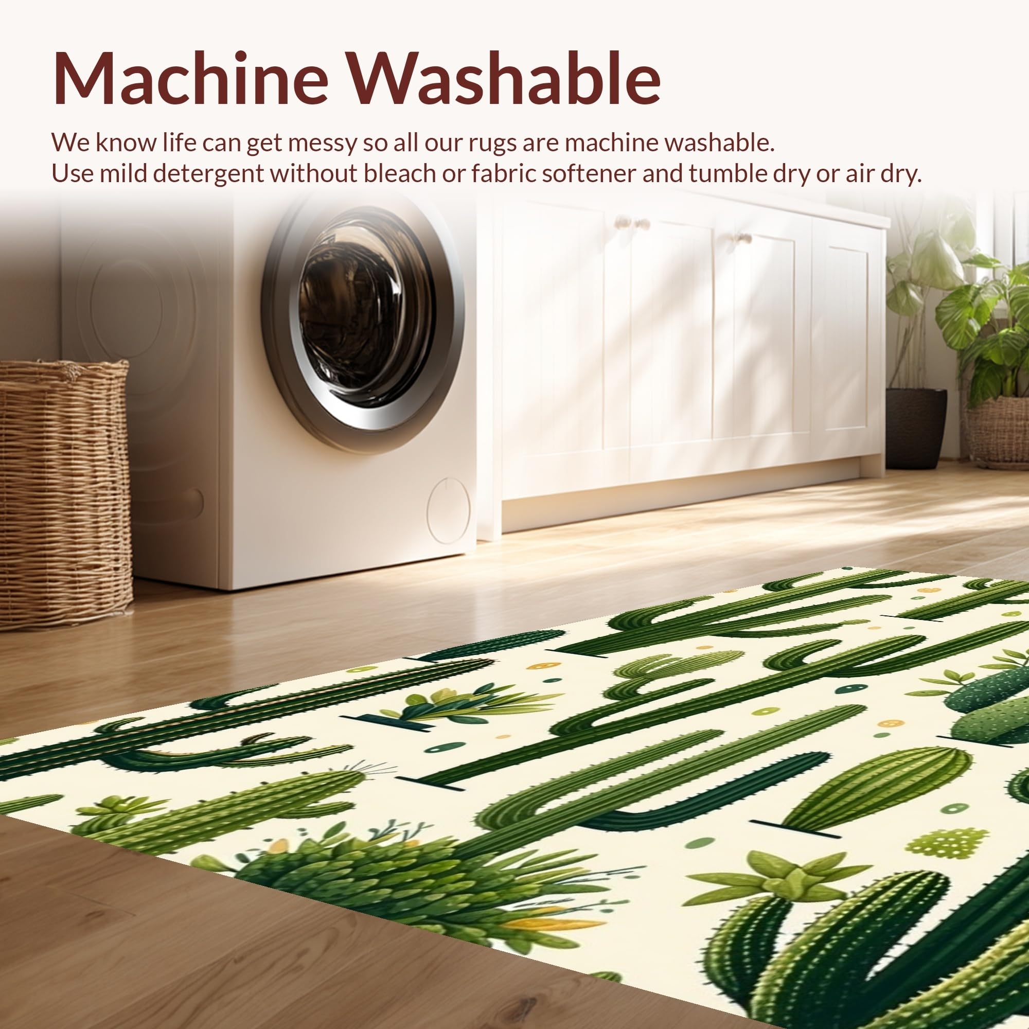 - Machine Washable: Our rugs can be easily thrown in the wash machine.