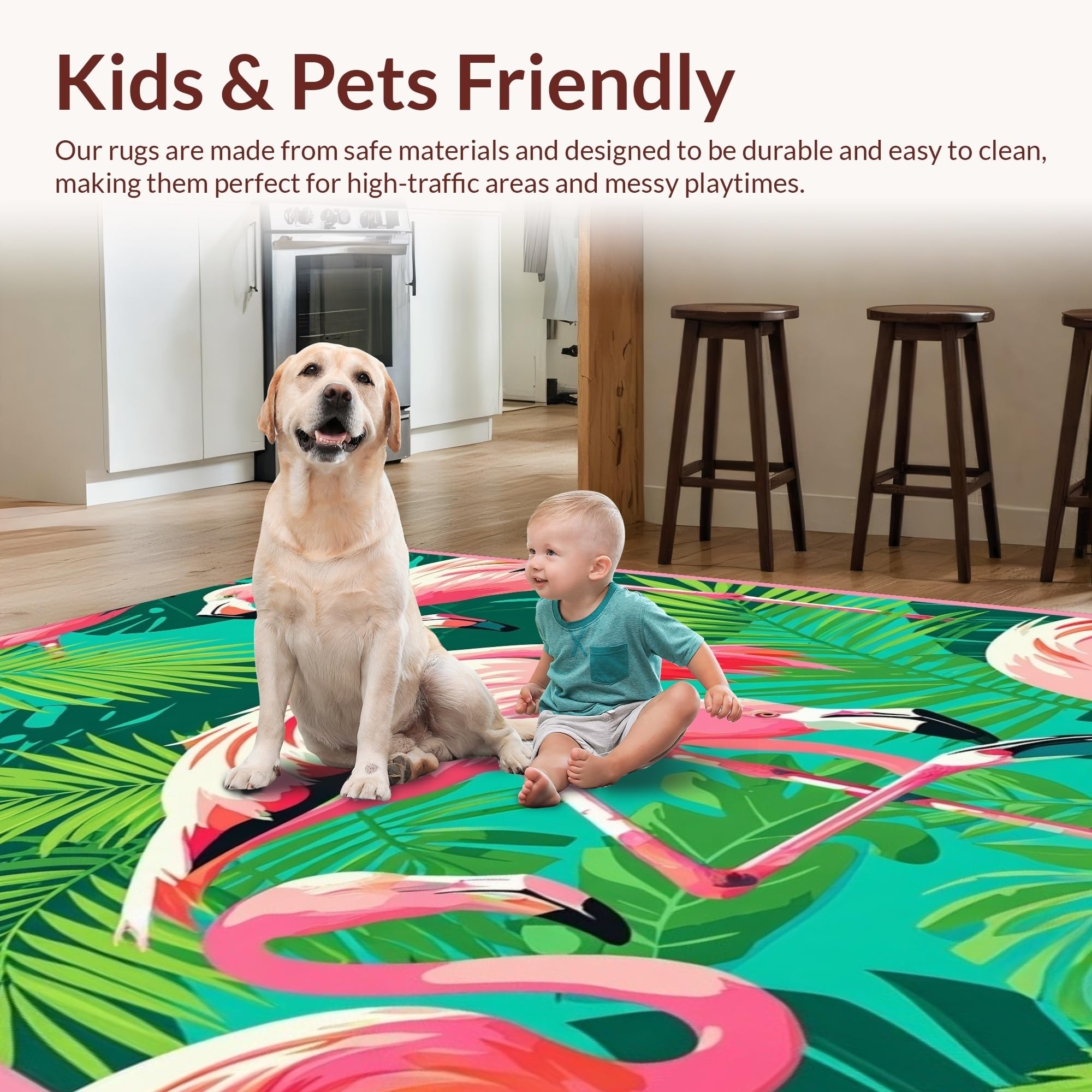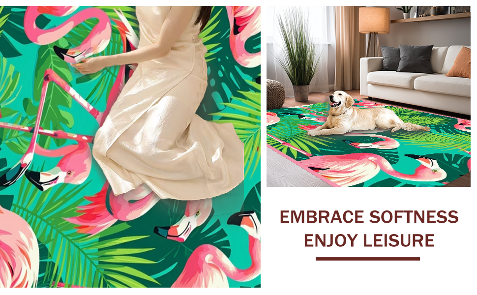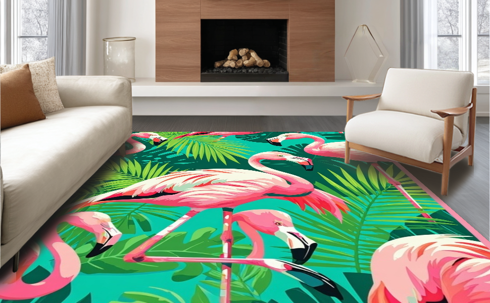 Ultra Soft Area Rug, Non Slip, Stain Resistant, Washable Area Rugs for Living Room, Bedroom, Whimsical Tropical Vibes Home Accent(Pink) Overview: