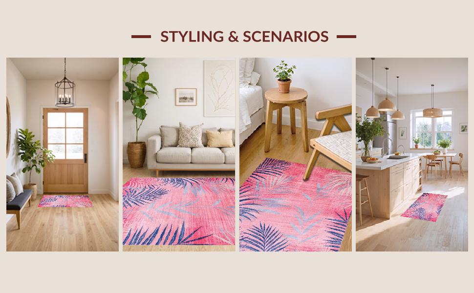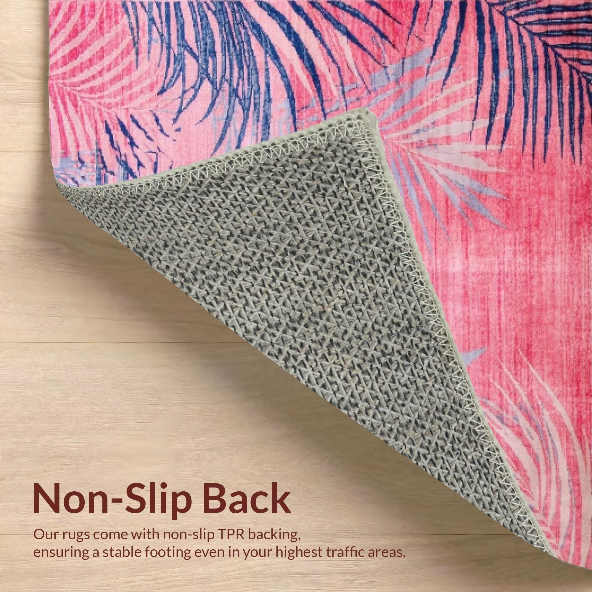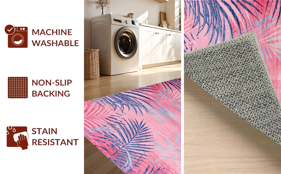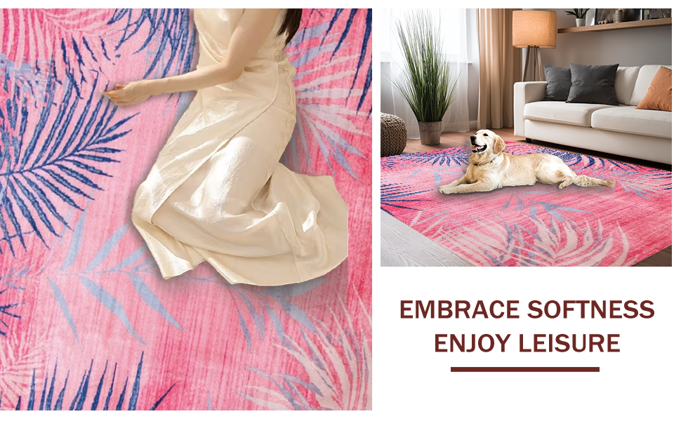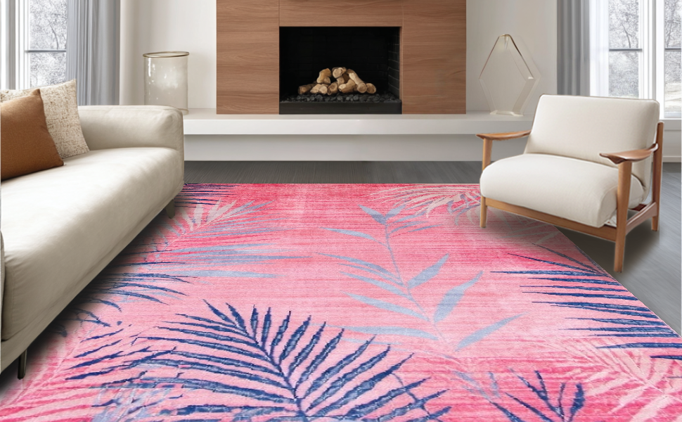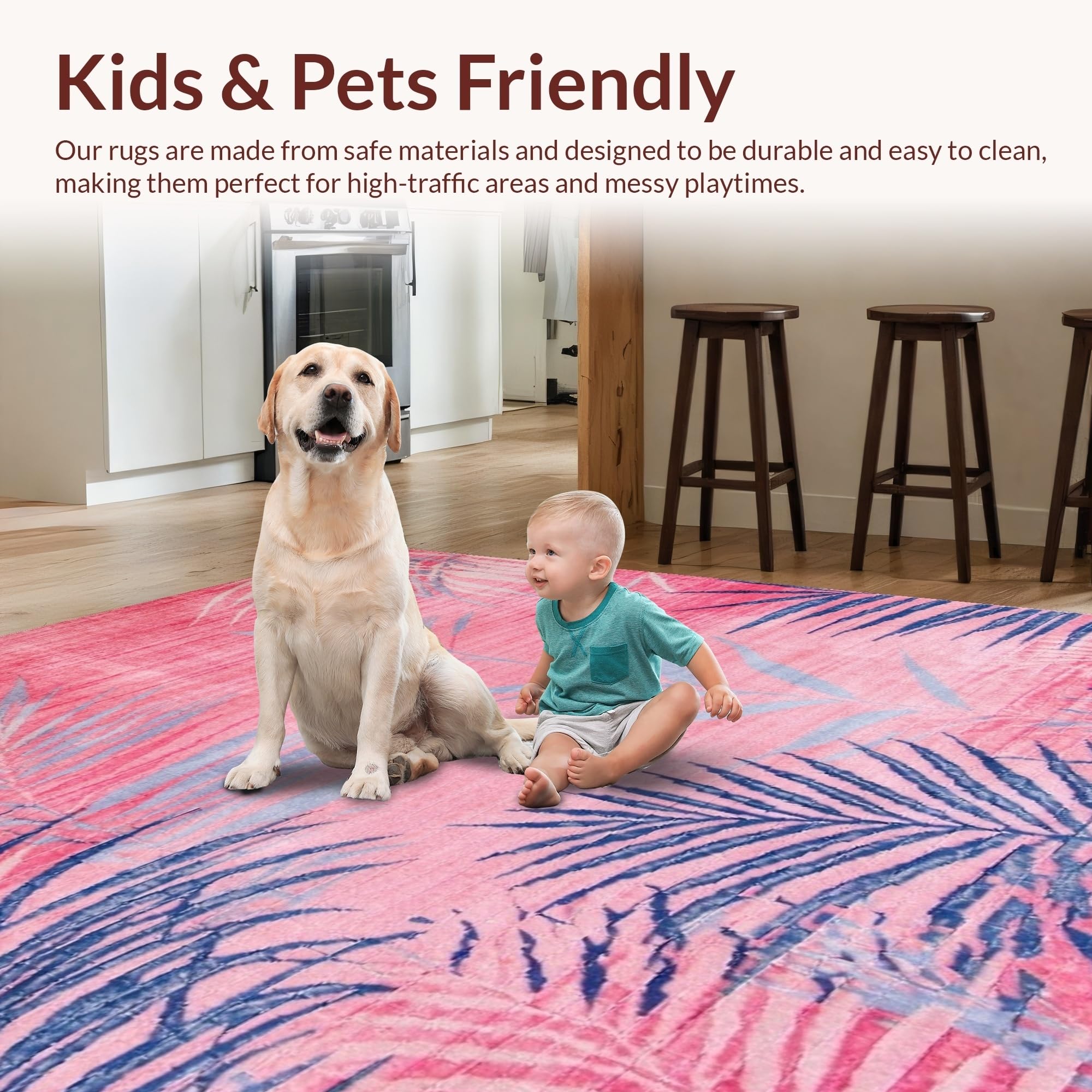 Ultra Soft Area Rug, Non Slip, Stain Resistant, Washable Area Rugs for Living Room, Bedroom, Whimsical Tropical Wildlife Design(Pink) Overview: