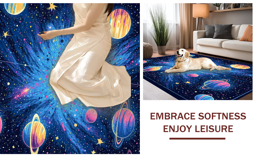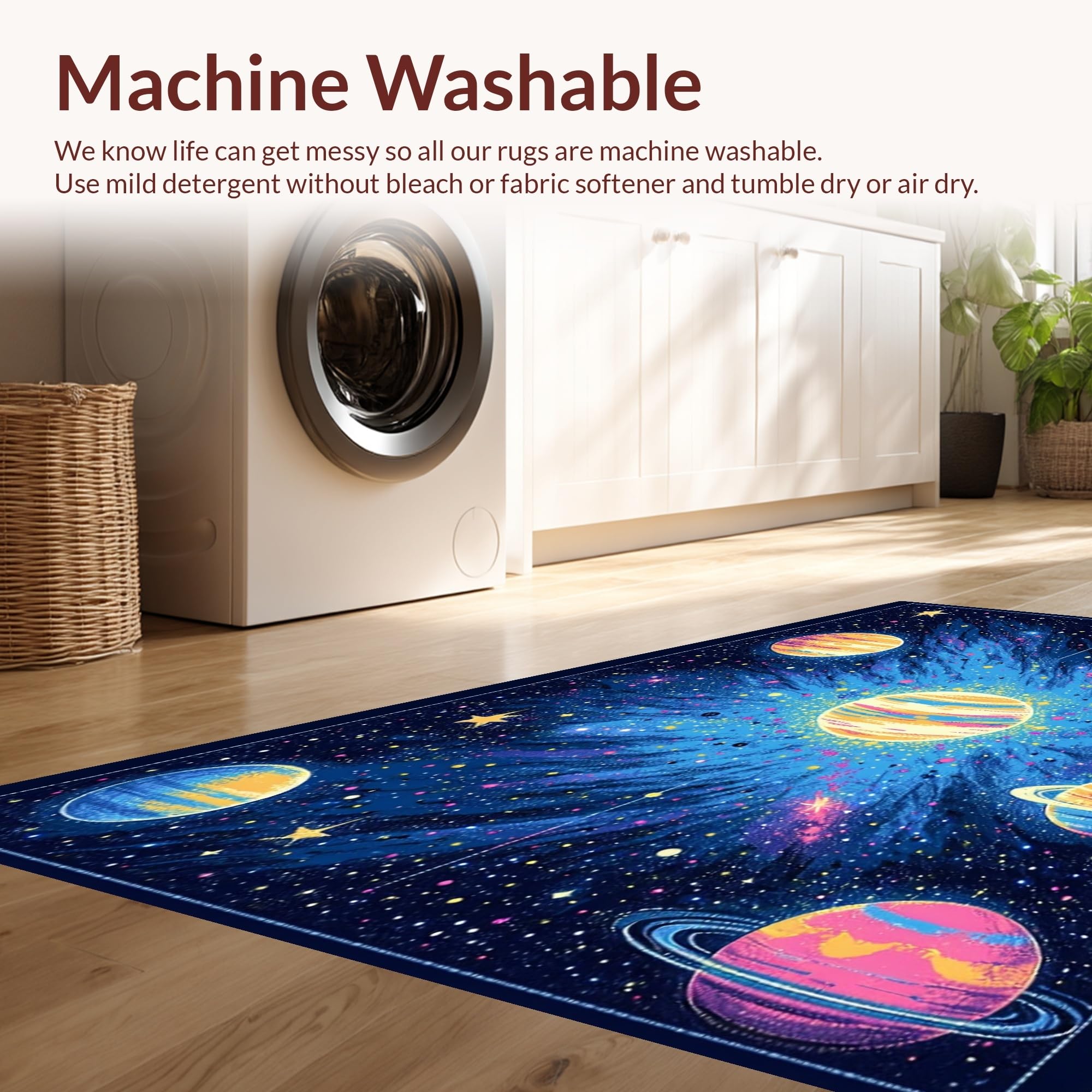 Ultra Soft Area Rug, Non Slip, Stain Resistant, Washable Area Rugs for Living Room, Bedroom, Whimsical Universe Exploration Concept(Blue) Overview: