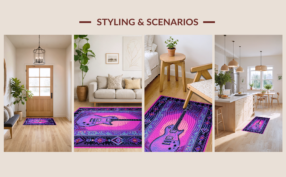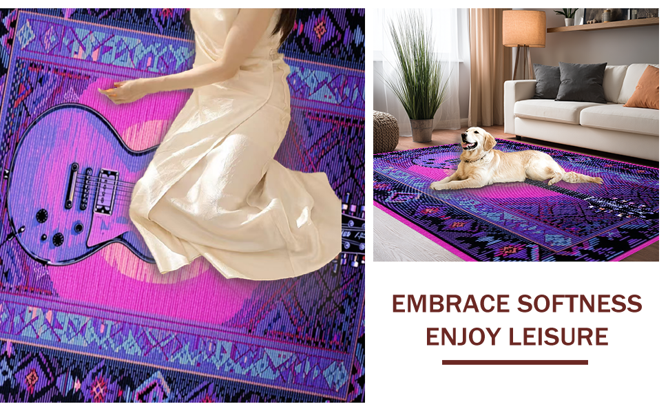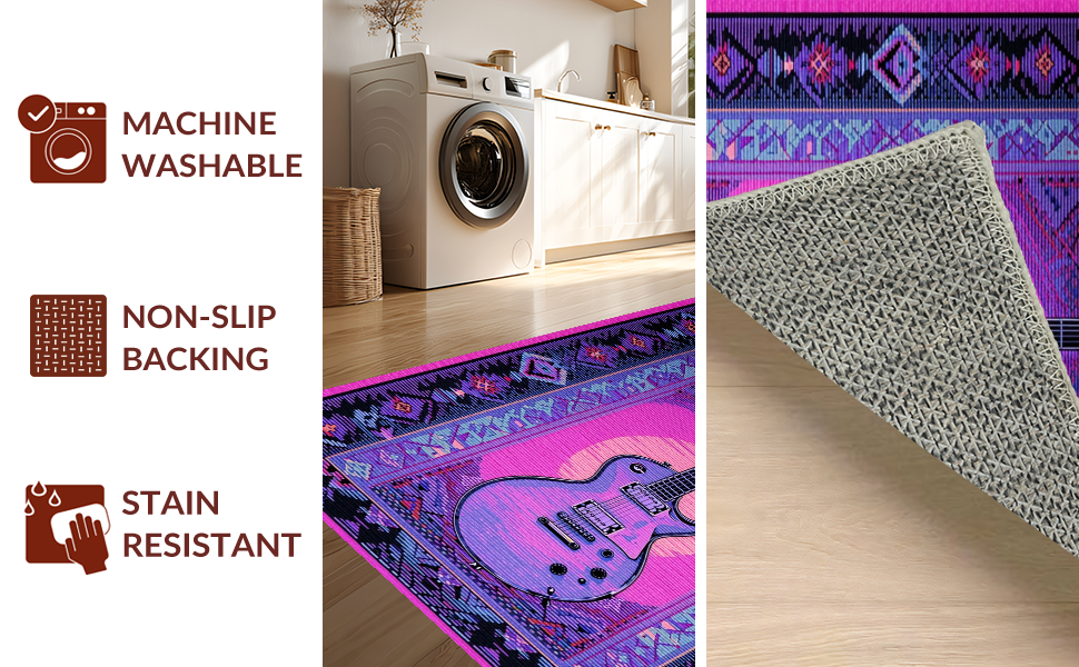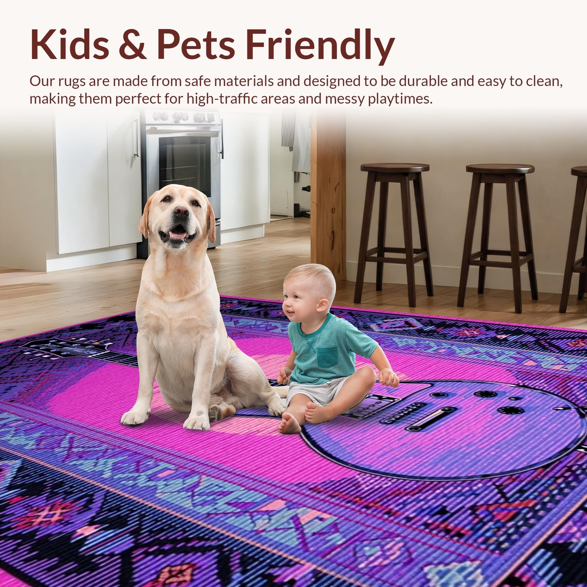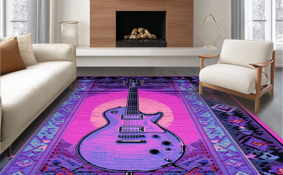 Ultra Soft Area Rug, Non Slip, Stain Resistant, Washable Area Rugs for Living Room, Bedroom, Whimsical Vibrant Music-Inspired Design(Purple) Overview: