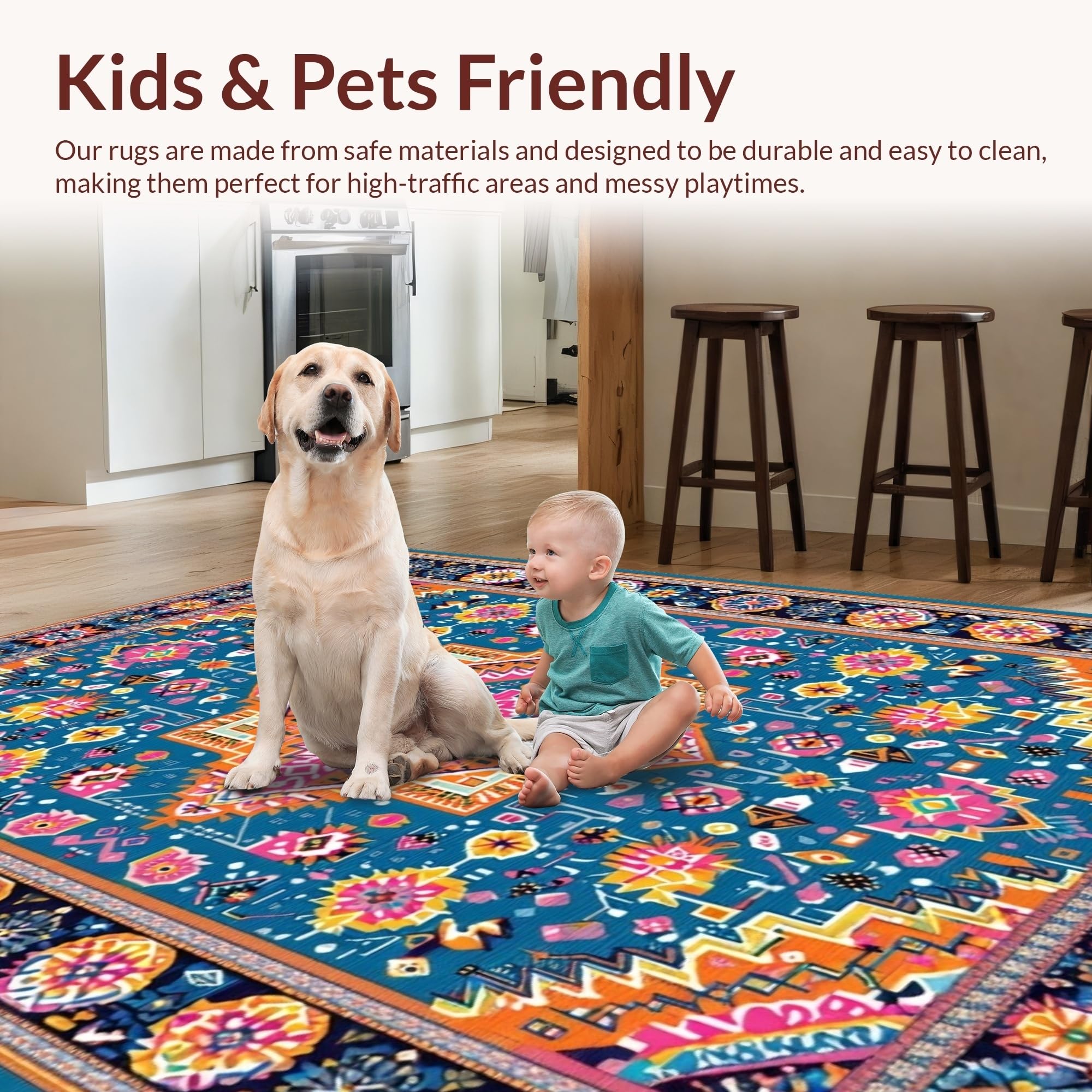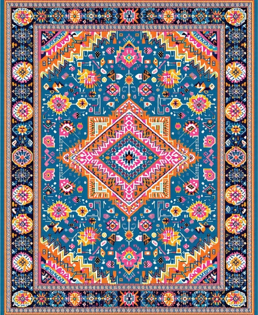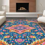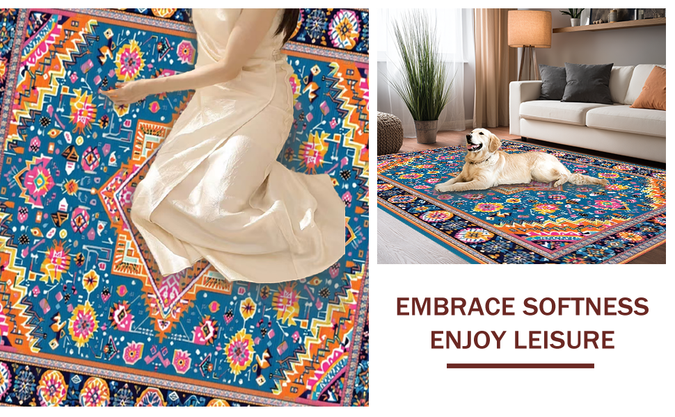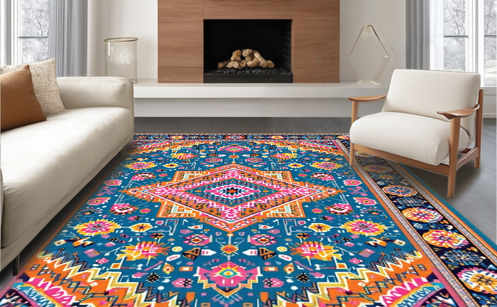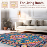 Ultra Soft Area Rug, Non Slip, Stain Resistant, Washable Area Rugs for Living Room, Bedroom, Whimsical Vintage Inspired Patterns(Blue) Overview: