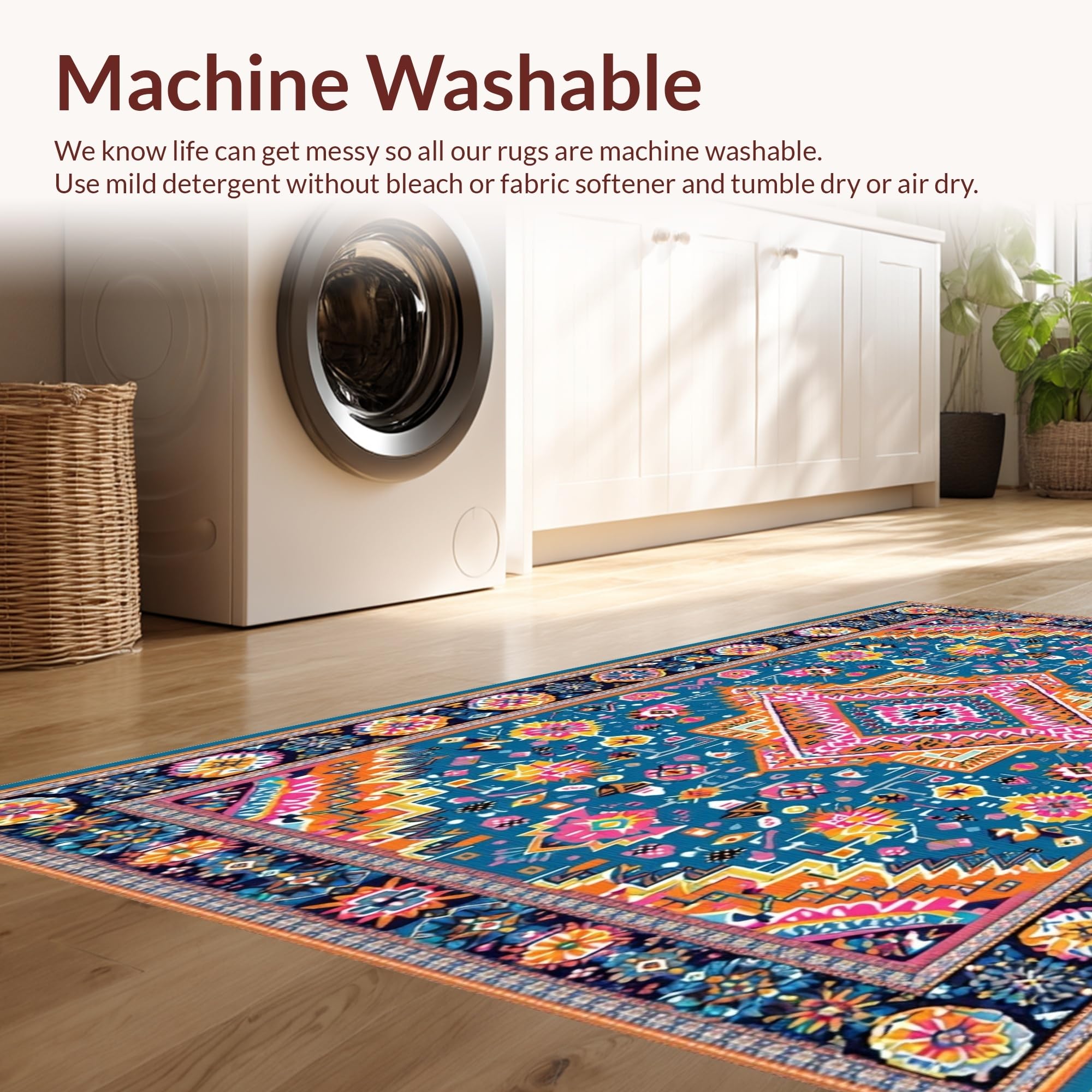 - Machine Washable: Our rugs can be easily thrown in the wash machine.