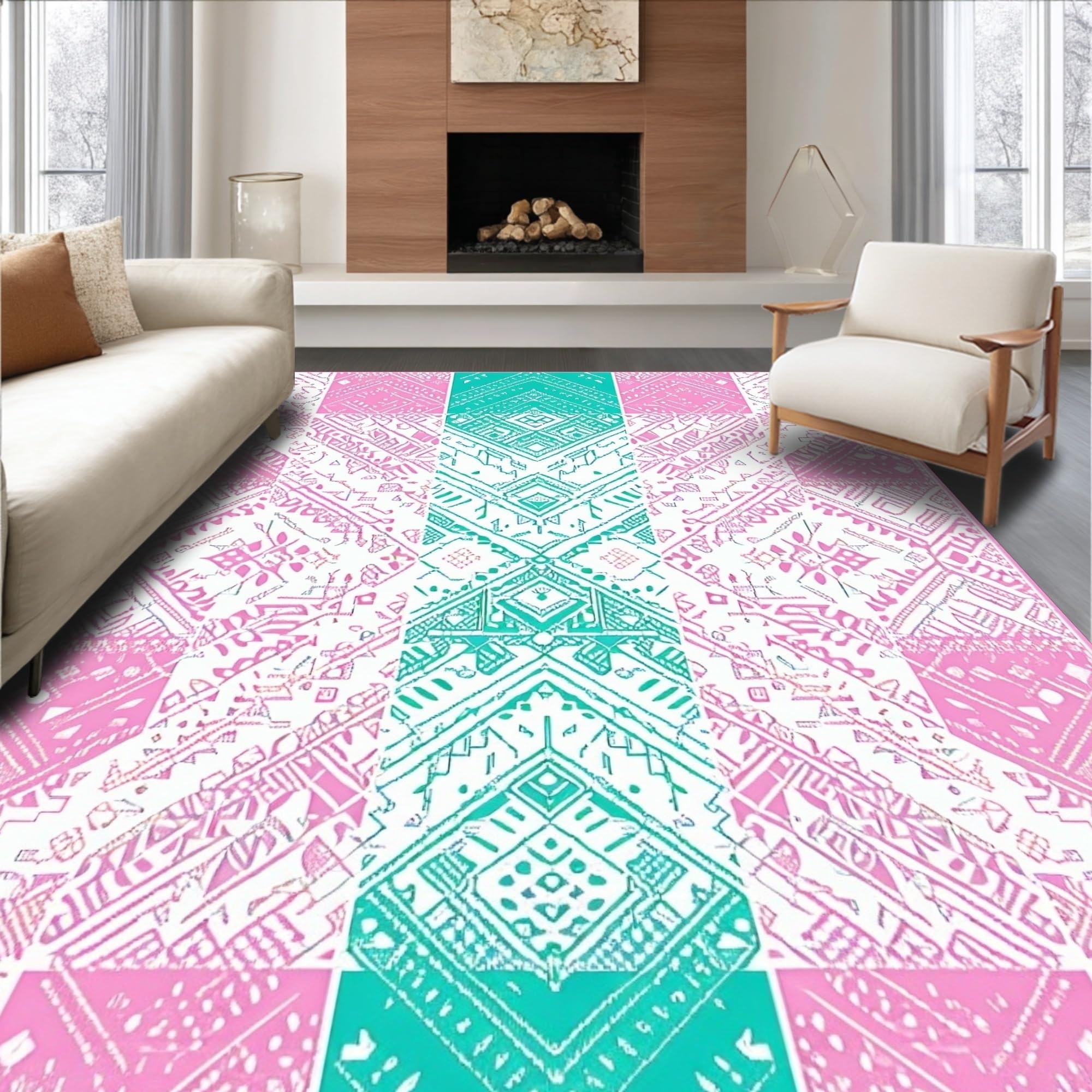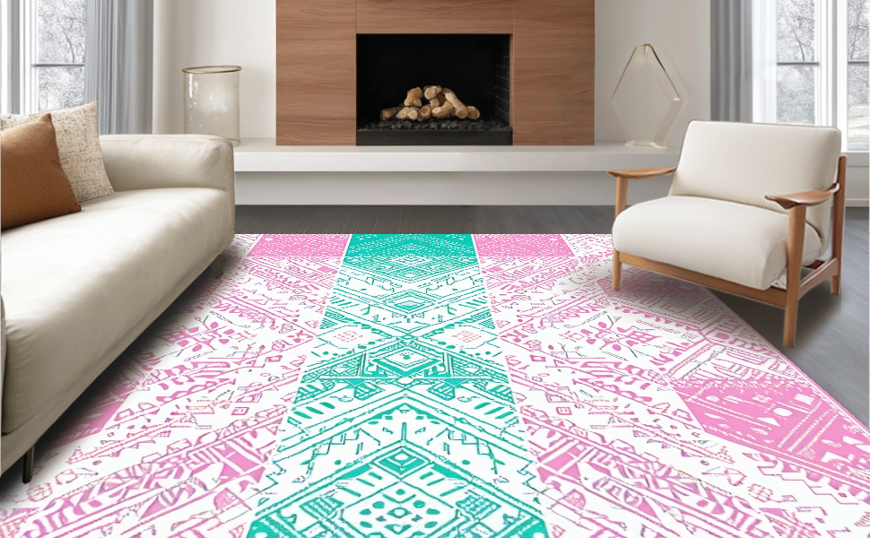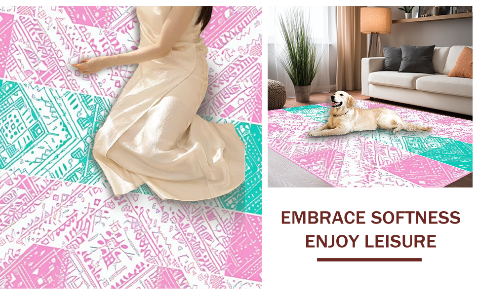 Ultra Soft Area Rug, Non Slip, Stain Resistant, Washable Area Rugs for Living Room, Bedroom, Whimsical Watercolor Egg Motif(Pink) Overview: