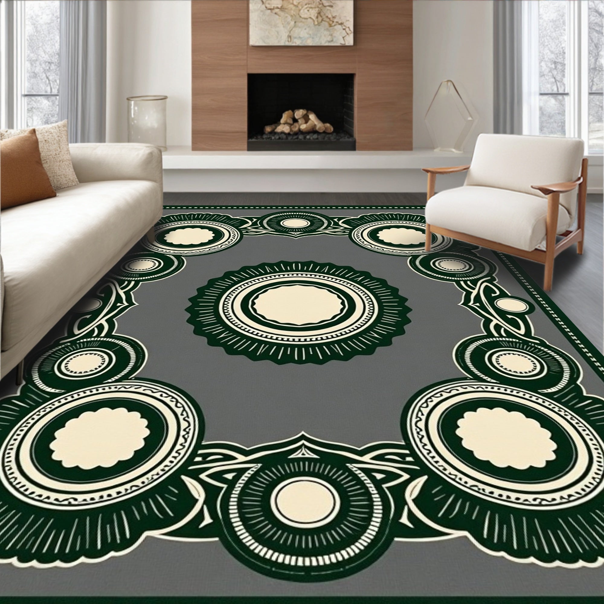 Ultra Soft Area Rug, Non Slip, Stain Resistant, Washable Area Rugs for Living Room, Bedroom, Whimsical Woodland Fairy Ring with Mushroom Accents(Green) Overview: