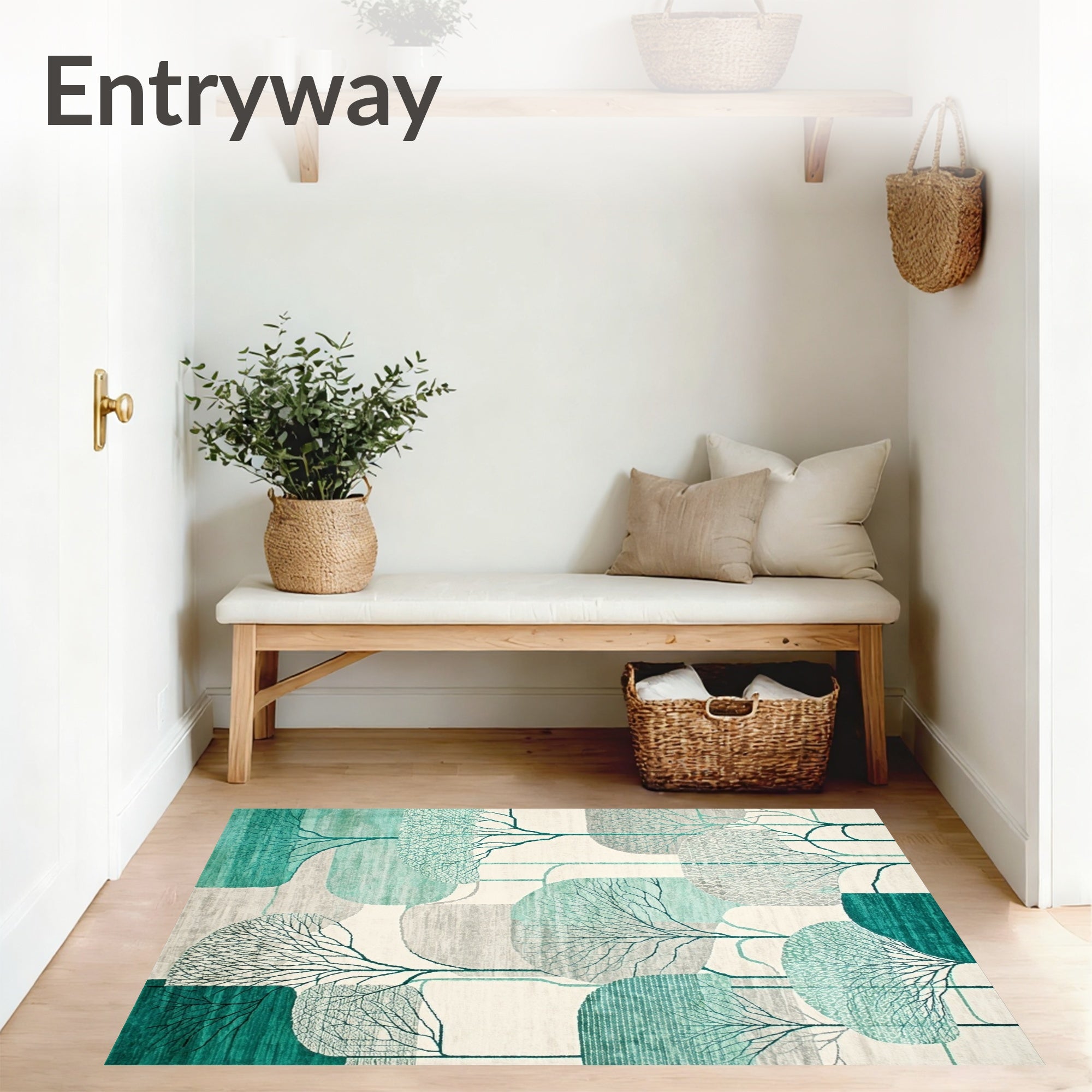 Ultra Soft Area Rug, Non Slip, Stain Resistant, Washable Area Rugs for Living Room, Bedroom, Whispering Grove Geometric Area with Artful Nature Inspired Forms(Gray) Overview: