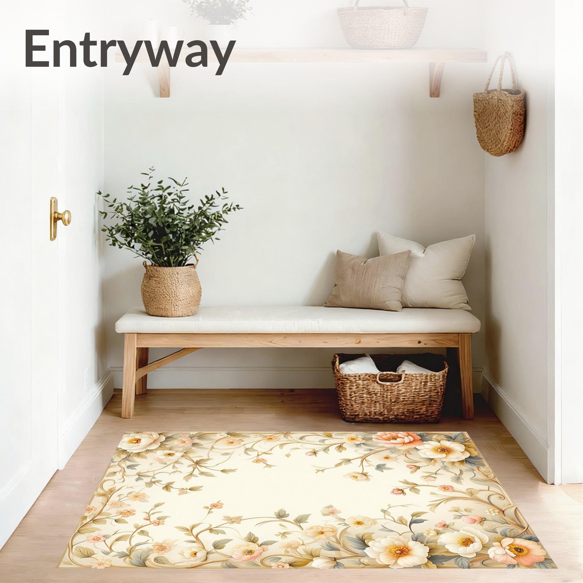 Flatwoven High Traffic Area Rug, Whispering Meadow Floral Modern Style, Non Slip, Stain Resistant, Washable Area Rugs for Living Room, Bedroom (Ivory) Overview: