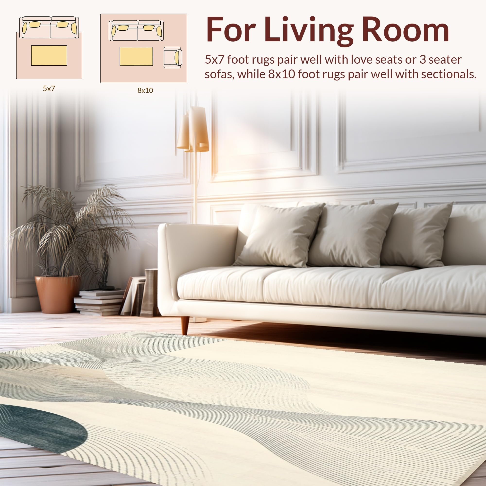 Ultra Soft Area Rug, Non Slip, Stain Resistant, Washable Area Rugs for Living Room, Bedroom, Whispering Waves Area Smoke & Beige Shifting Sands Design(Beige) Overview: