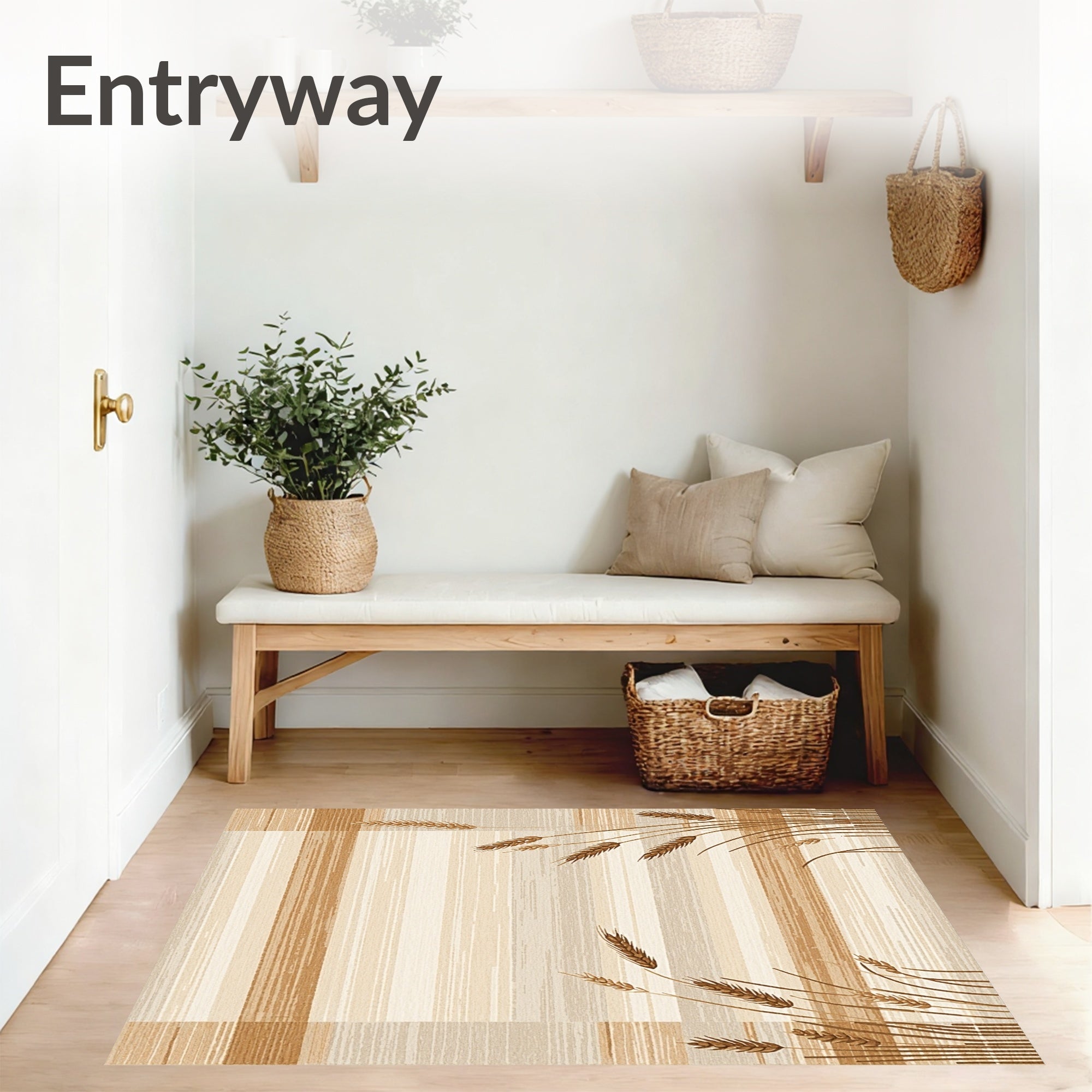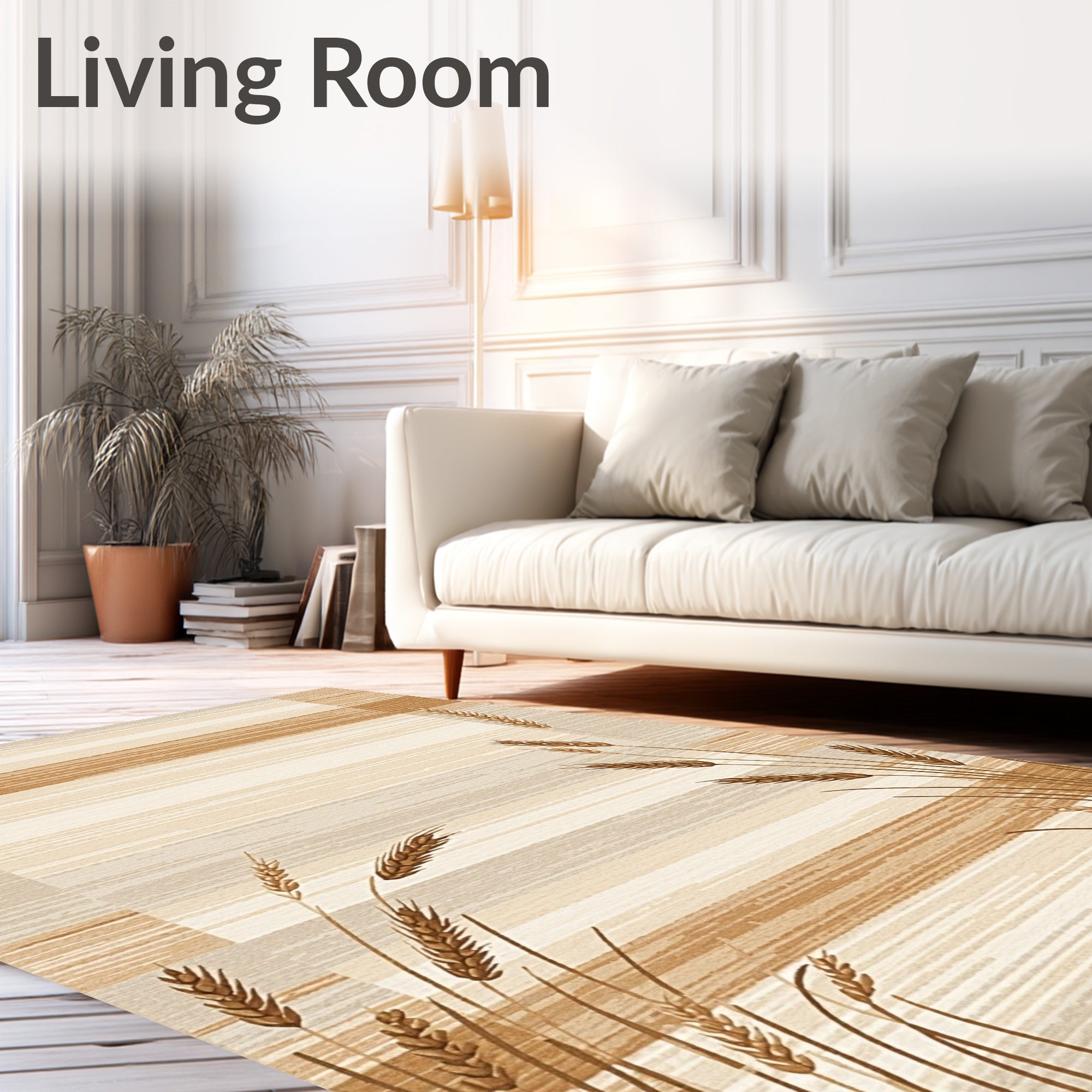 Ultra Soft Area Rug, Non Slip, Stain Resistant, Washable Area Rugs for Living Room, Bedroom, Whispering Wheat Stalks Area Beige Brown Palette(Beige) Overview: