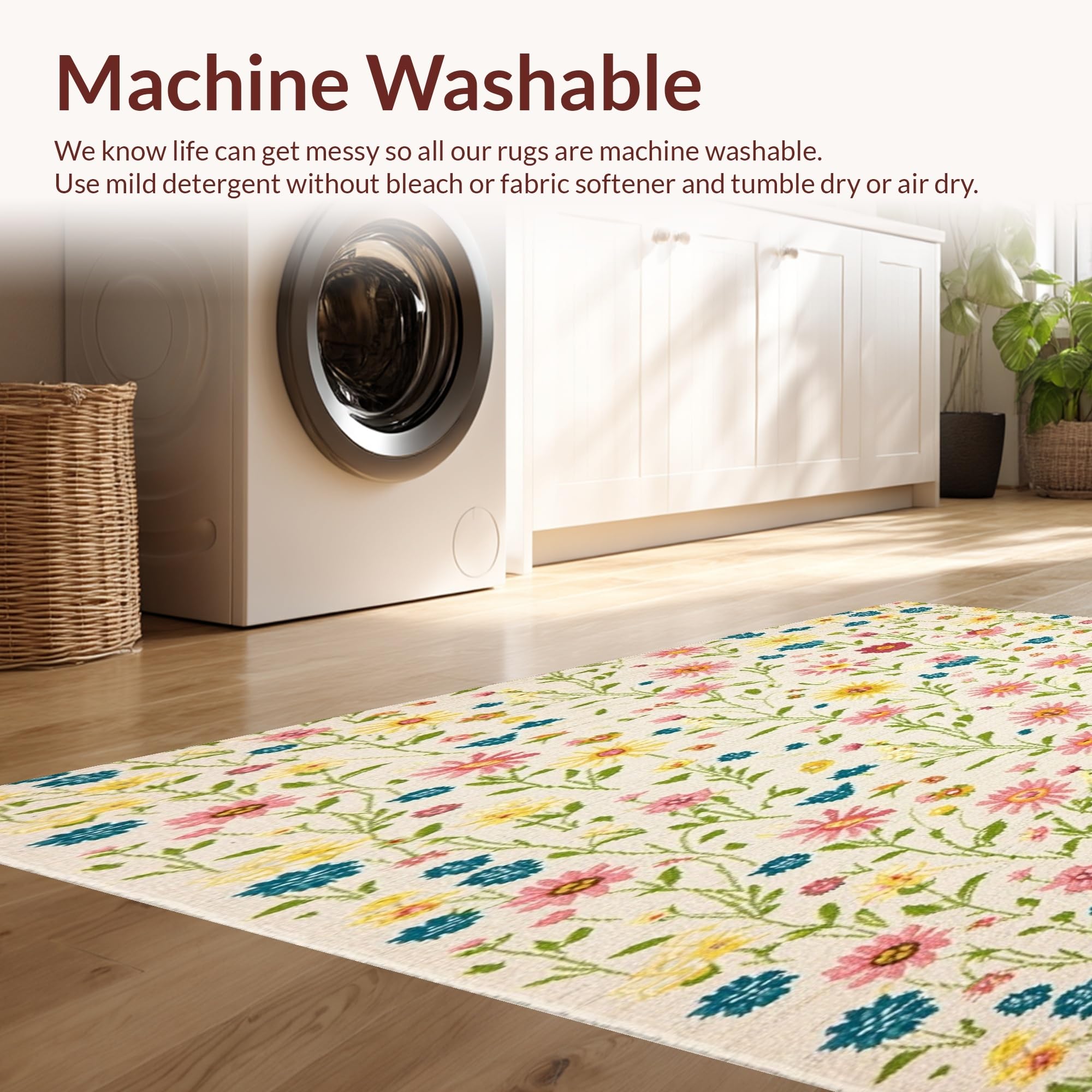 - Machine Washable: Our rugs can be easily thrown in the wash machine.