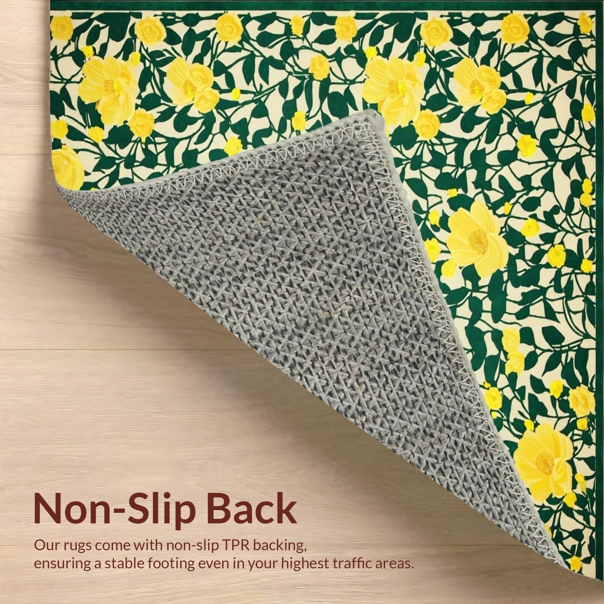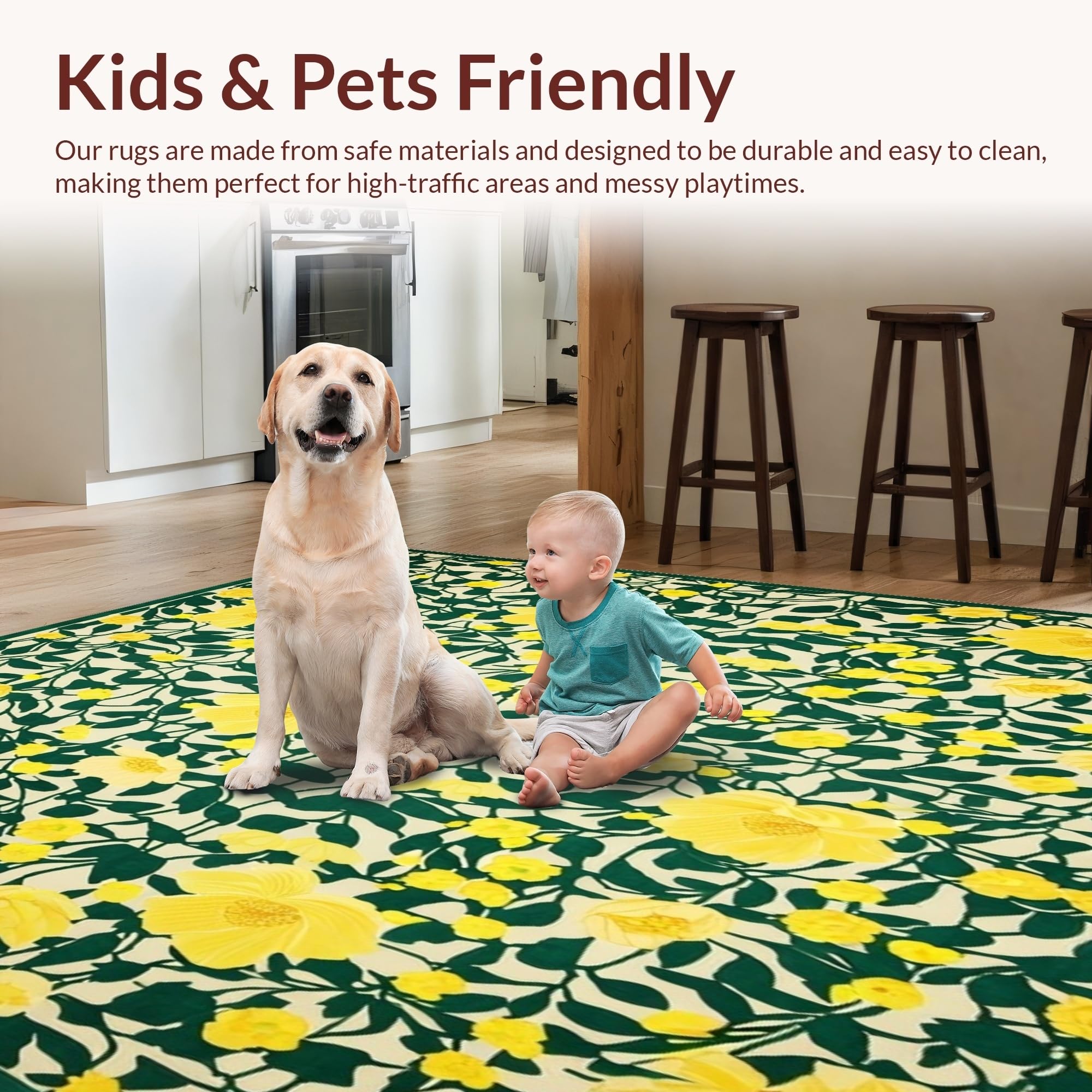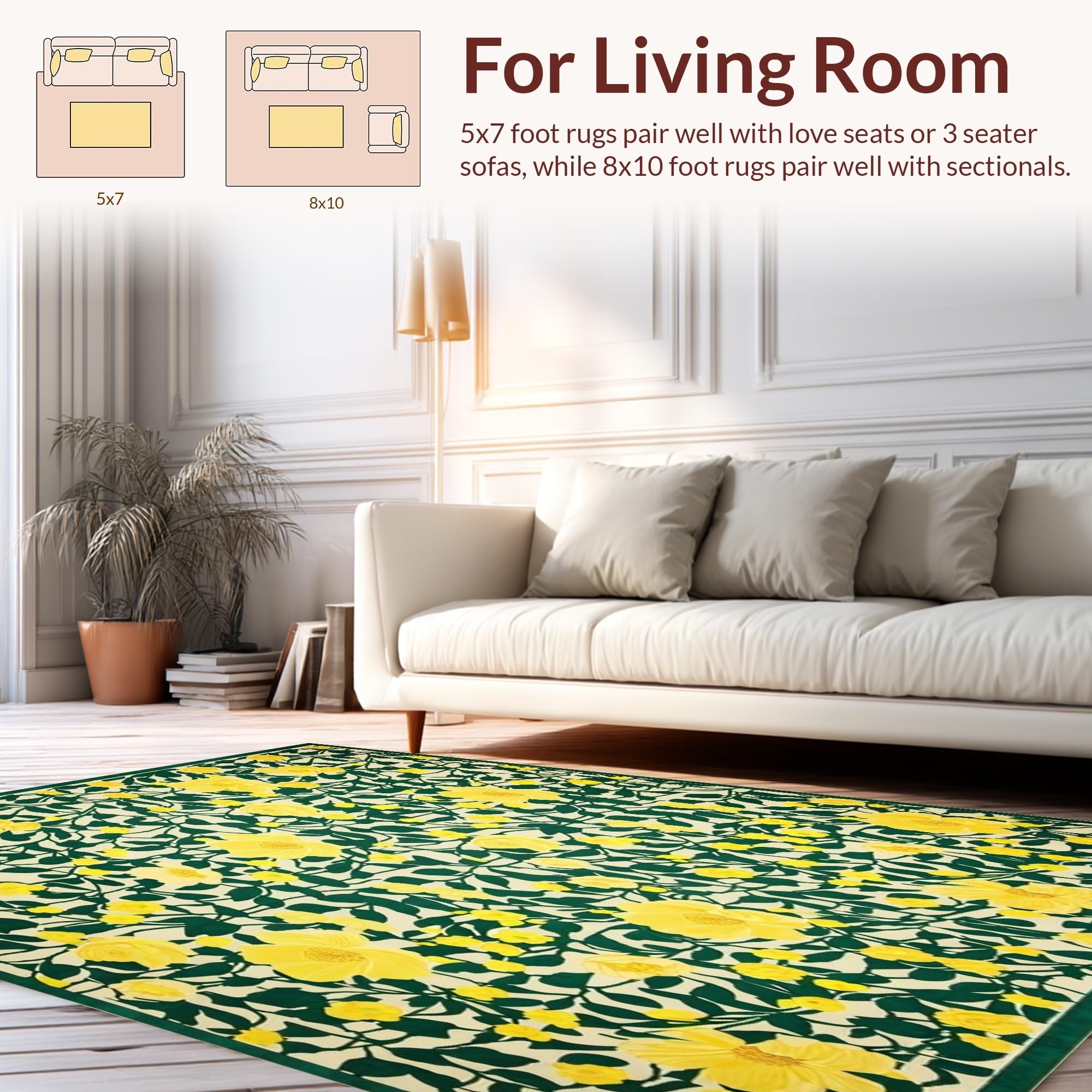 Ultra Soft Area Rug, Non Slip, Stain Resistant, Washable Area Rugs for Living Room, Bedroom, Wildflower Print Area for Bathroom(Yellow) Overview: