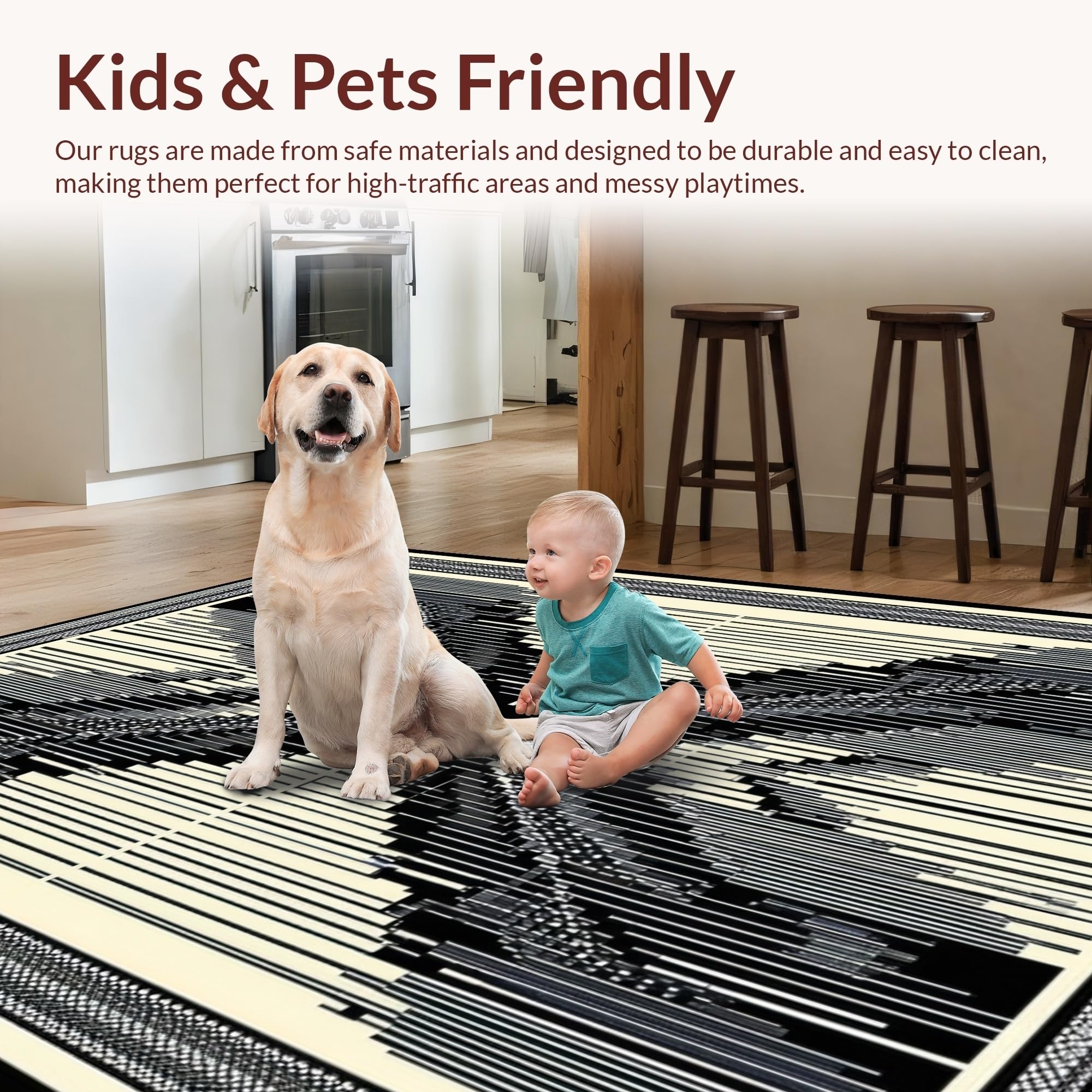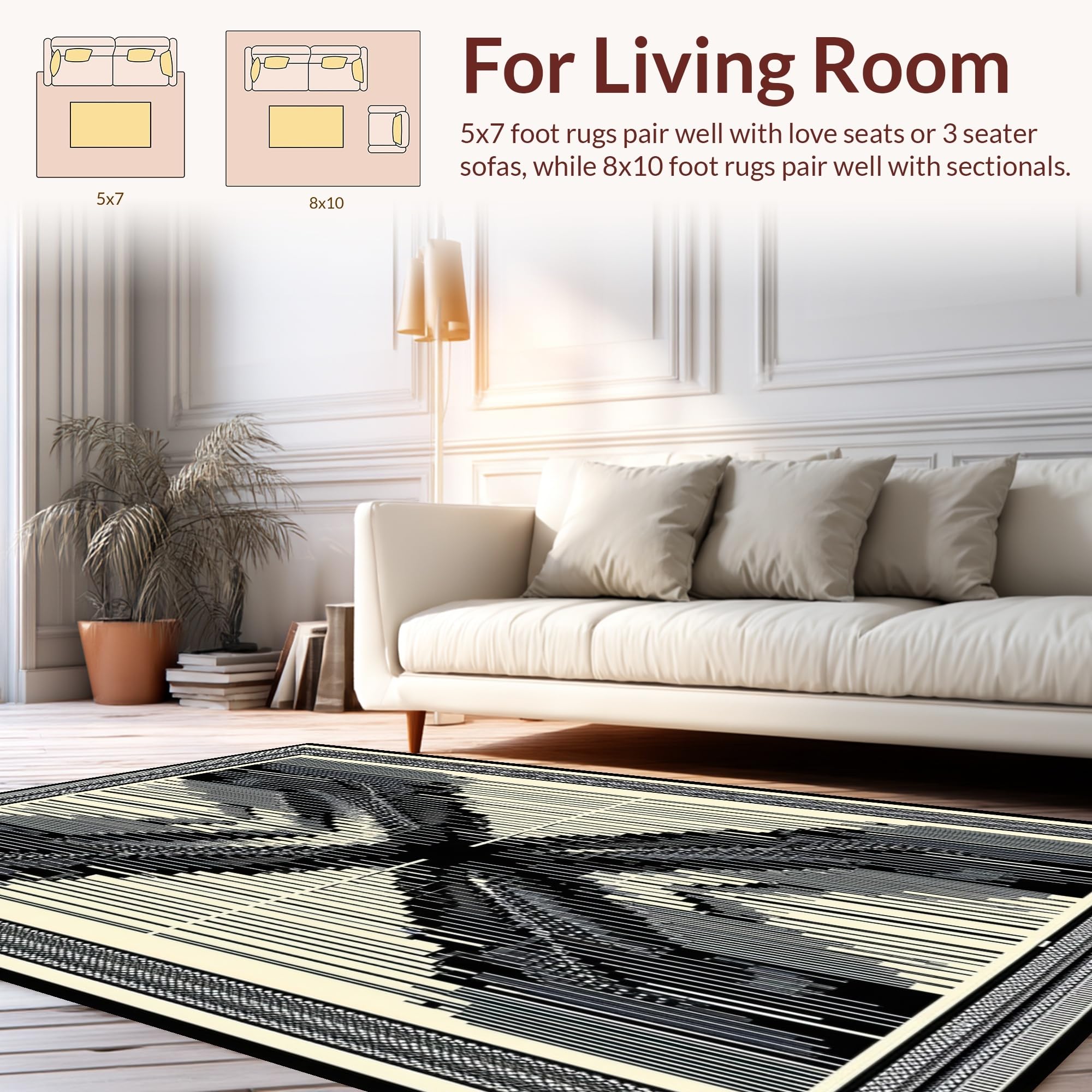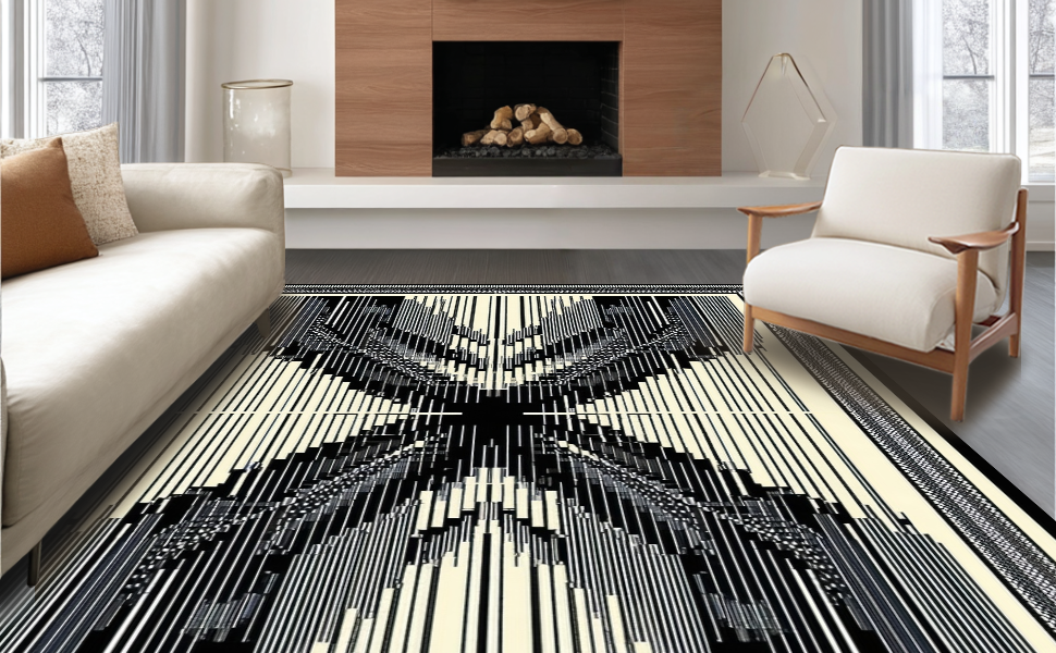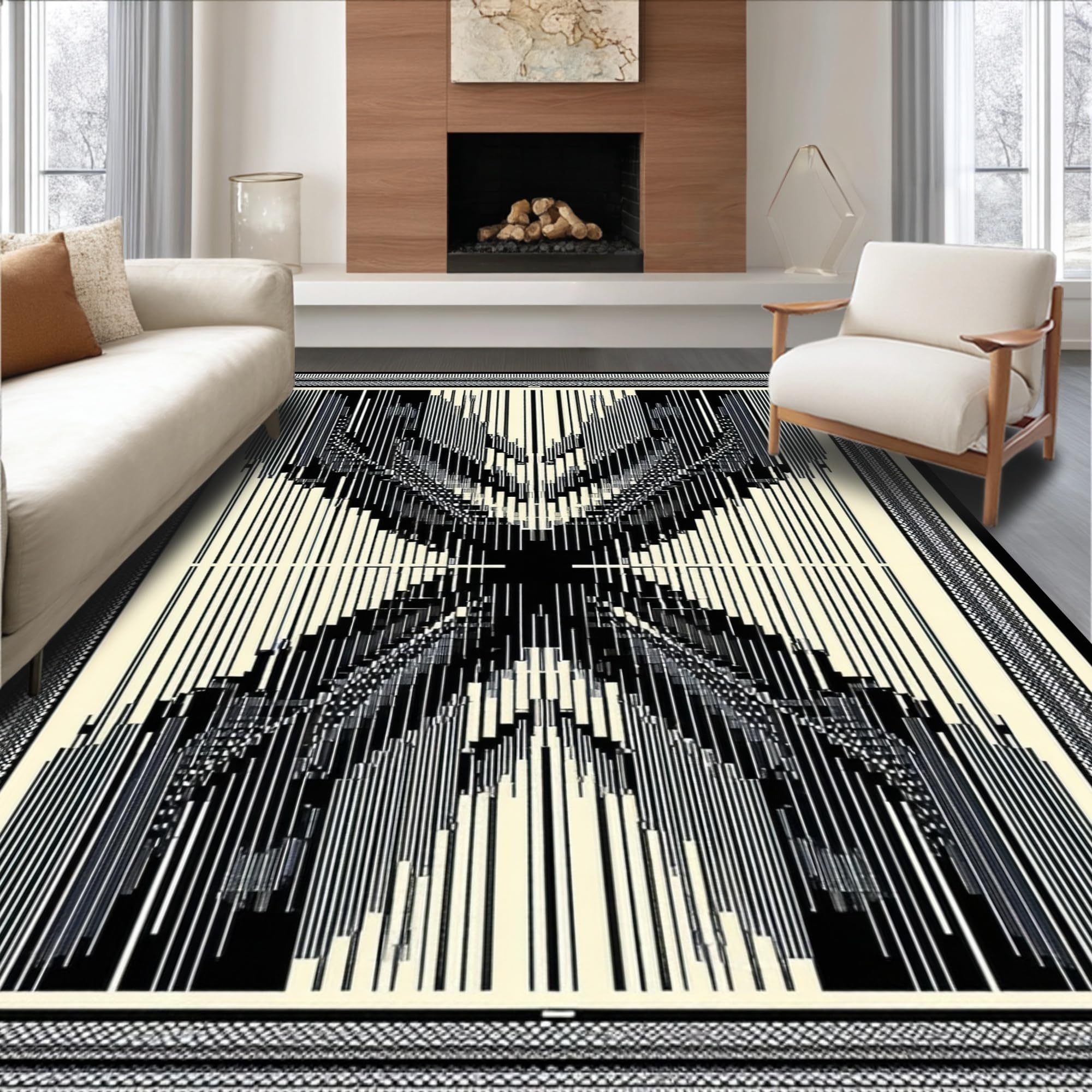 Ultra Soft Area Rug, Non Slip, Stain Resistant, Washable Area Rugs for Living Room, Bedroom, Wildlife Inspired Monochrome Aesthetic(Beige) Overview: