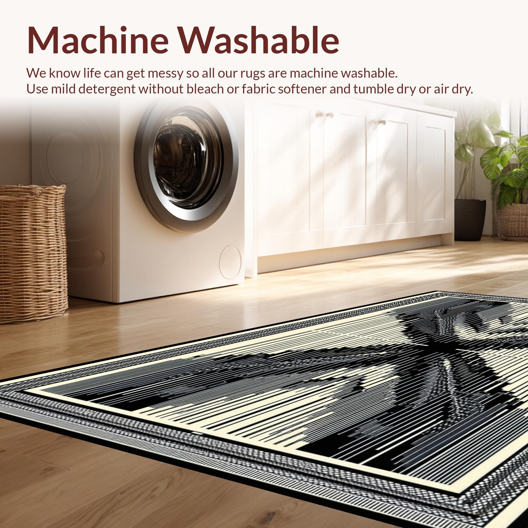 - Machine Washable: Our rugs can be easily thrown in the wash machine.