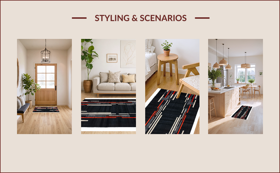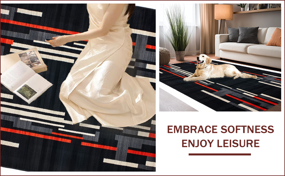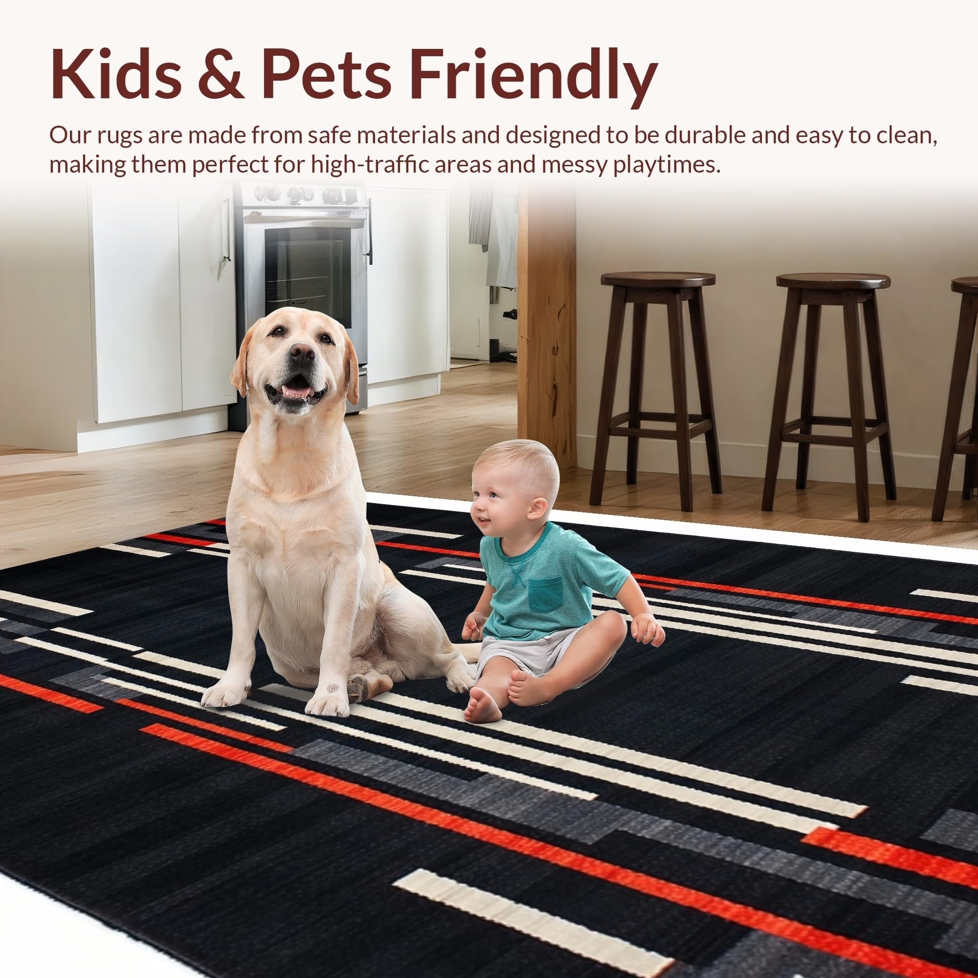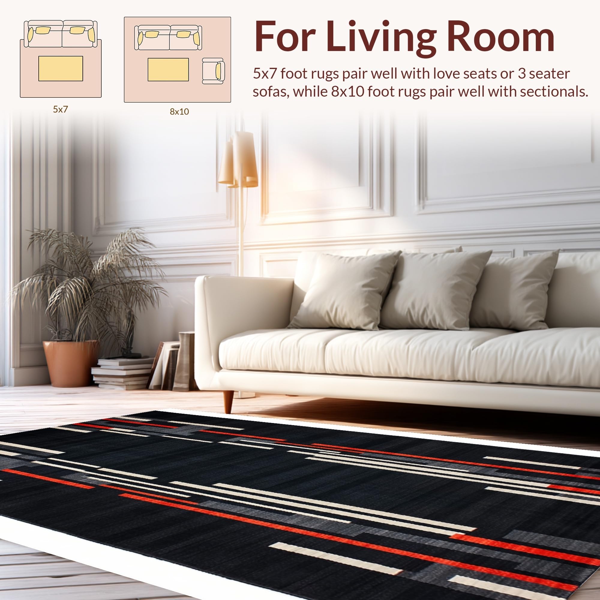 Ultra Soft Area Rug, Non Slip, Stain Resistant, Washable Area Rugs for Living Room, Bedroom, Wildlife Inspired Striped Aesthetic(Black) Overview: