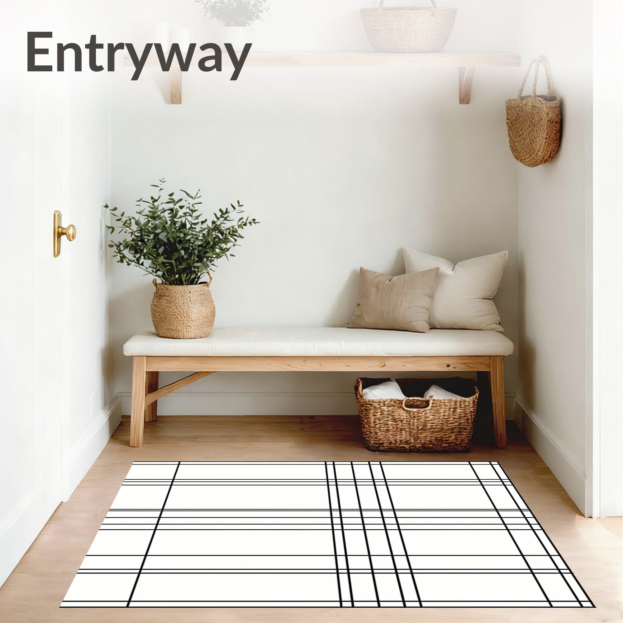 Ultra Soft Area Rug, Non Slip, Stain Resistant, Washable Area Rugs for Living Room, Bedroom, Windowpane Grid Welcome featuring Intersecting Line(Black) Overview: