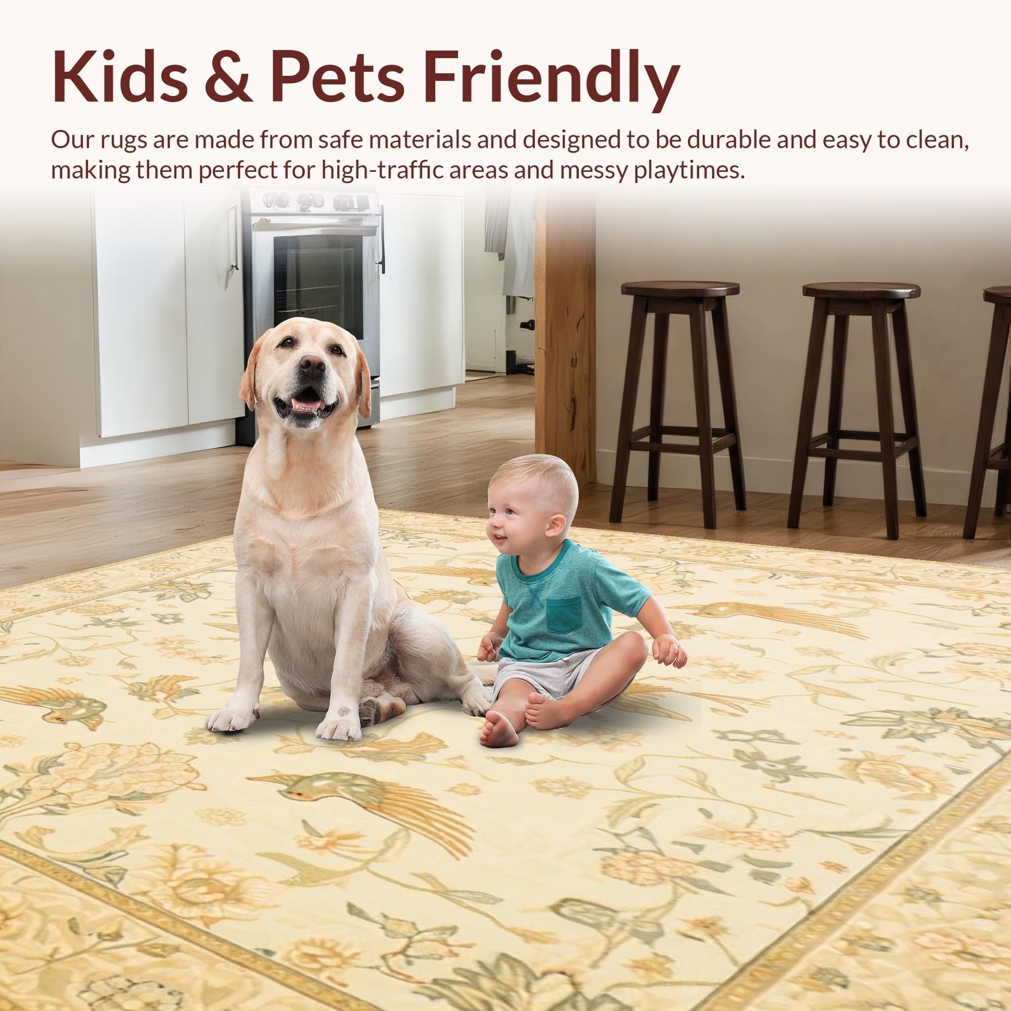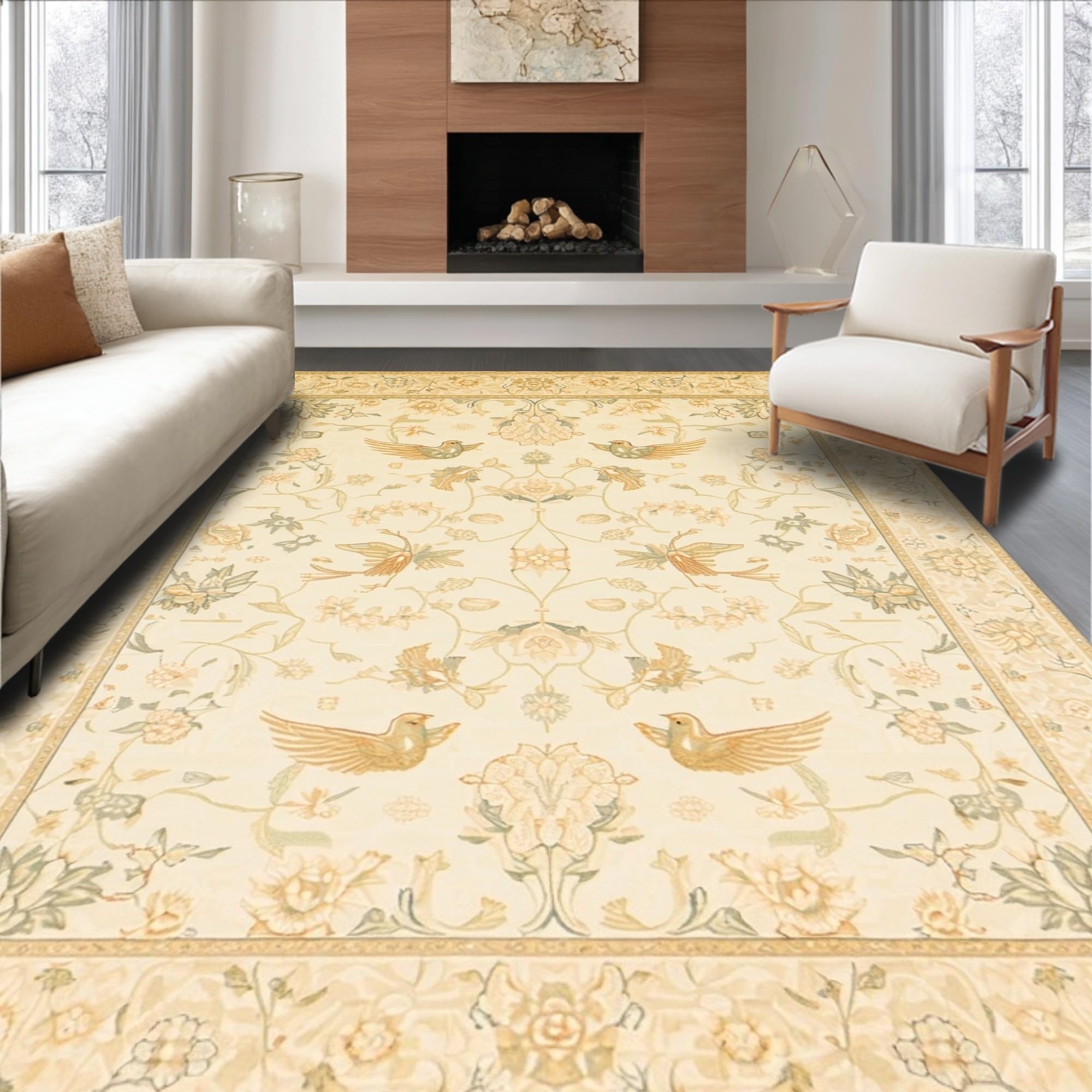 Ultra Soft Area Rug, Non Slip, Stain Resistant, Washable Area Rugs for Living Room, Bedroom, Winged Creature Motif Elegant Floral Insect Print(Beige) Overview: