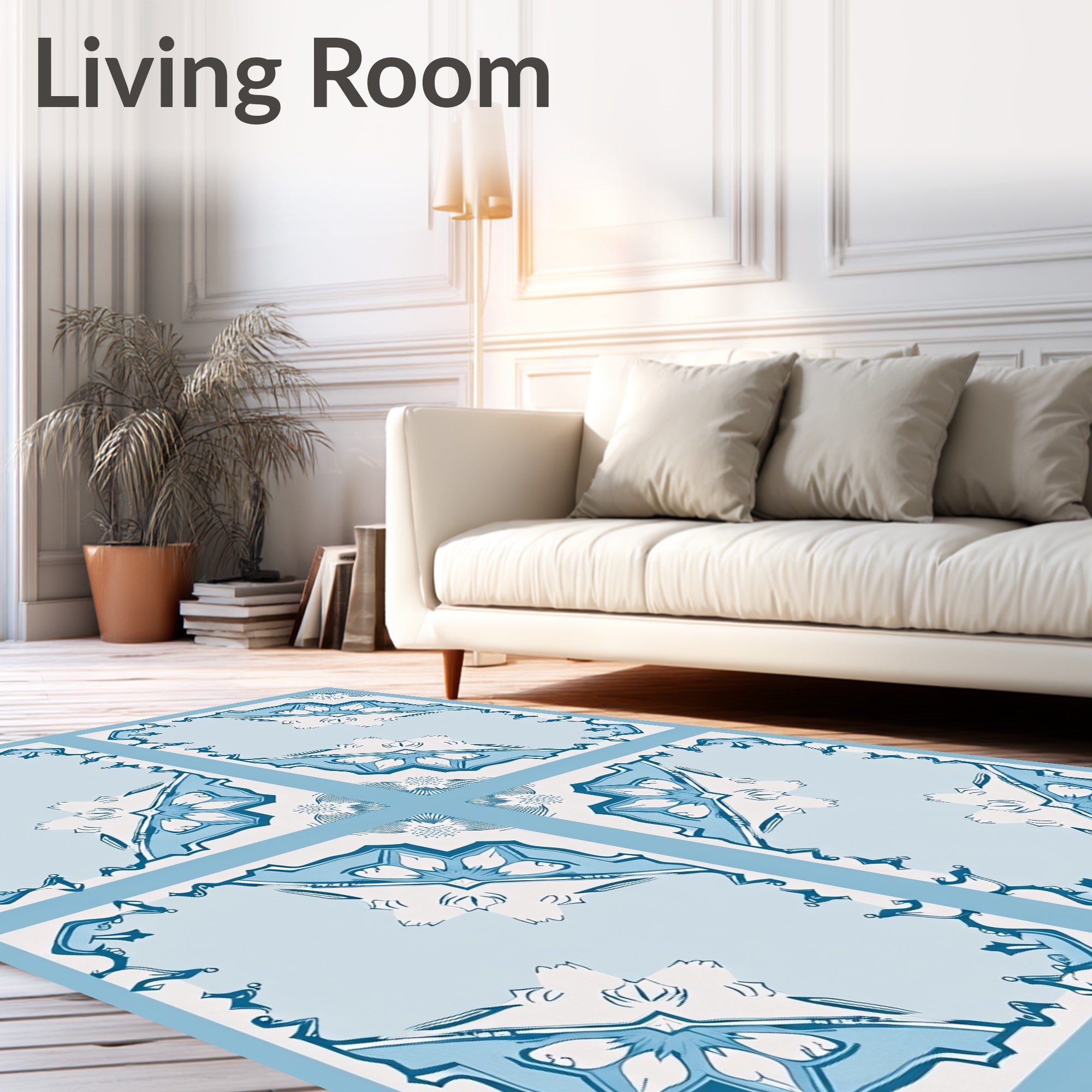 Flatwoven High Traffic Area Rug, Winter Crystal Flake Semicircle Doormat Frosted Holiday Entrance, Non Slip, Stain Resistant, Washable Area Rugs for Living Room, Bedroom (Blue) Overview:
