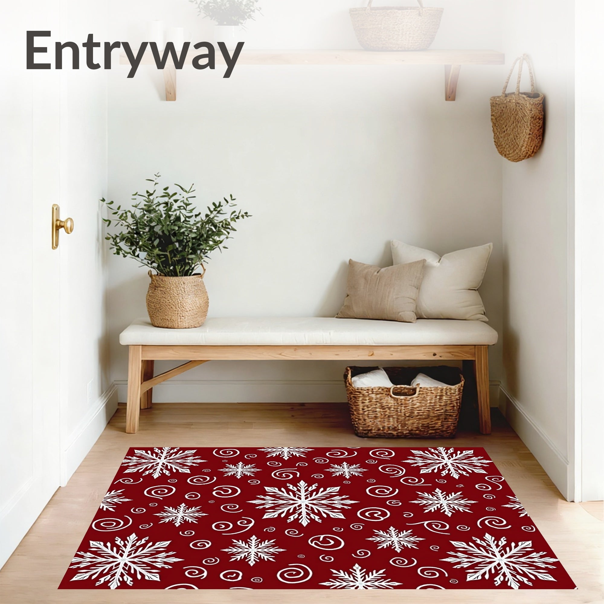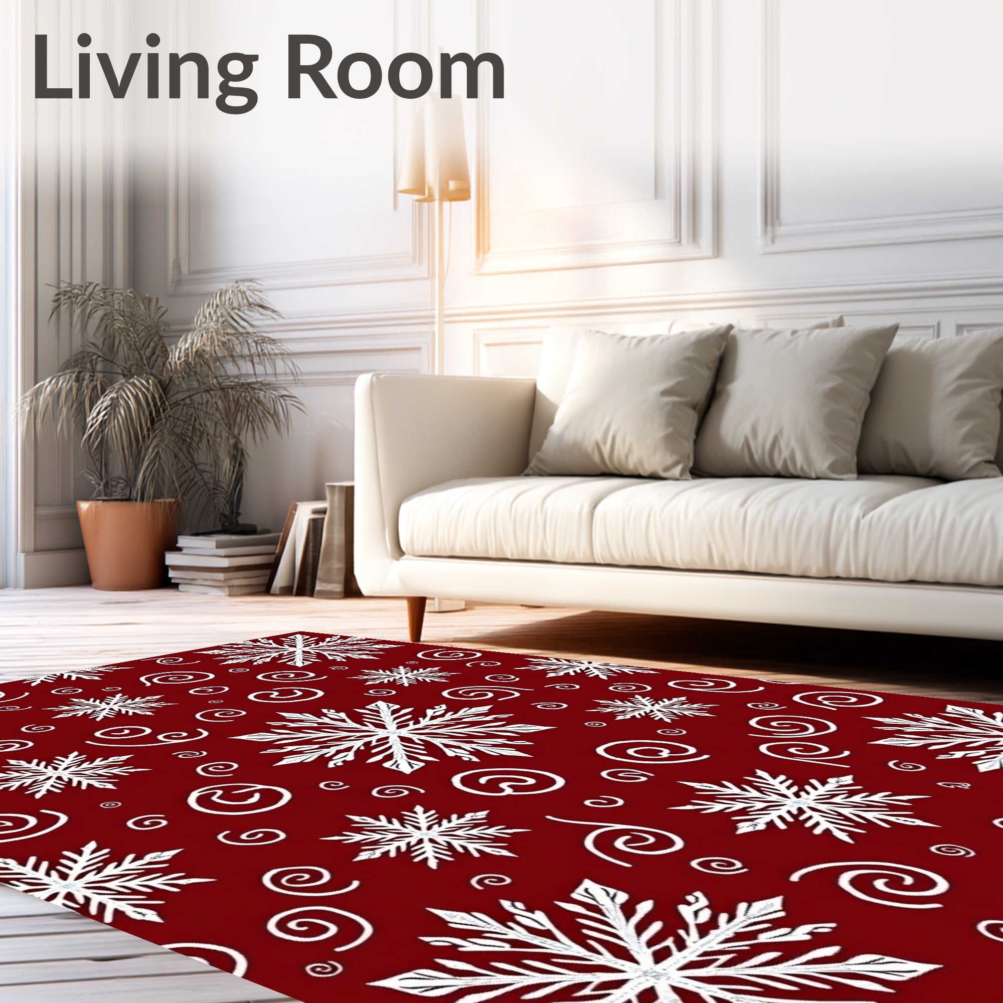 Ultra Soft Area Rug, Non Slip, Stain Resistant, Washable Area Rugs for Living Room, Bedroom, Winter Swirling Snow Crystal Motif Decorative Floor(Red) Overview: