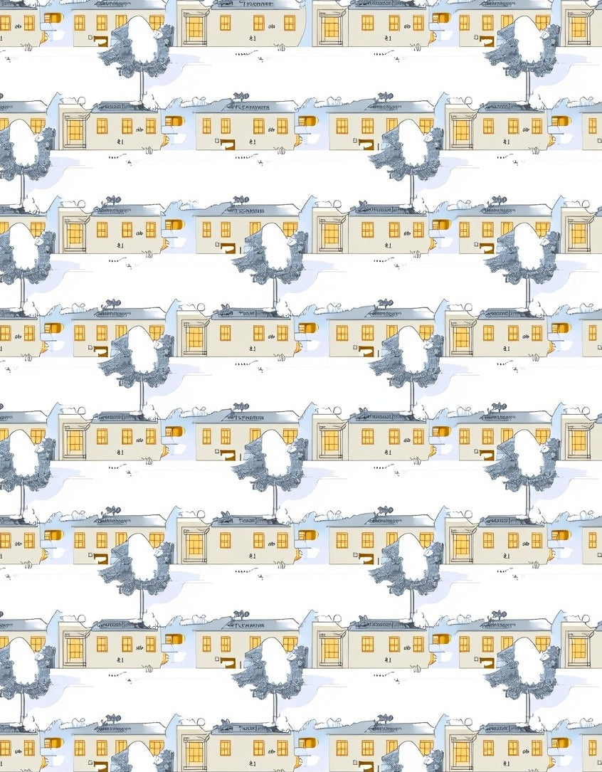 Winter Wonderland Scenic with Snowy Village Landscape(Beige)