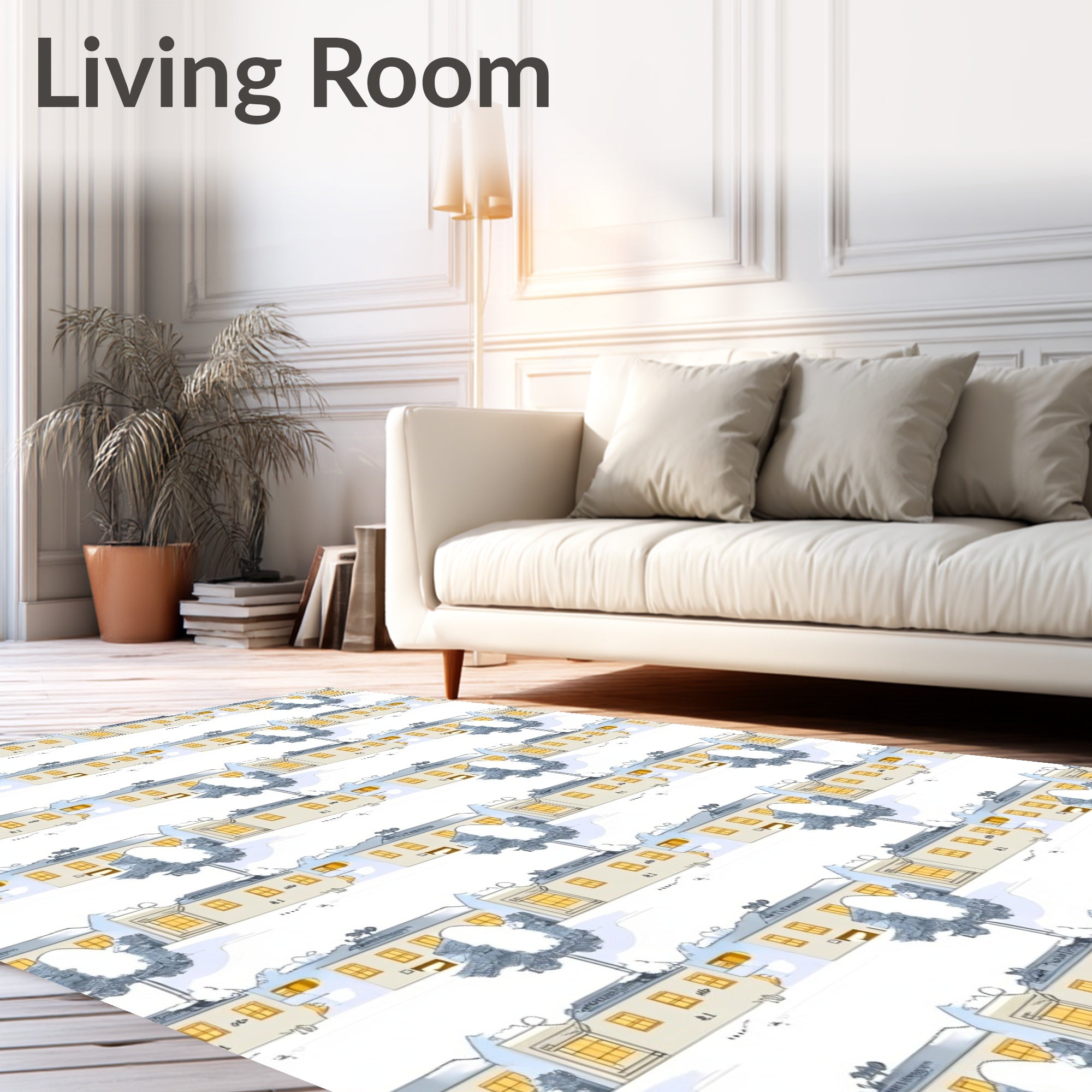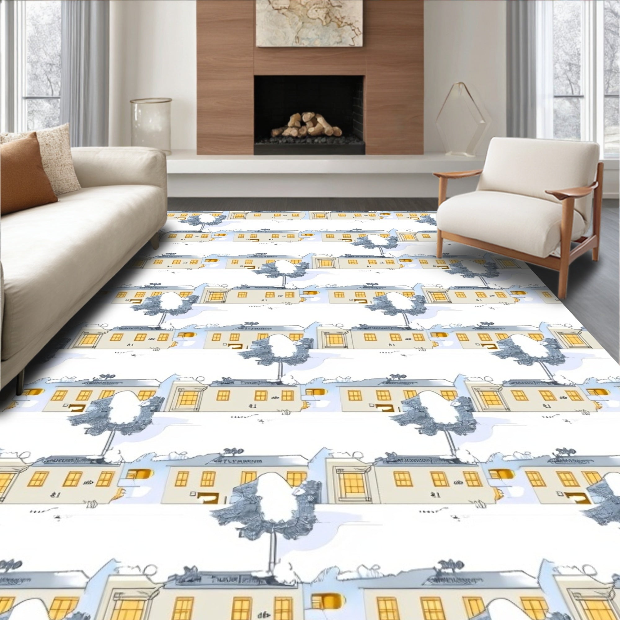 Ultra Soft Area Rug, Non Slip, Stain Resistant, Washable Area Rugs for Living Room, Bedroom, Winter Wonderland Scenic with Snowy Village Landscape(Beige) Overview: