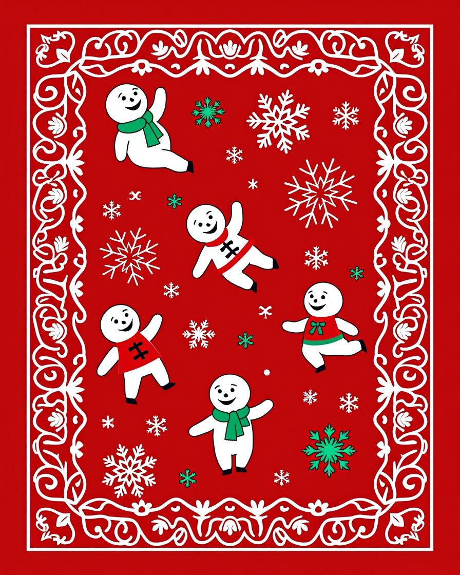 Winter Wonderland Scroll Featuring Dancing Snowflakes And Snowmen(Red)