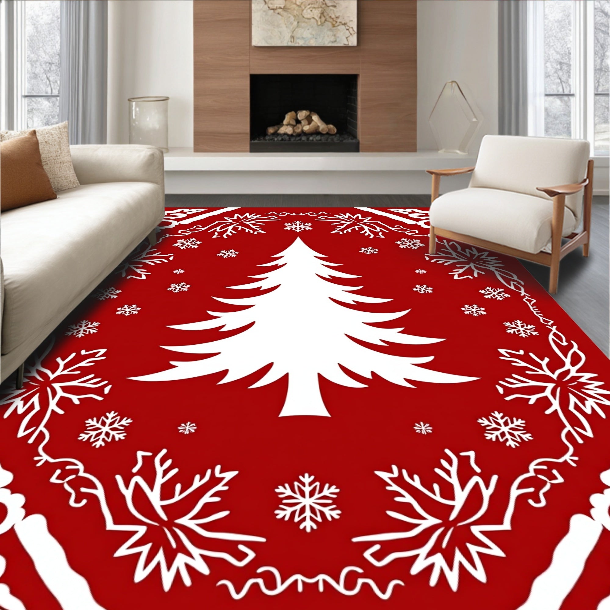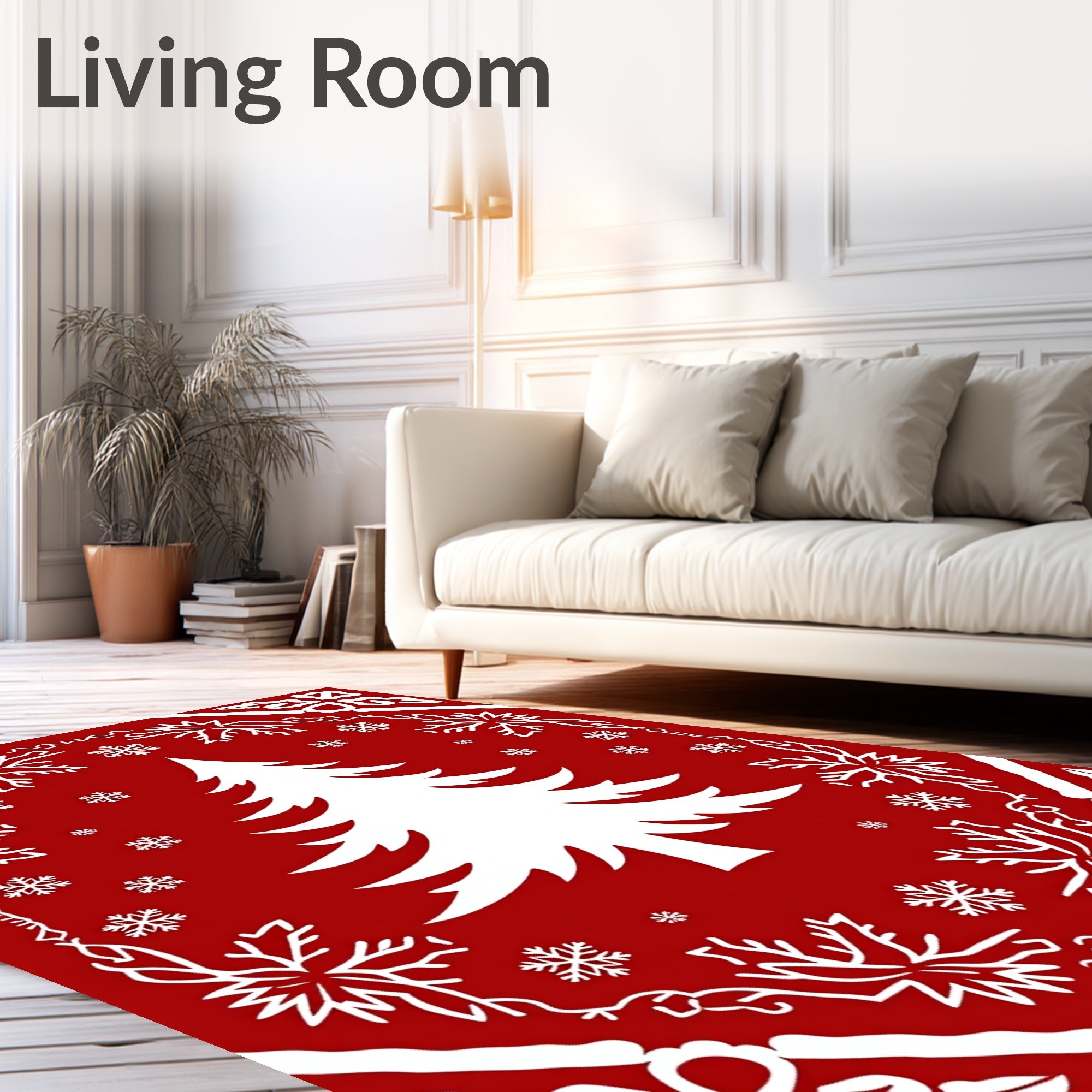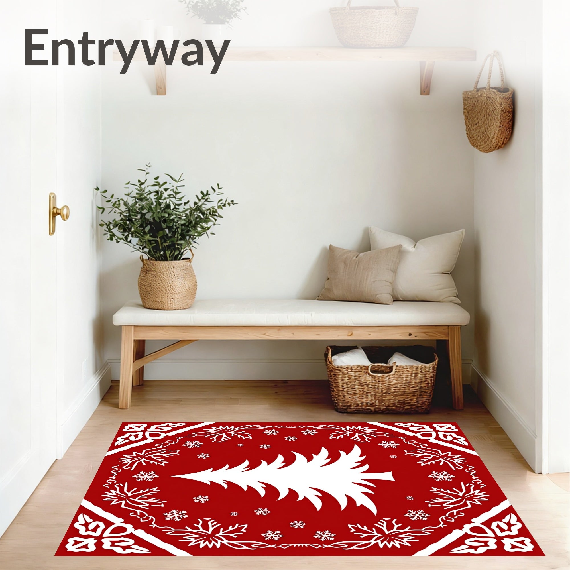 Ultra Soft Area Rug, Non Slip, Stain Resistant, Washable Area Rugs for Living Room, Bedroom, Wintry Wonderland Spruce Blossom Greeting Floor(Red) Overview: