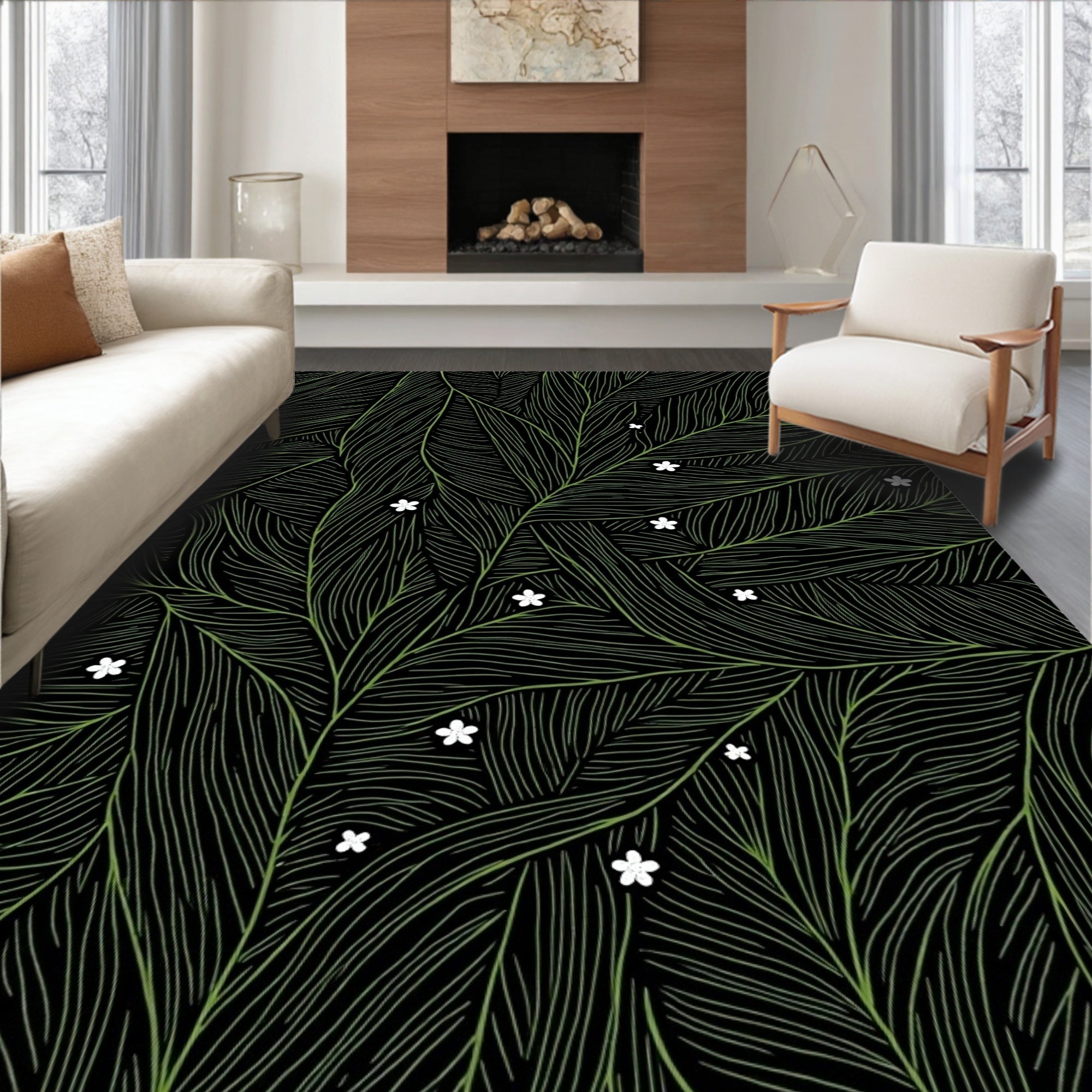 Ultra Soft Area Rug, Non Slip, Stain Resistant, Washable Area Rugs for Living Room, Bedroom, Wispy Fir Branch Floor Covering with Shimmering Snowdrift(Black) Overview: