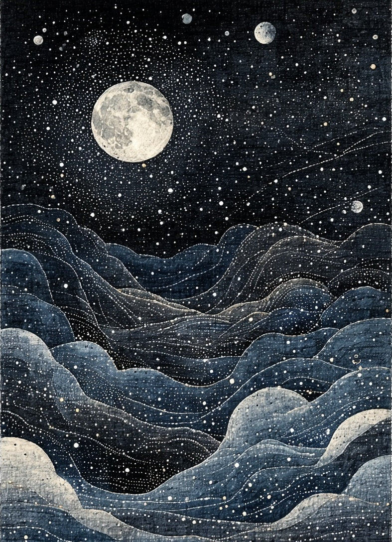 Witchy Cosmos with Lunar Cycle Rings and Boho Star Map Accents(Blue)