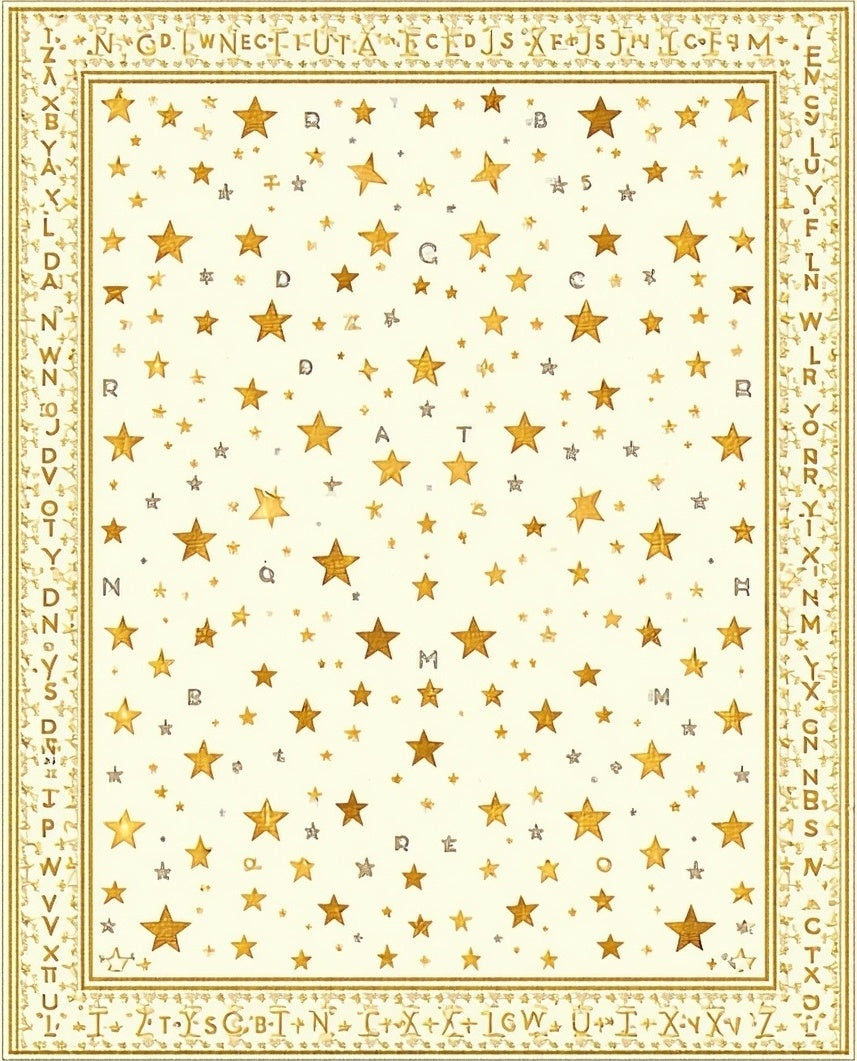 Wonderland Starry Letters Circle with Beige Hues and Storybook Motifs(Gold)